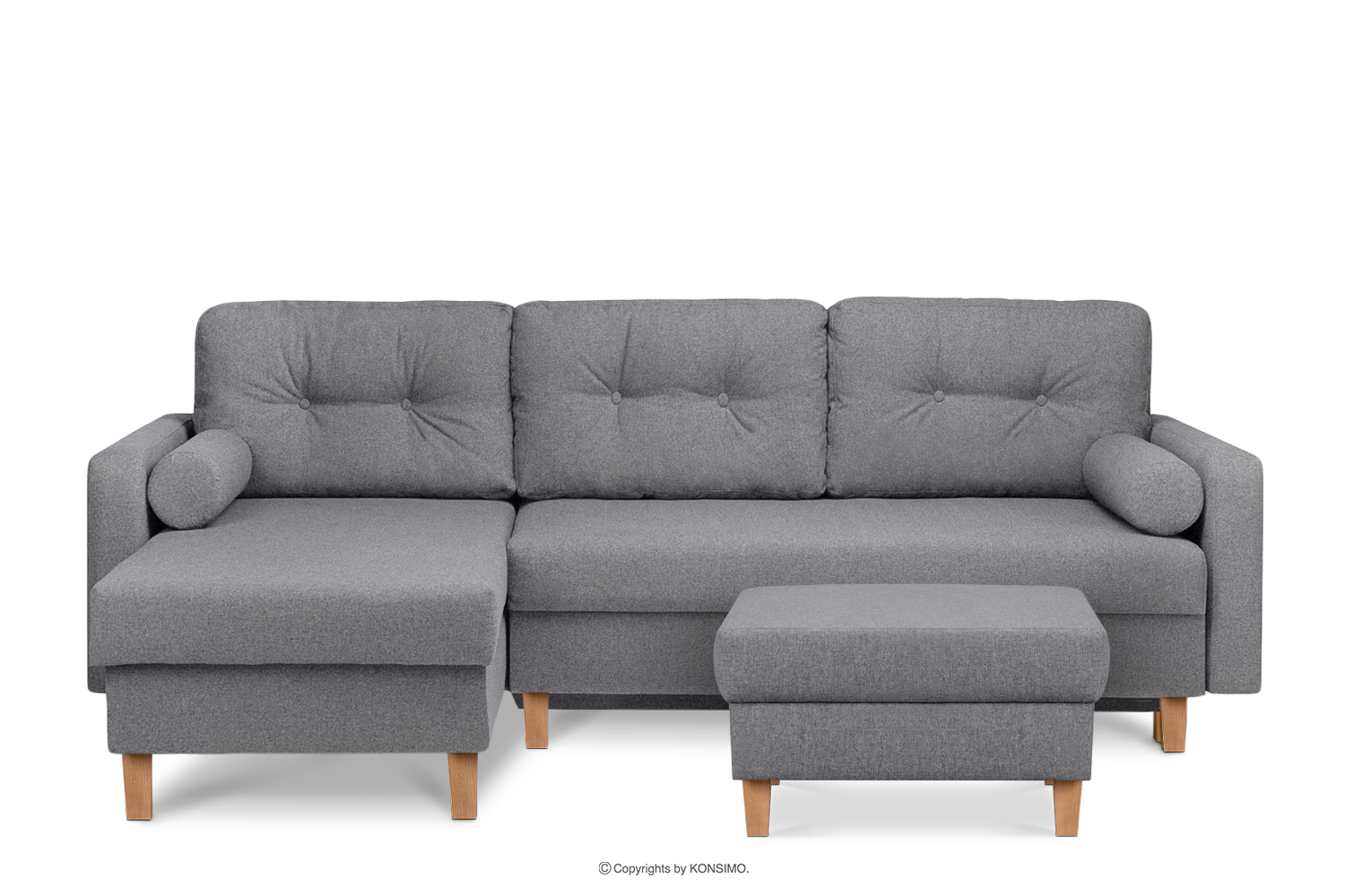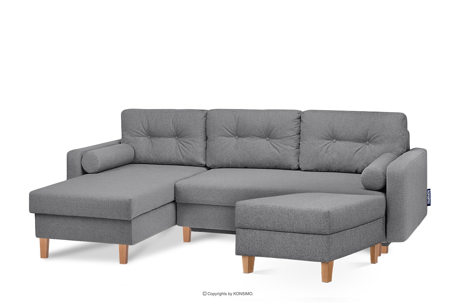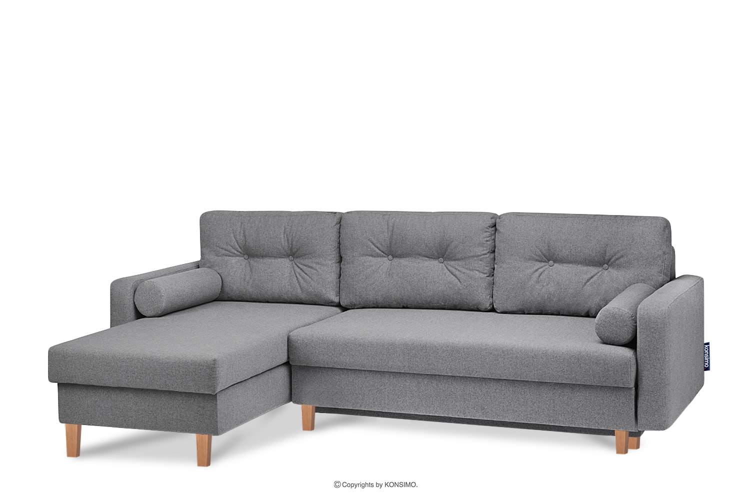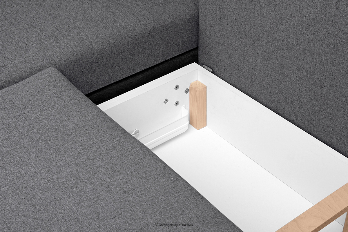 Ein großer Stauraum für Bettwäsche mit Belüftungsschlitzen bietet Platz für alles, was tagsüber verstaut werden muss und nachts benötigt wird. Das hochwertige gewebte Gewebe zeichnet sich durch Abrieb- und Schadensbeständigkeit aus und ist zudem leicht sauber zu halten. Die Rücken- und Dekokissen verfügen über Reißverschlüsse in den Tunneln, so dass die Bezüge leicht abgenommen und gewaschen werden können. Dieses funktionale skandinavische Ecksofa ist besonders bequem und praktisch - es eignet sich nicht nur für zu Hause, sondern auch für Hotels oder Wartezimmer.