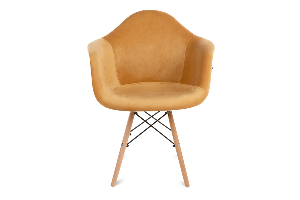 für das Produkt Gelber samtiger Stuhl mit Armlehnen im skandinavischen Stil