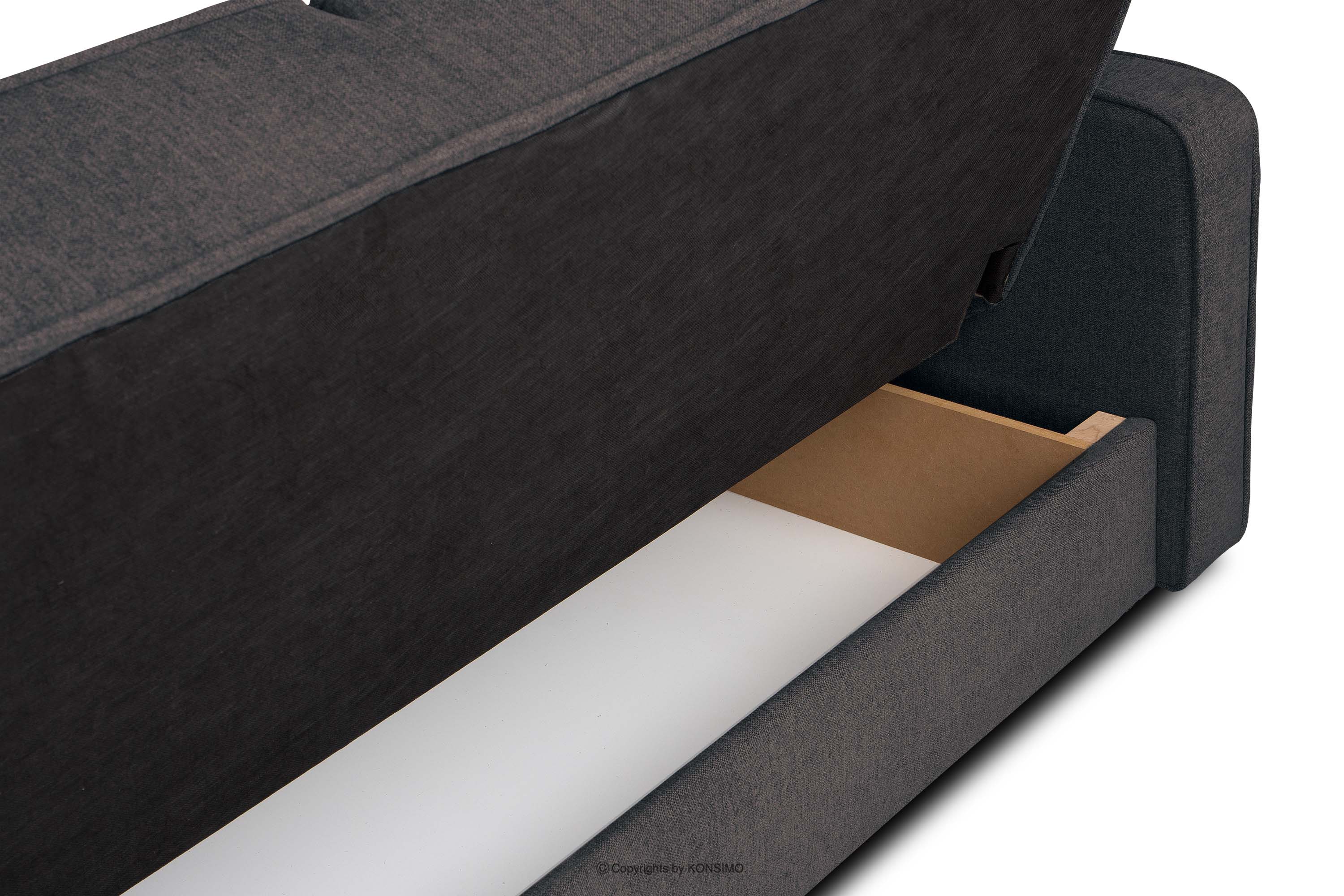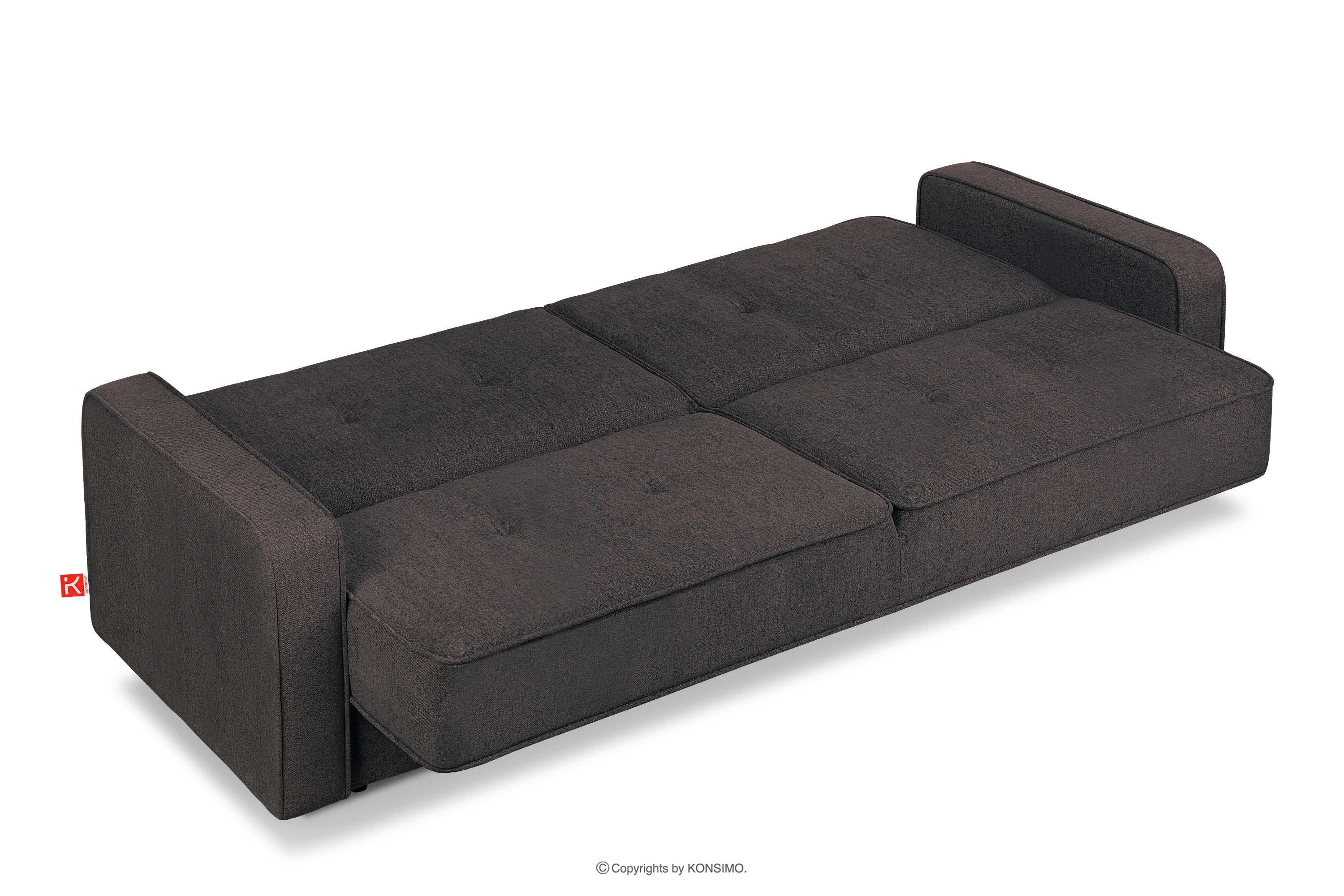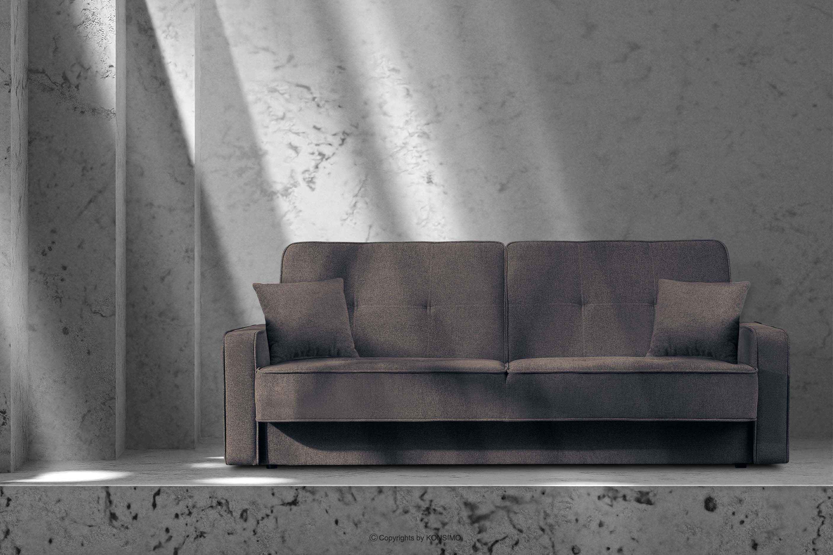 Das Schlafsofa für das Wohnzimmer im Gewebestoff marineblau/braun wird tagsüber zu einem funktionalen Sofa für die ganze Familie und nachts zu einem großen und bequemen Bett. Der praktische Mechanismus der Schlaffunktion - die Schlafsofa-Automatik - erleichtert das Auf- und Zusammenklappen dieses modernen Sofas erheblich. Es ist mit einem geräumigen Bettzeugbehälter ausgestattet.