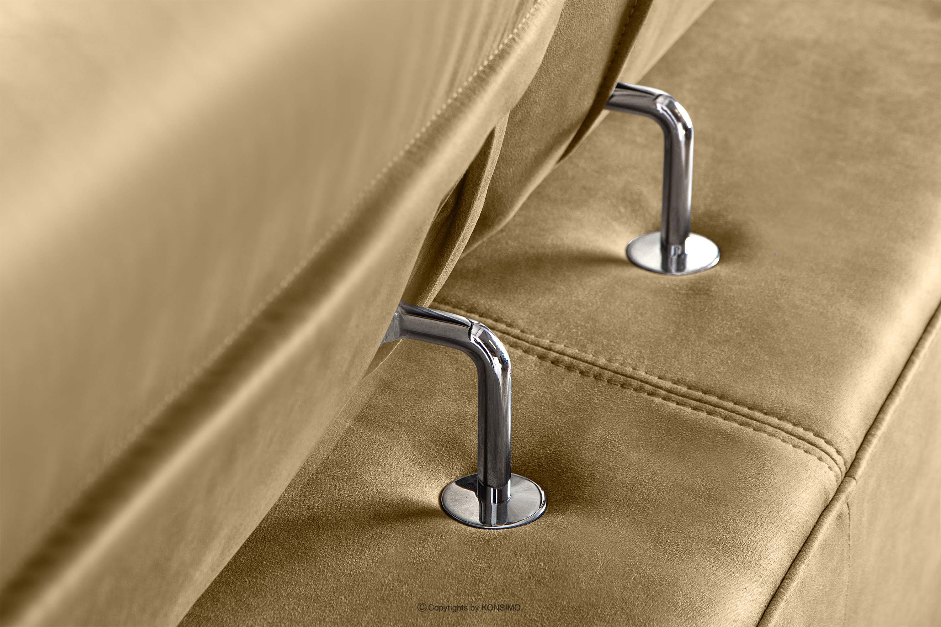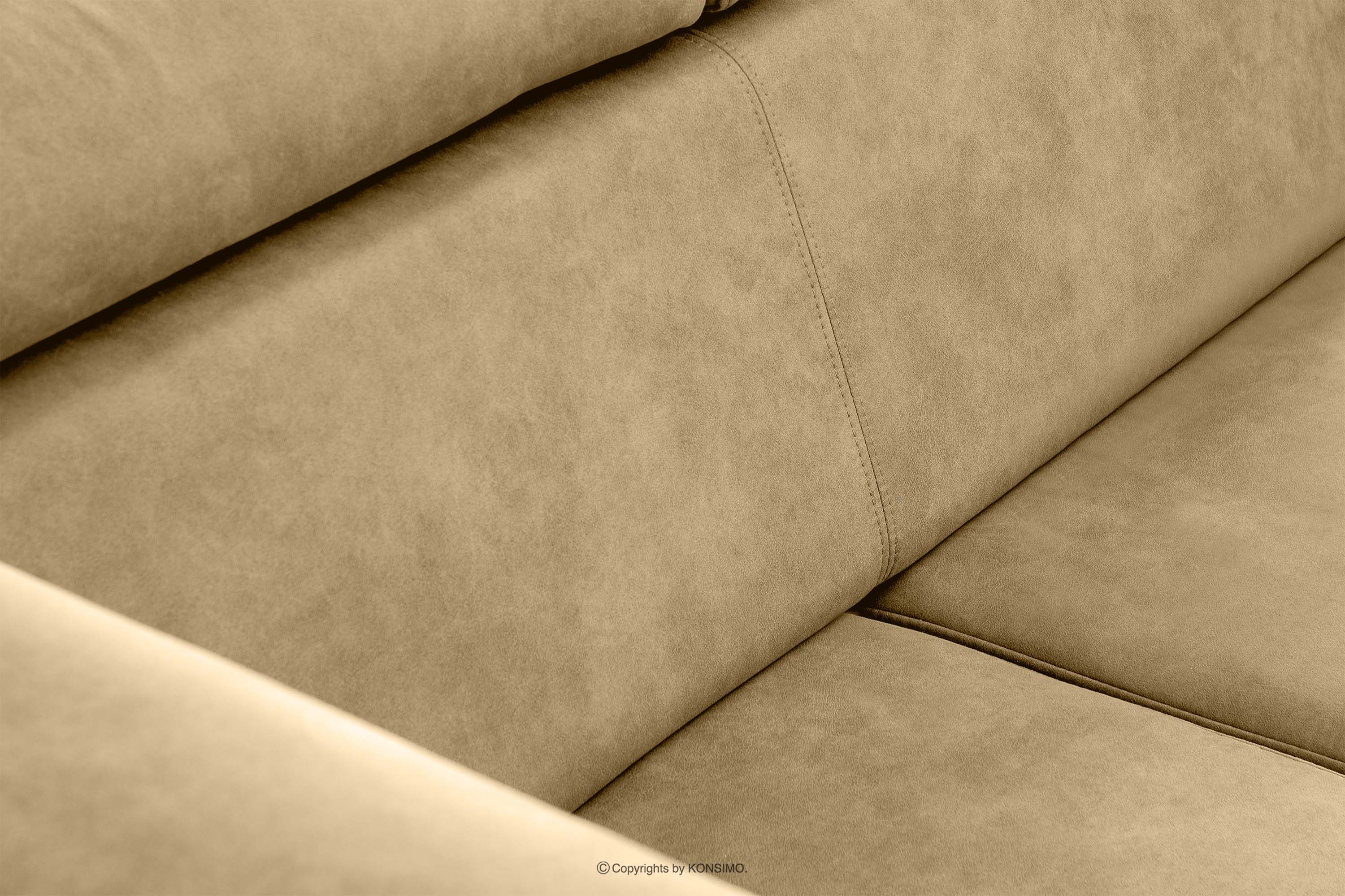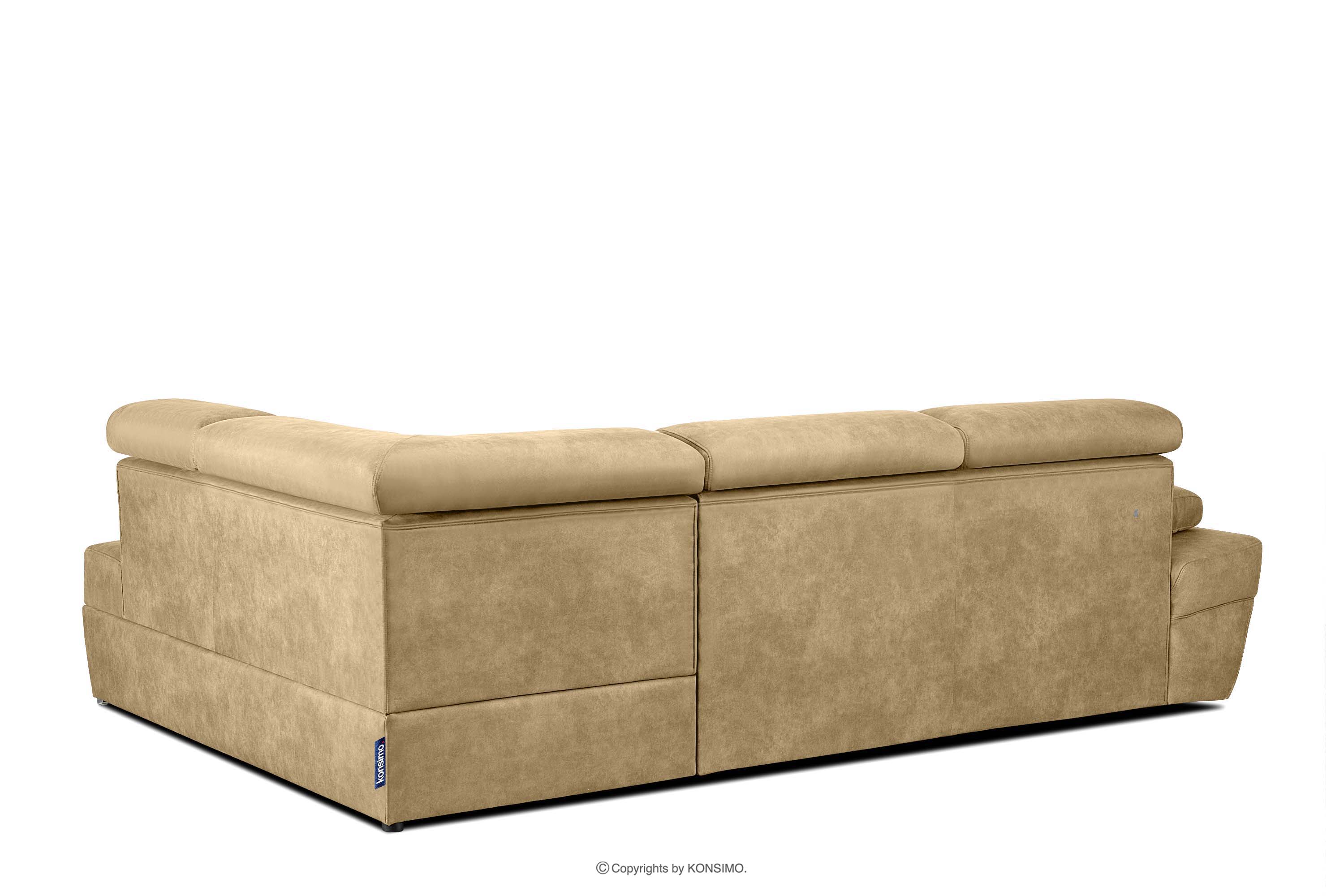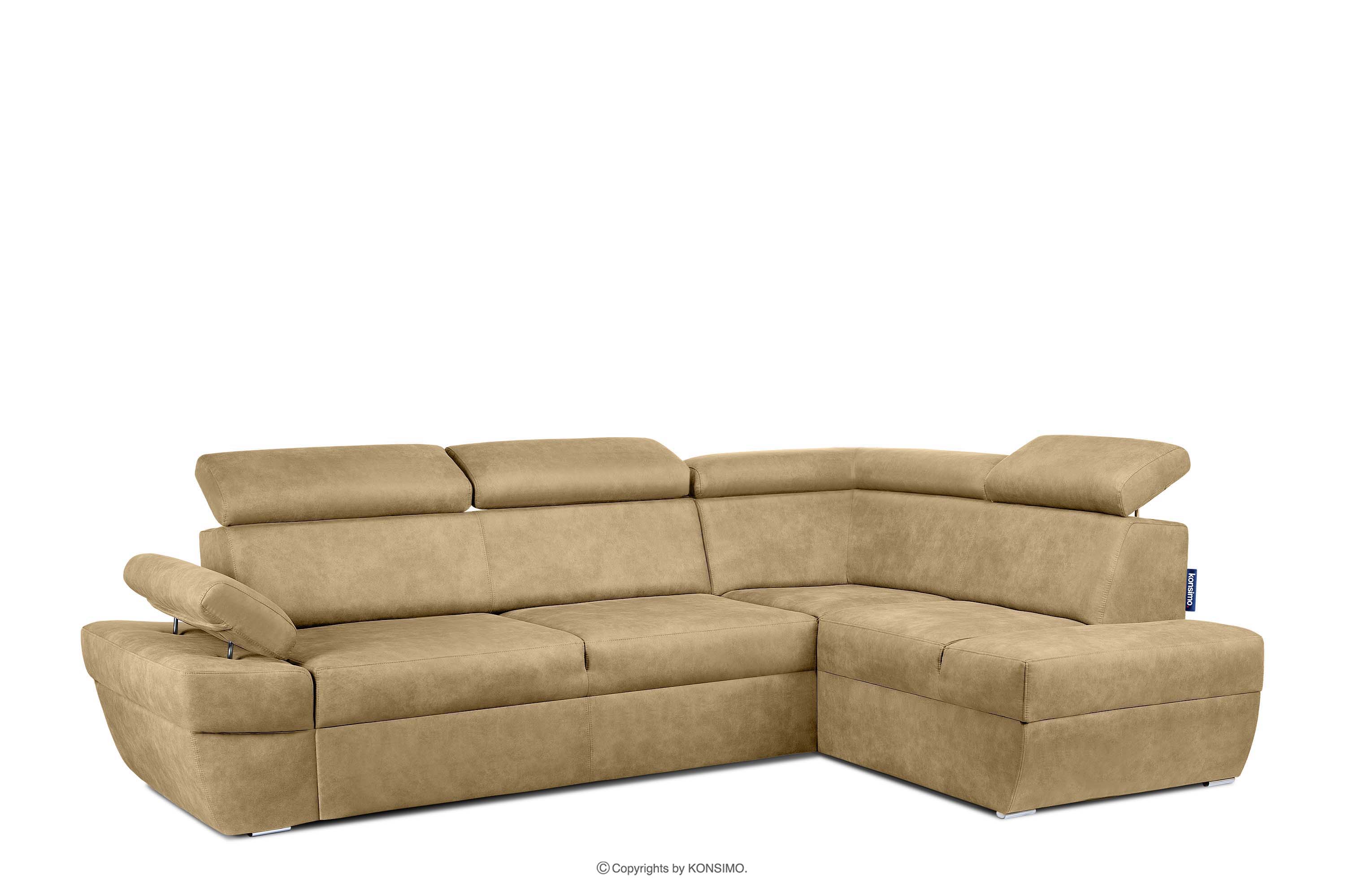 Das Ecksofa mit Schlaffunktion aus sandfarbenem lederähnlichem Stoff right aus der modernen Kollektion RATLO ist ein Vorschlag für Anspruchsvolle: langlebig, pflegeleicht, aus robusten und langlebigen Materialien gefertigt. Leicht ausklappbar und mit einer großen Truhe ausgestattet, ist es perfekt für kleine Wohnungen. Die Polsterung aus lederähnlichem Stoff ist extrem abriebfest und widerstandsfähig.
