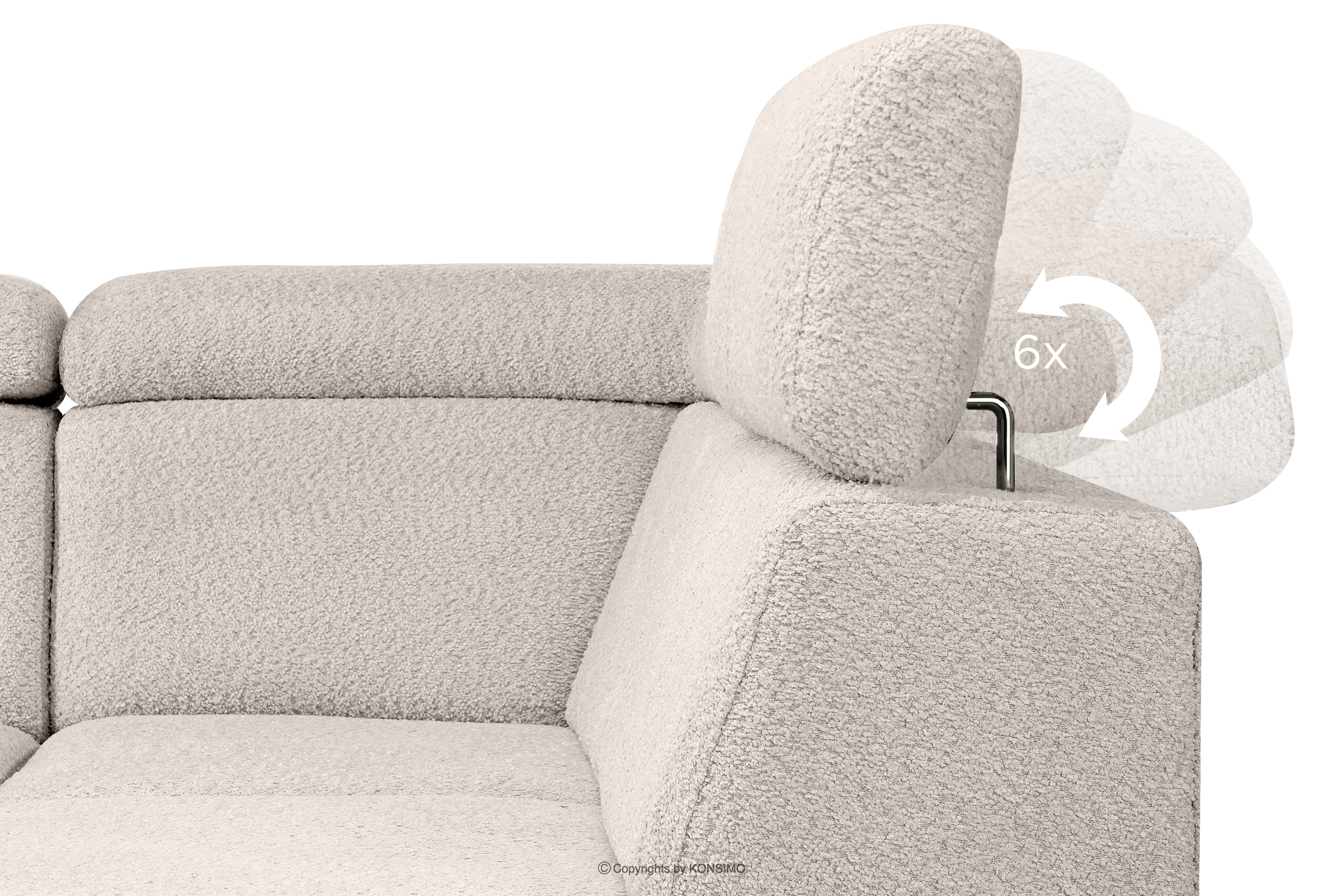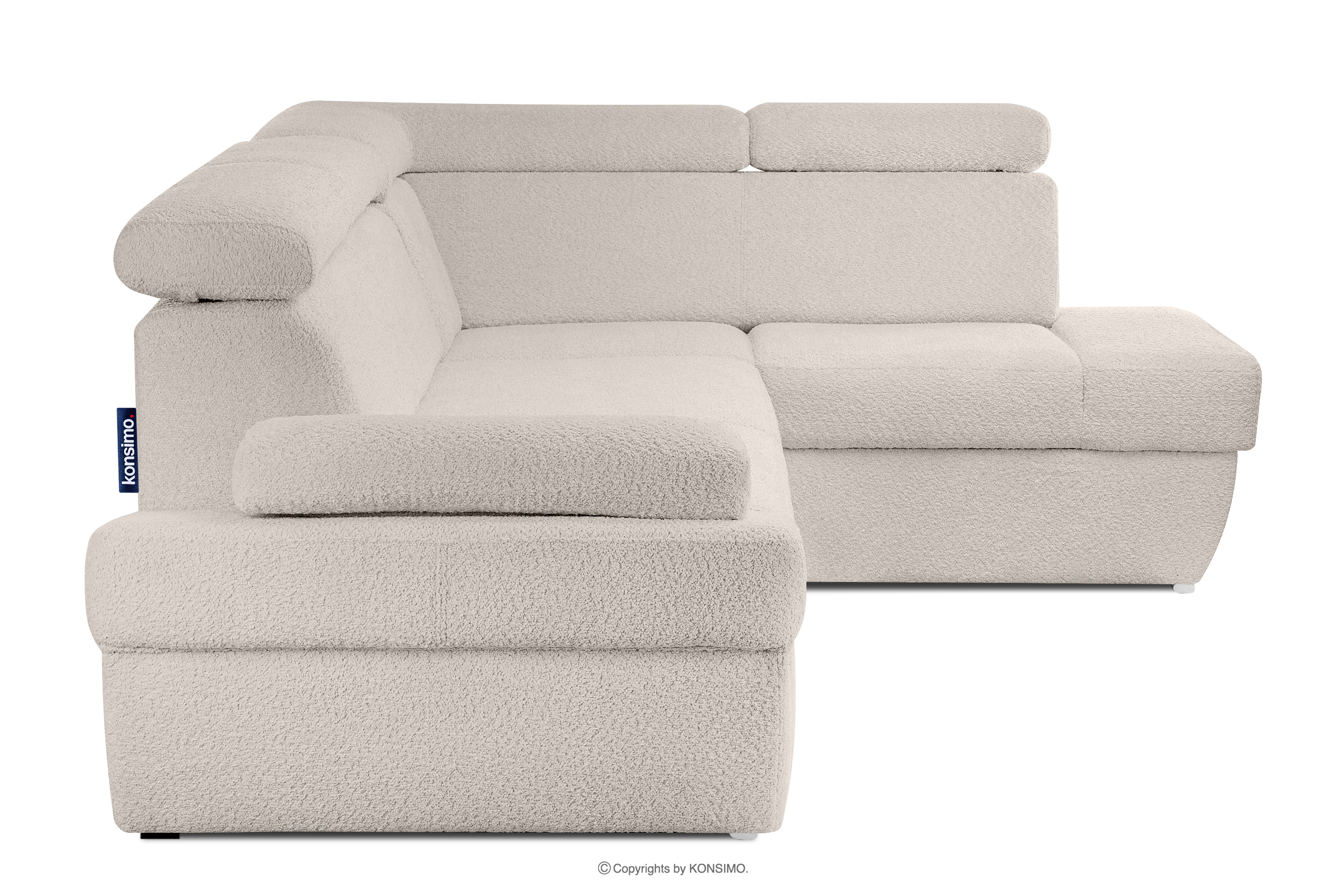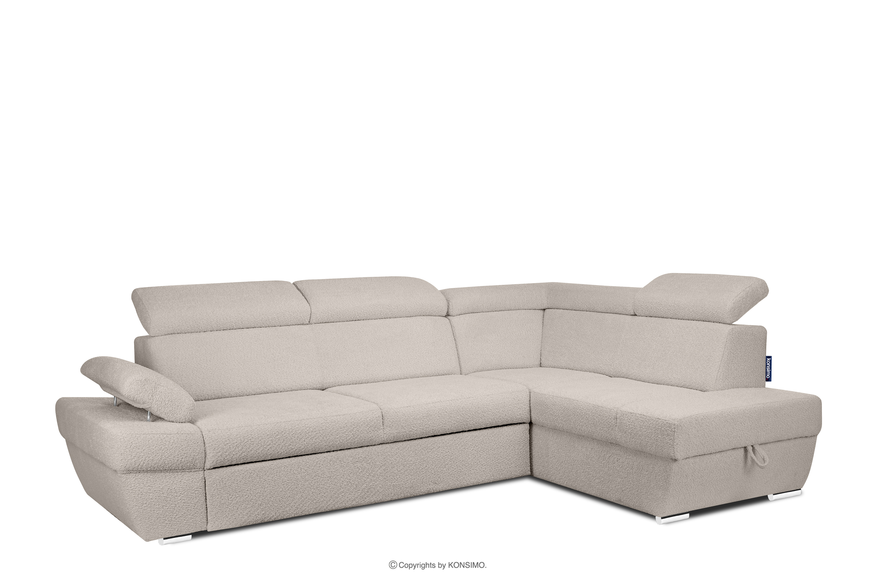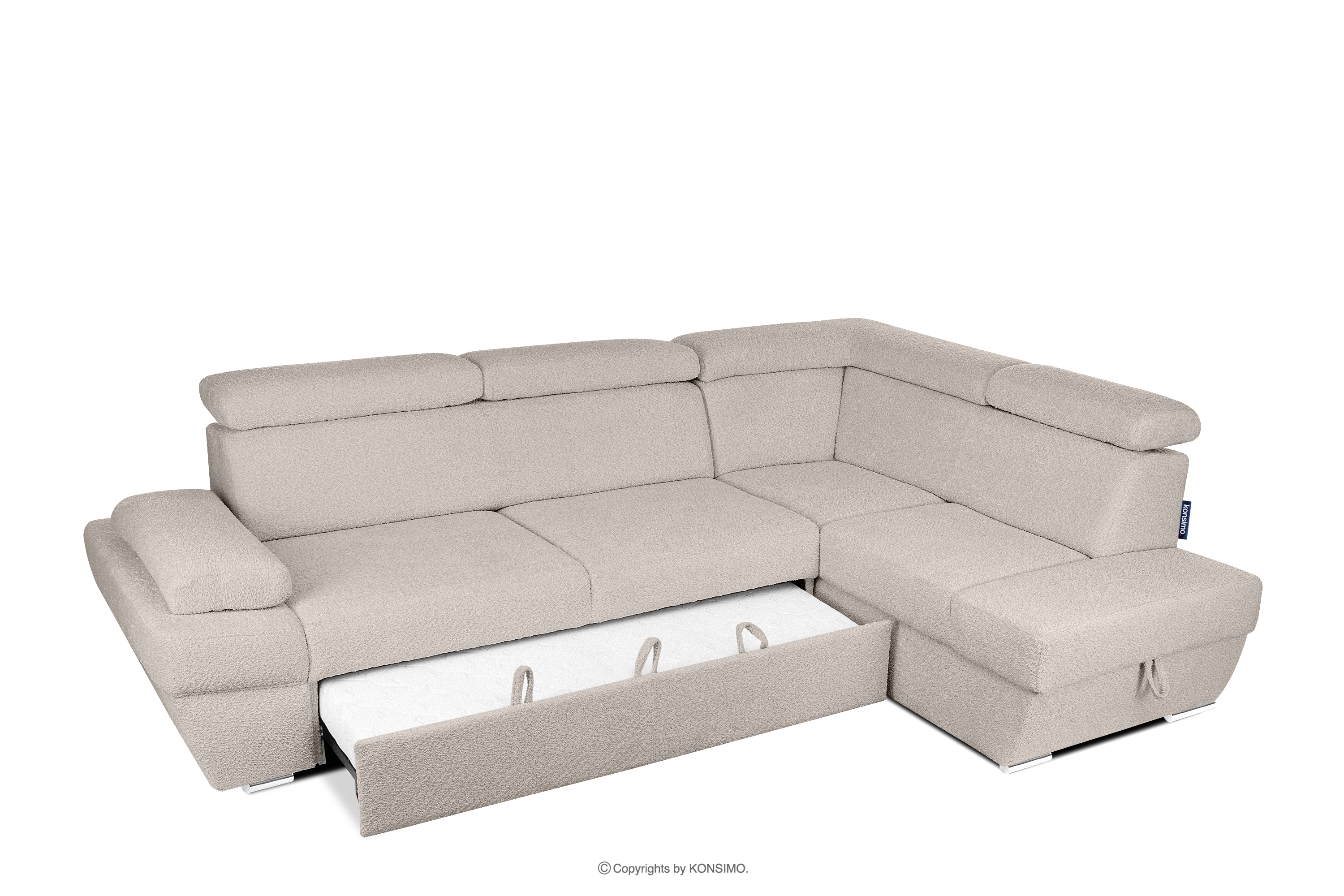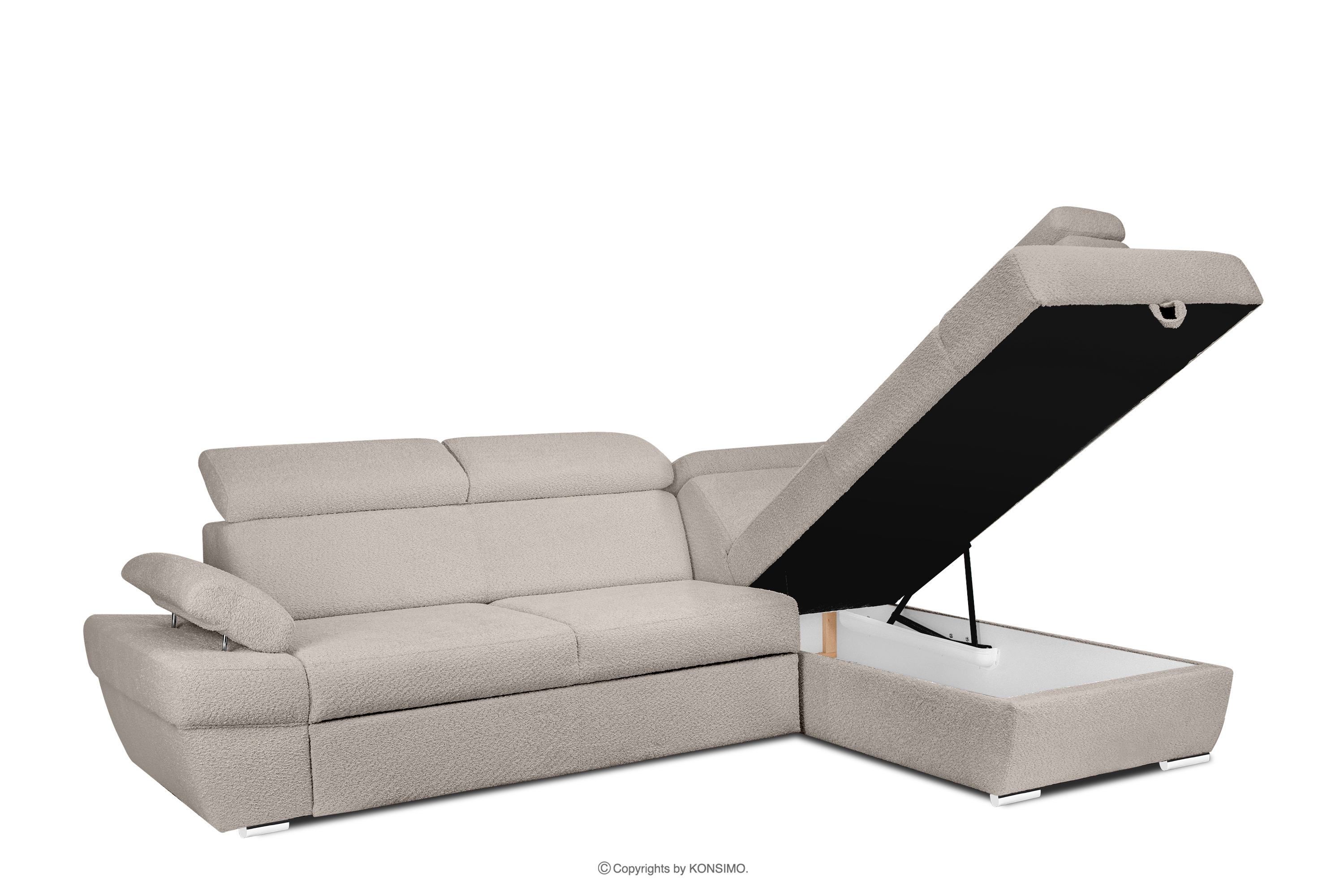 RATLO Ausklappbares Ecksofa mit Bettzeugcontainer hellbeige rechts Bouclé
