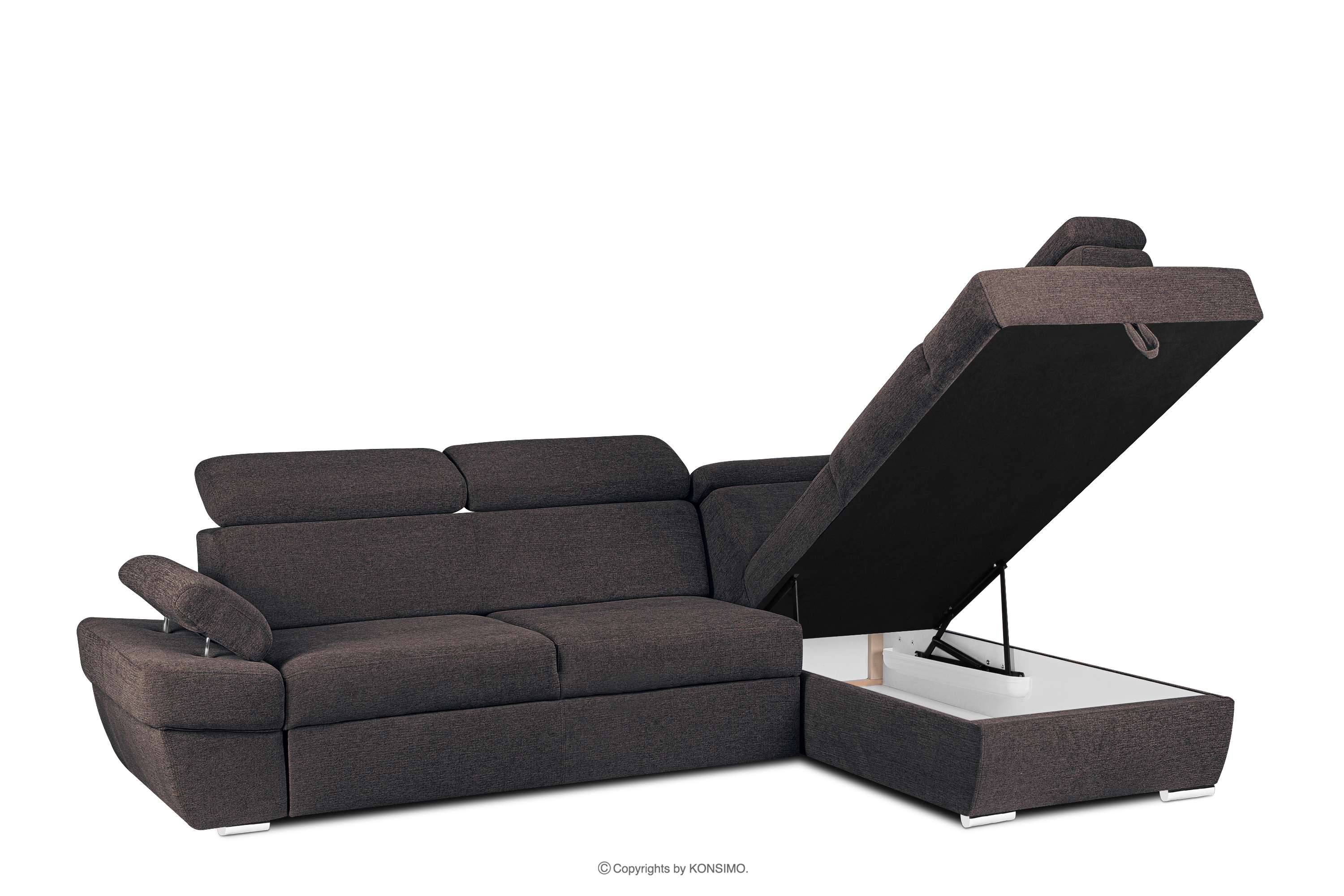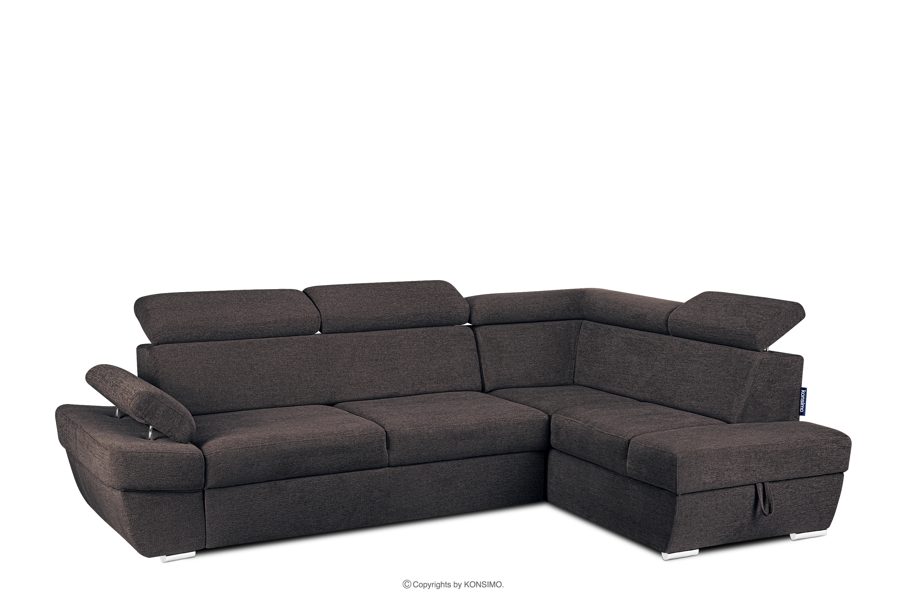 für das Produkt Ecksofa rechts mit Schlaffunktion und Bettzeugcontainer in marineblau/braun
