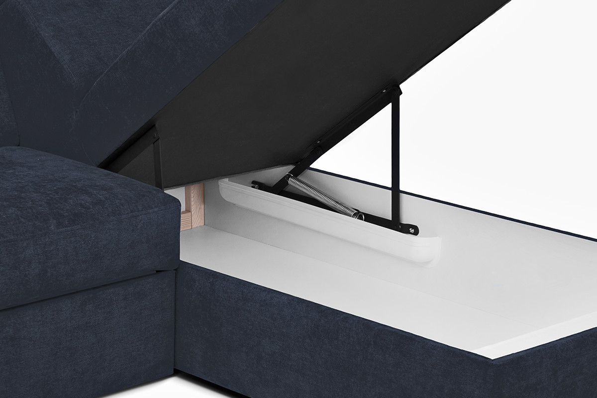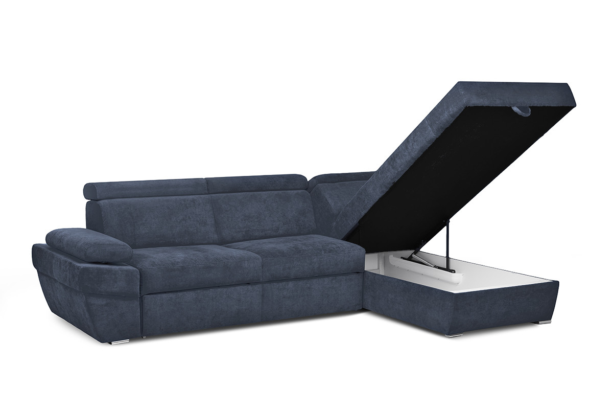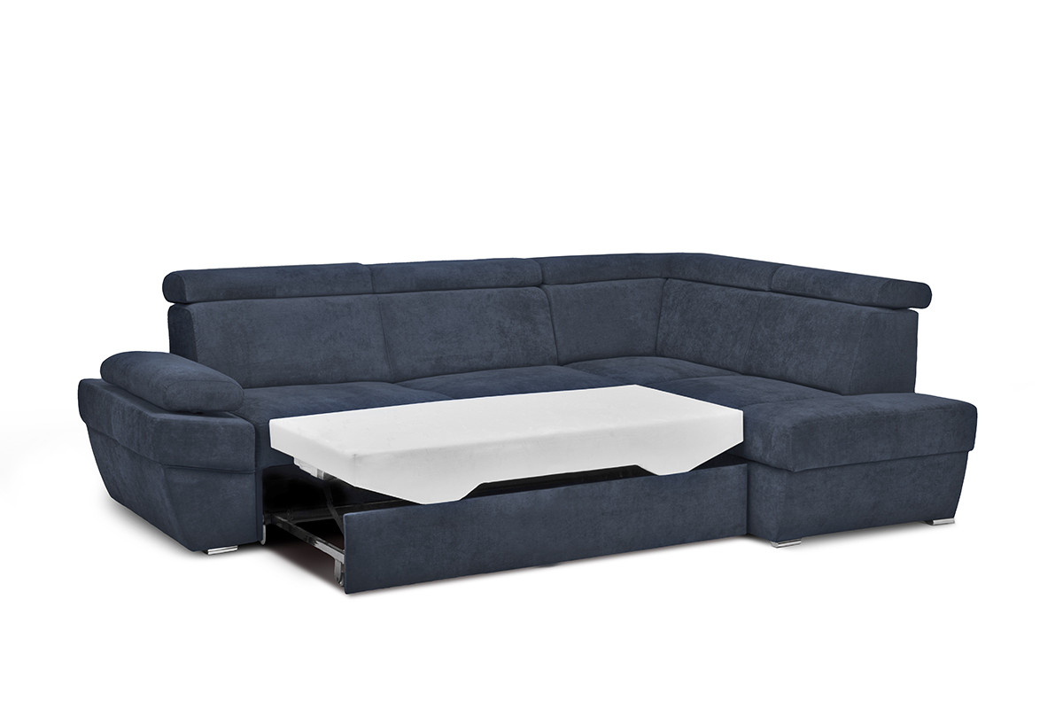 für das Produkt Ausklappbares Ecksofa mit Bettzeugcontainer navy blau rechts