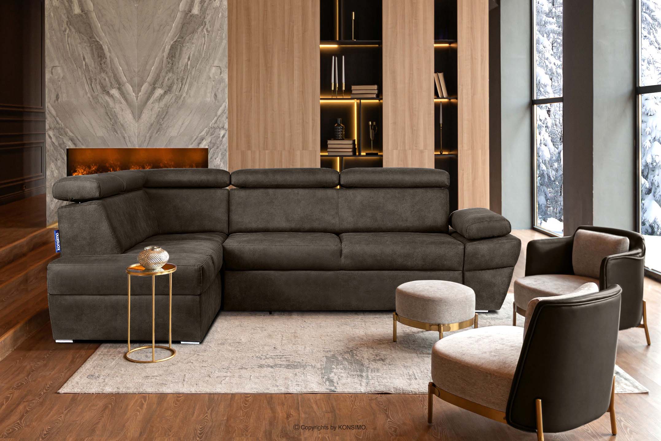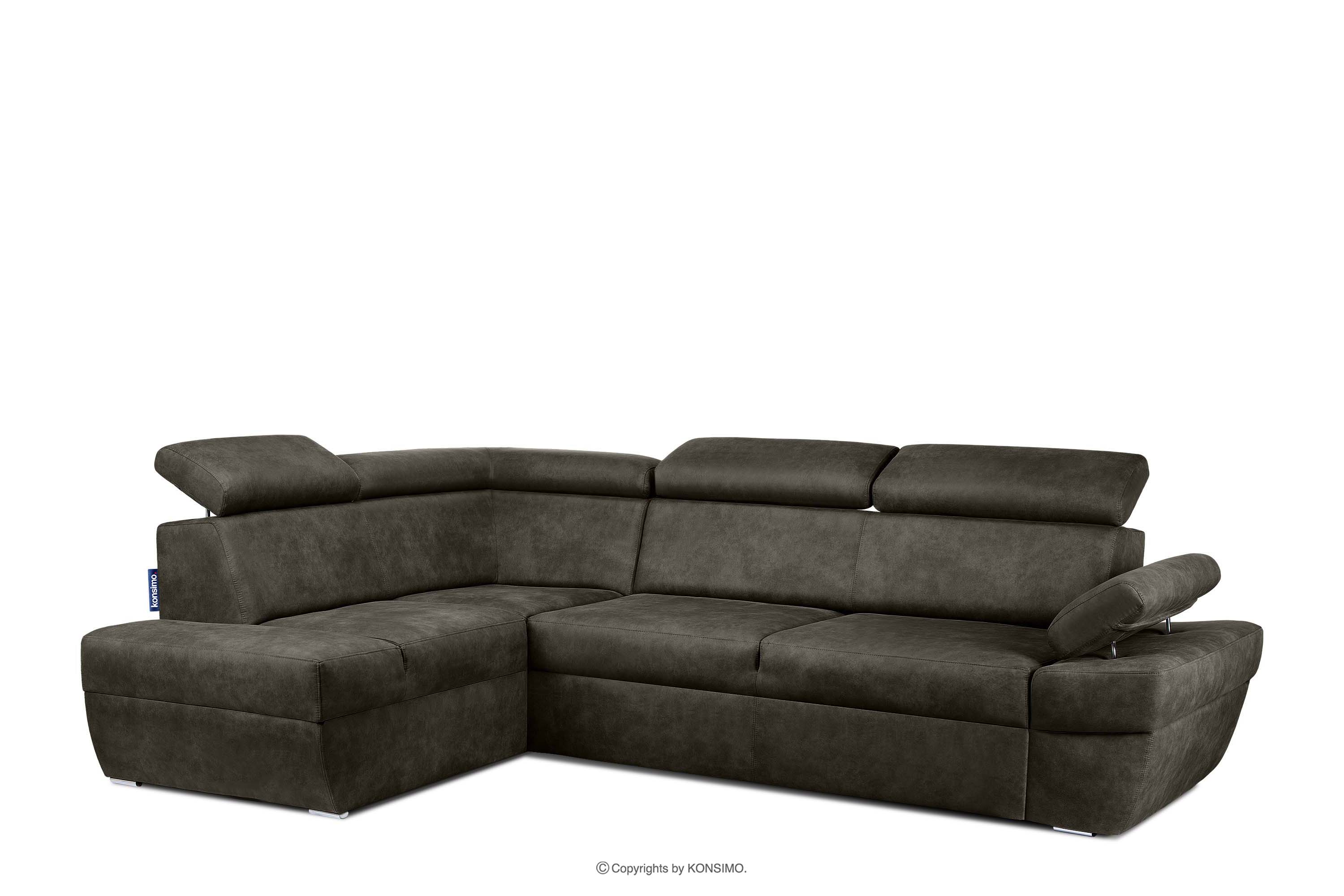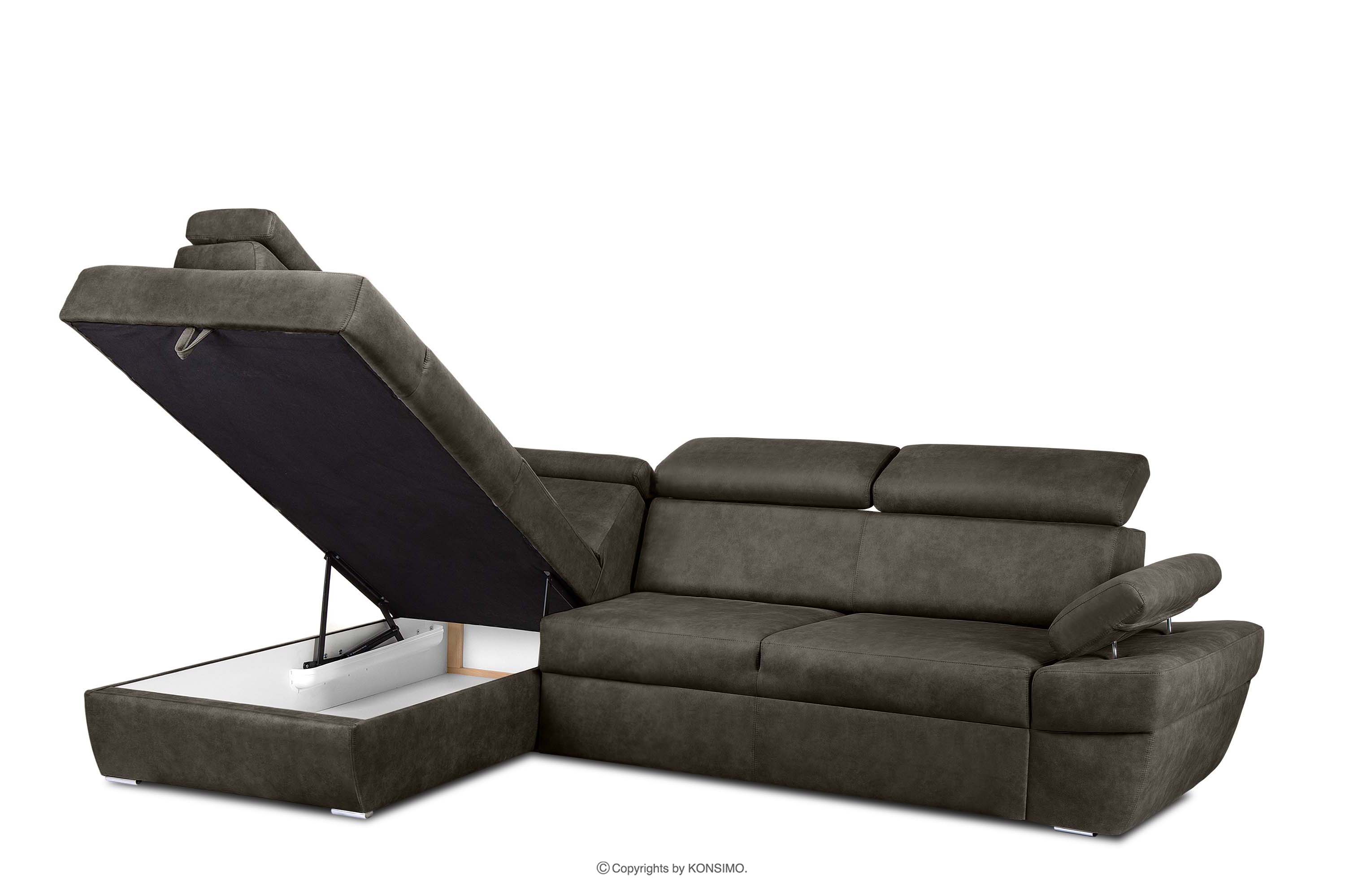 Das Ecksofa mit Schlaffunktion aus anthrazitfarbenem, lederähnlichem Stoff links aus der modernen Kollektion RATLO ist ein Vorschlag für Anspruchsvolle: Es ist langlebig, pflegeleicht und aus robusten und langlebigen Materialien gefertigt. Leicht aufklappbar und mit einer großen Truhe ausgestattet, ist es perfekt für kleine Wohnungen. Der lederähnliche Stoffbezug ist extrem abrieb- und beschädigungsfest.
