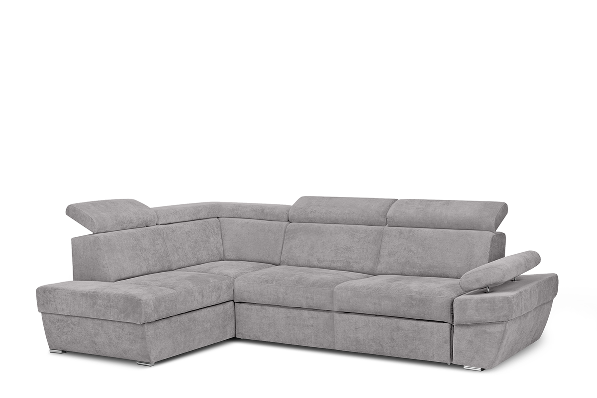 Die langlebige, leicht zu reinigende, aus soliden und langlebigen Materialien gefertigte, linke Eckcouch mit Bettkasten in Hellgrau aus der Kollektion moderner Möbel RATLO ist eine Empfehlung für anspruchsvolle Kunden. Leicht ausklappbar und mit einer großen Truhe ausgestattet, eignet sie sich perfekt für kleine Wohnungen. Das angenehm zu berührende gewebte Gewebe ist besonders strapazierfähig und langlebig.