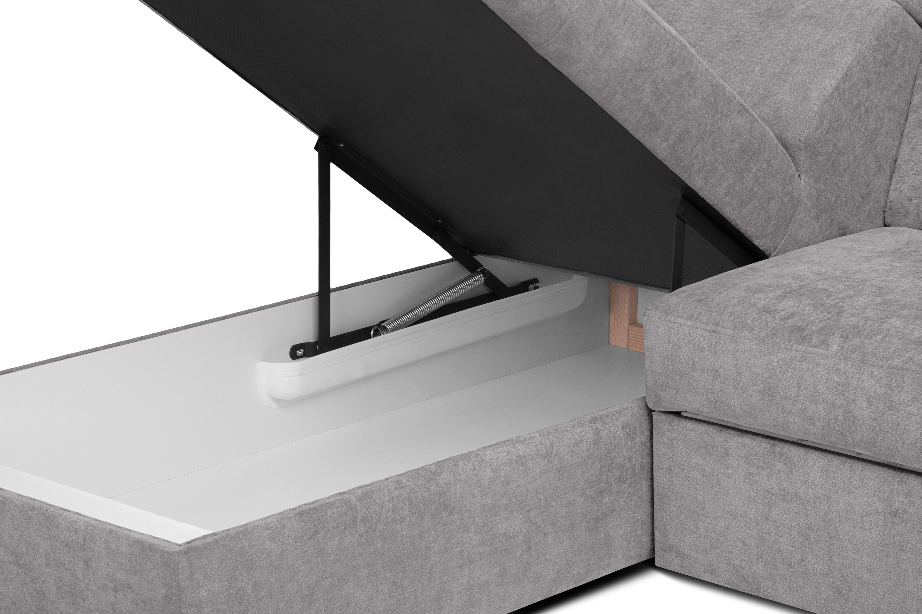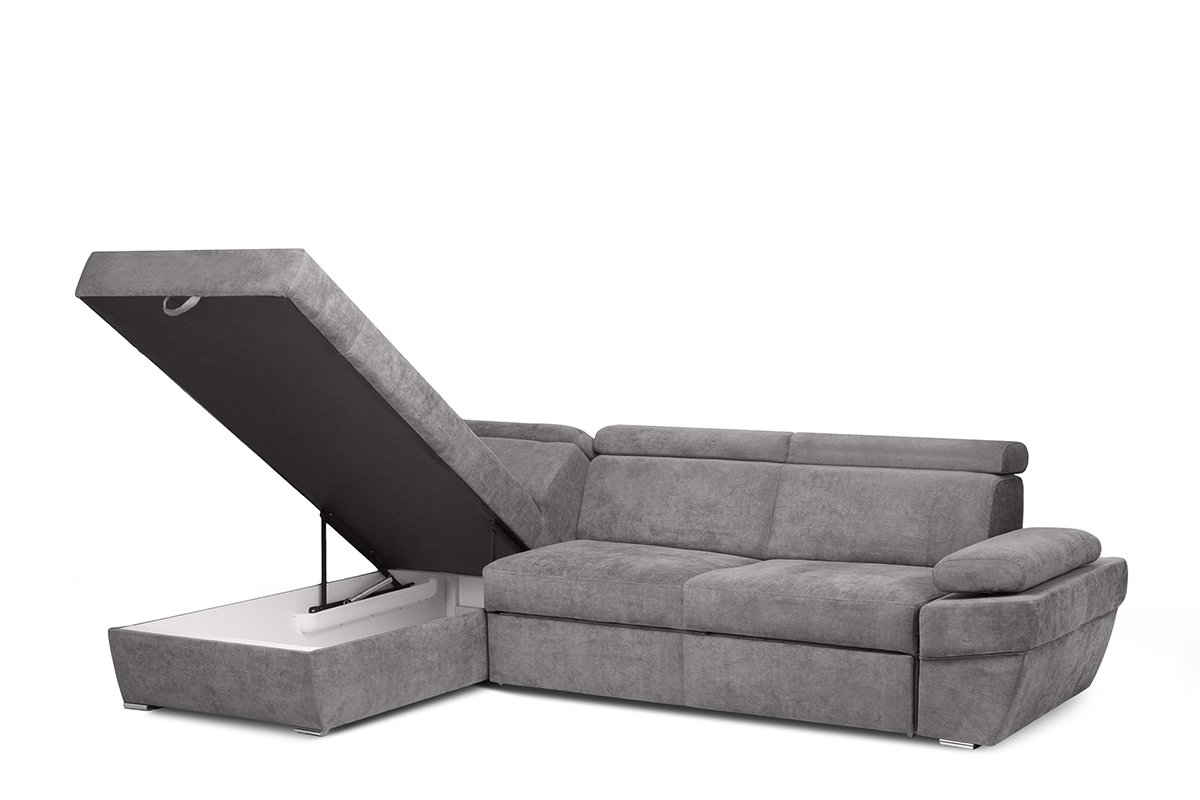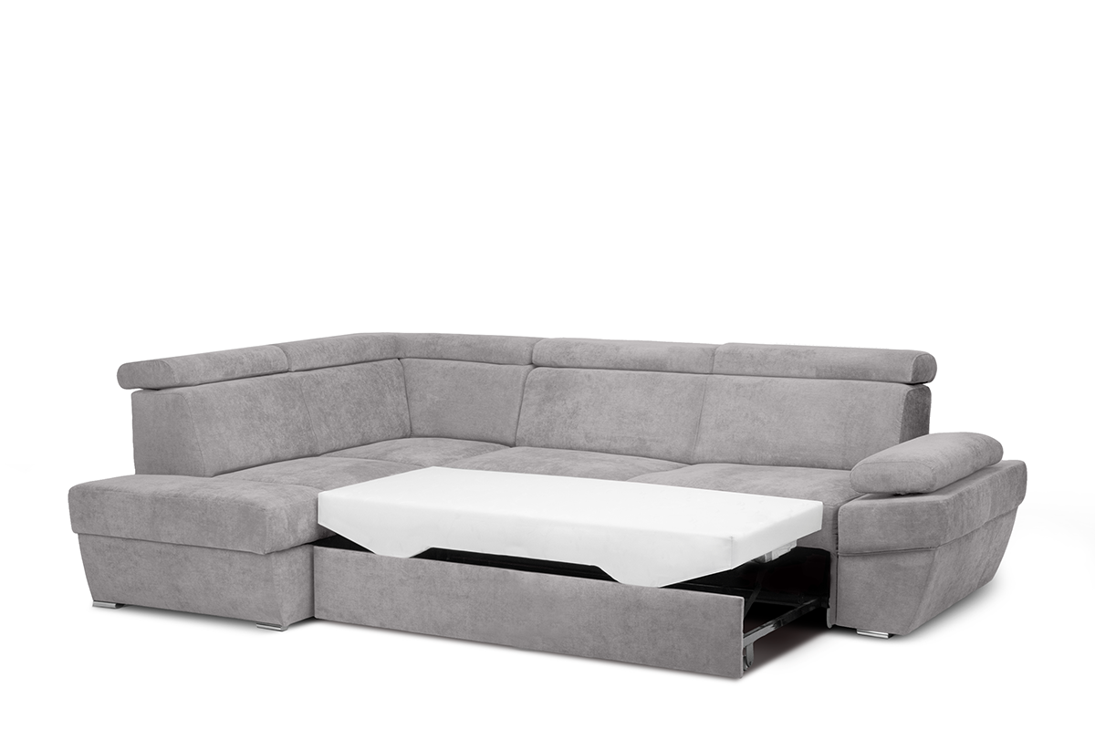 für das Produkt Ausklappbares Ecksofa mit Bettzeugablage hellgrau links
