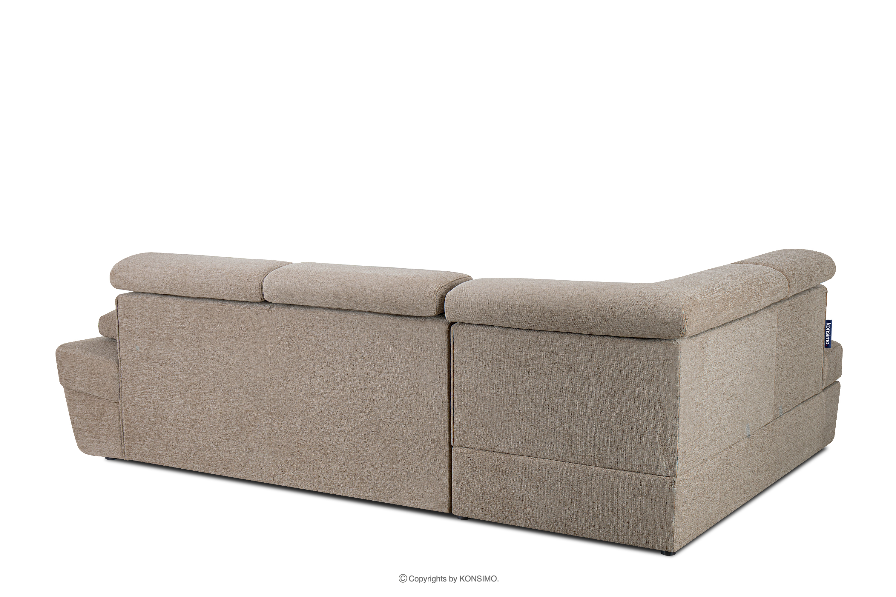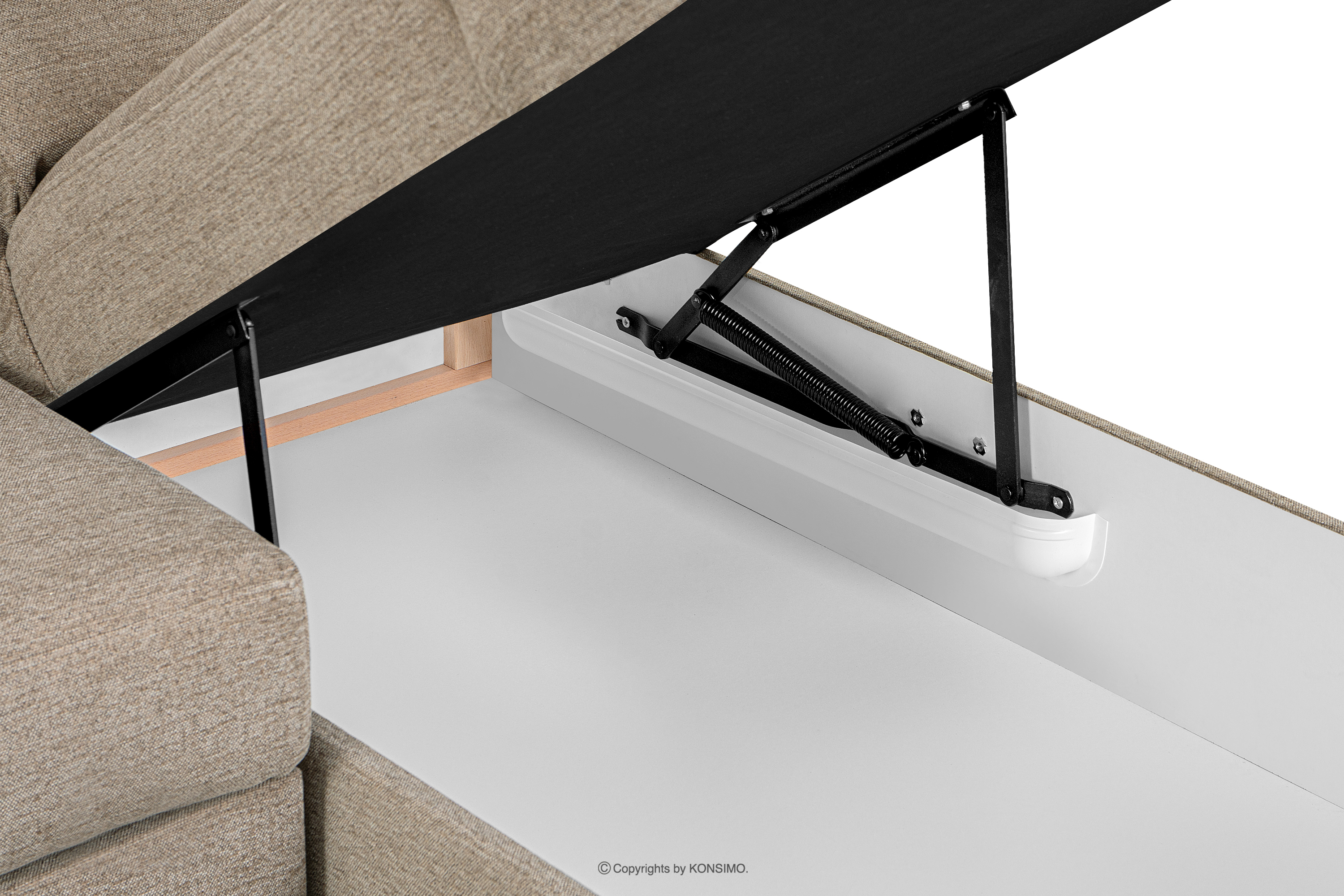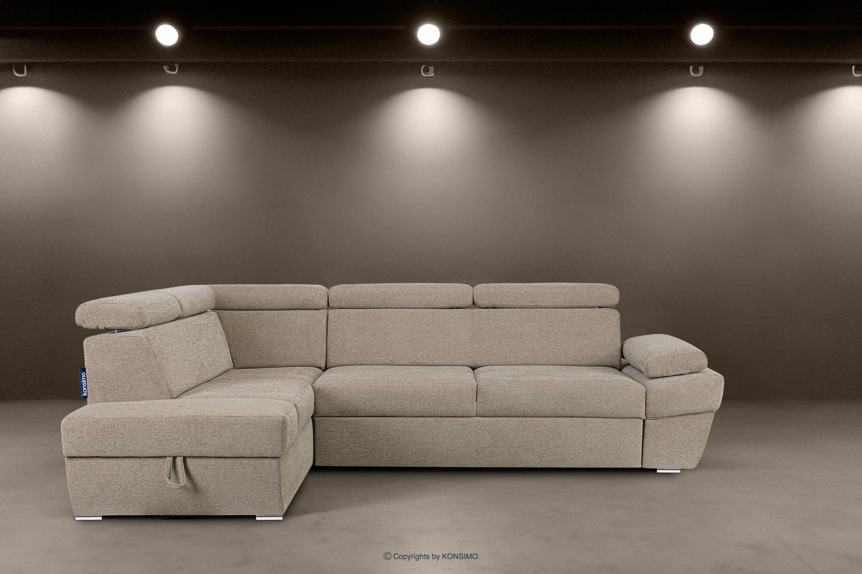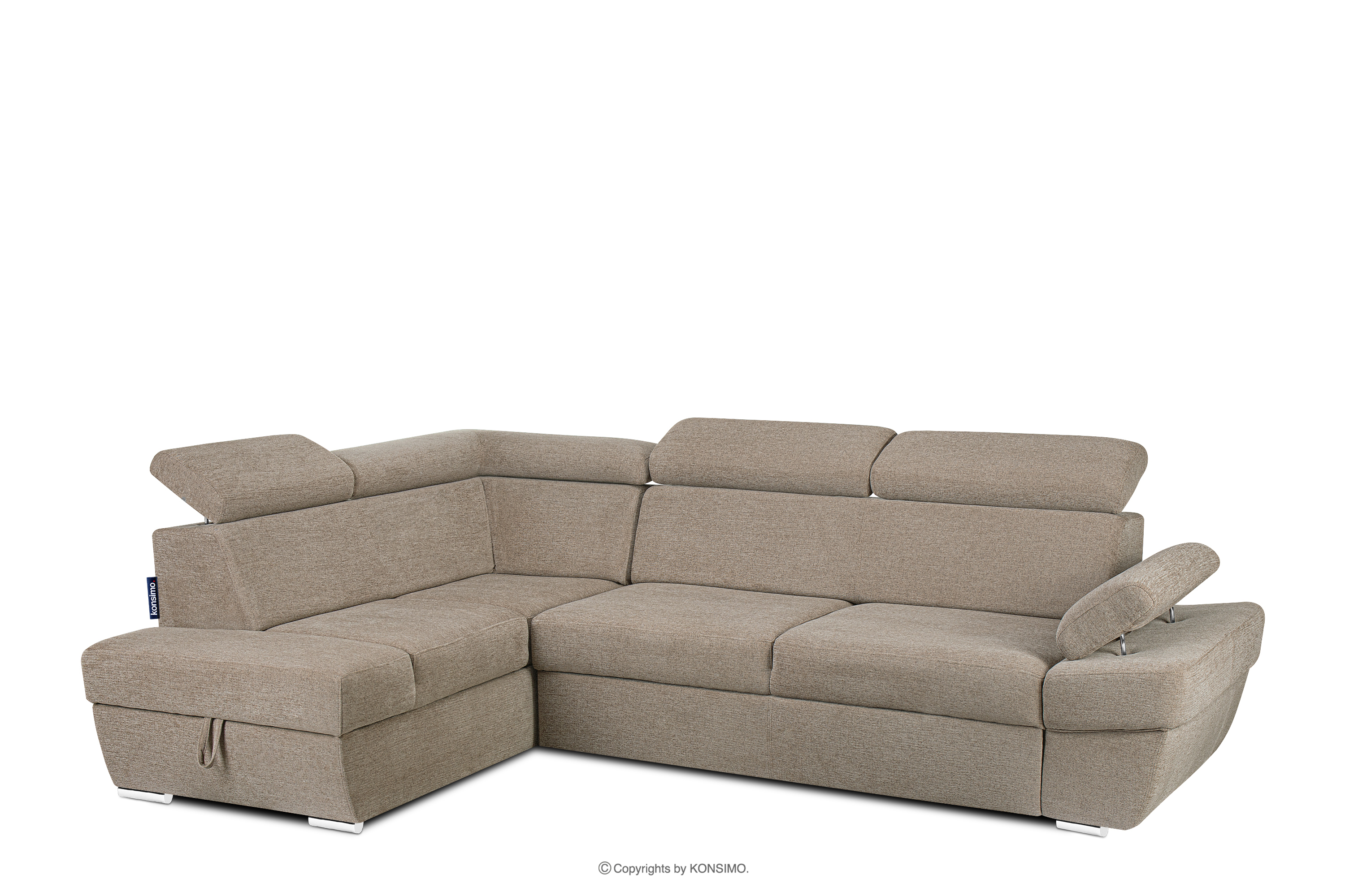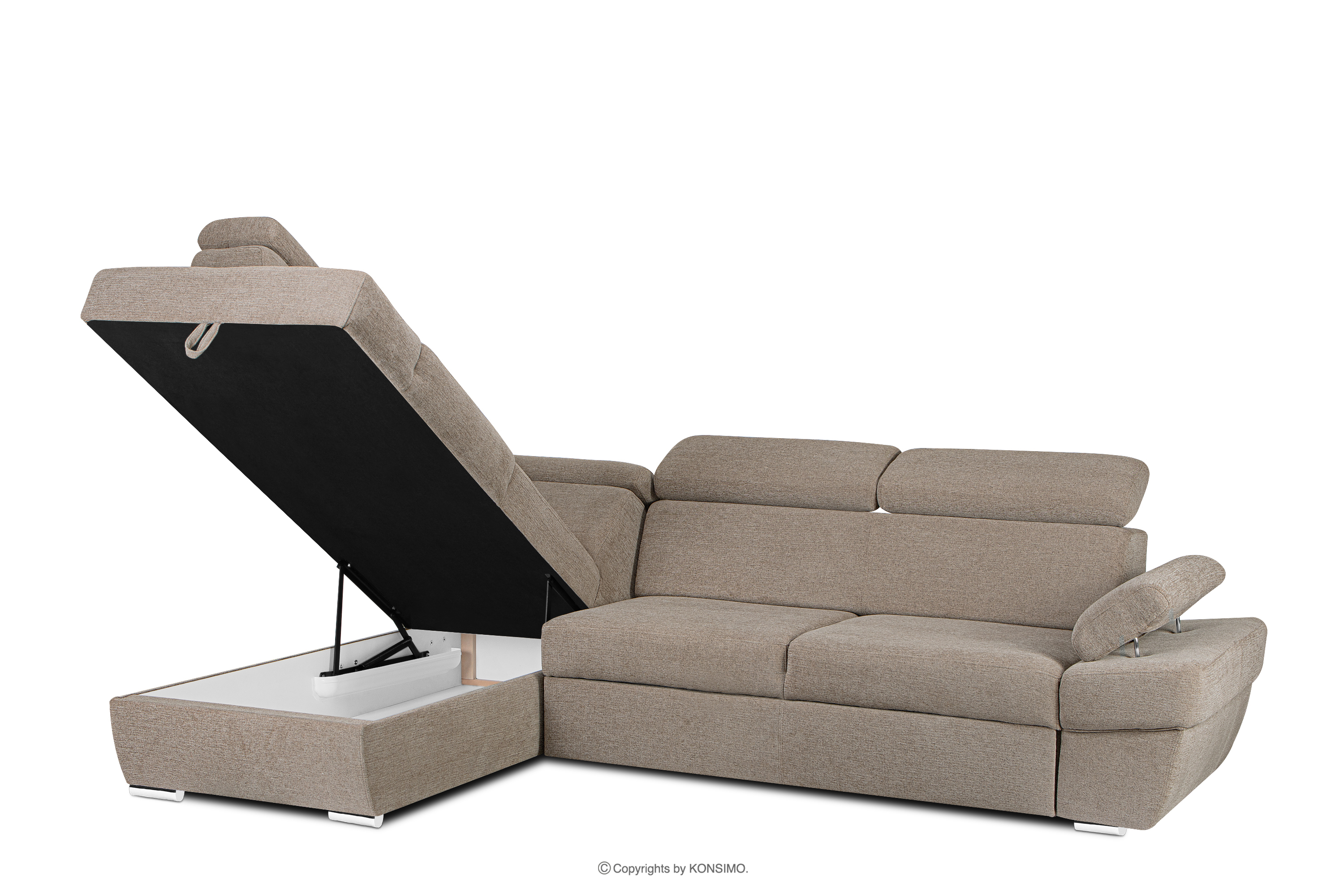 RATLO Ecksofa links mit Schlaffunktion und Bettzeugcontainer in dunkelbeige