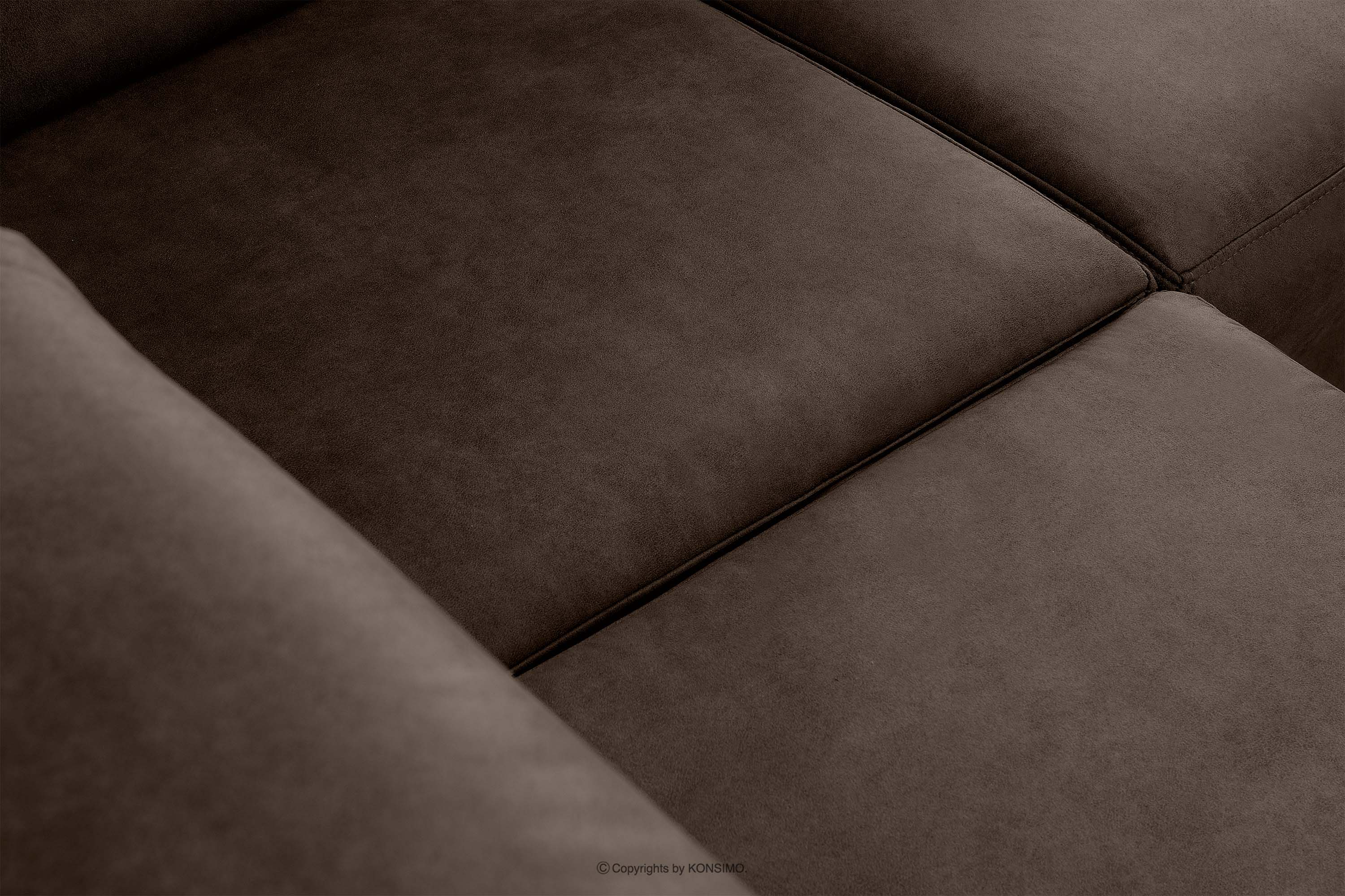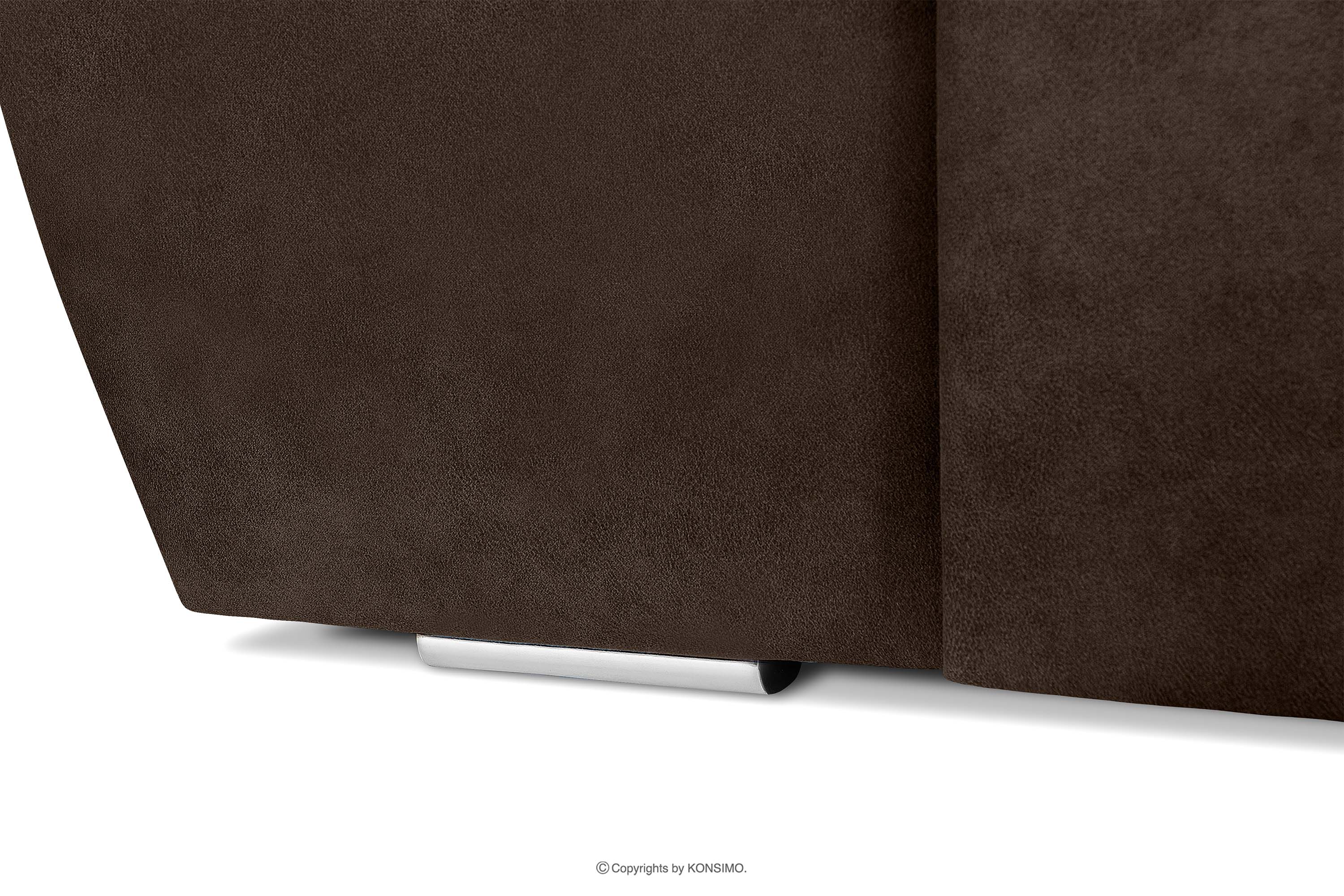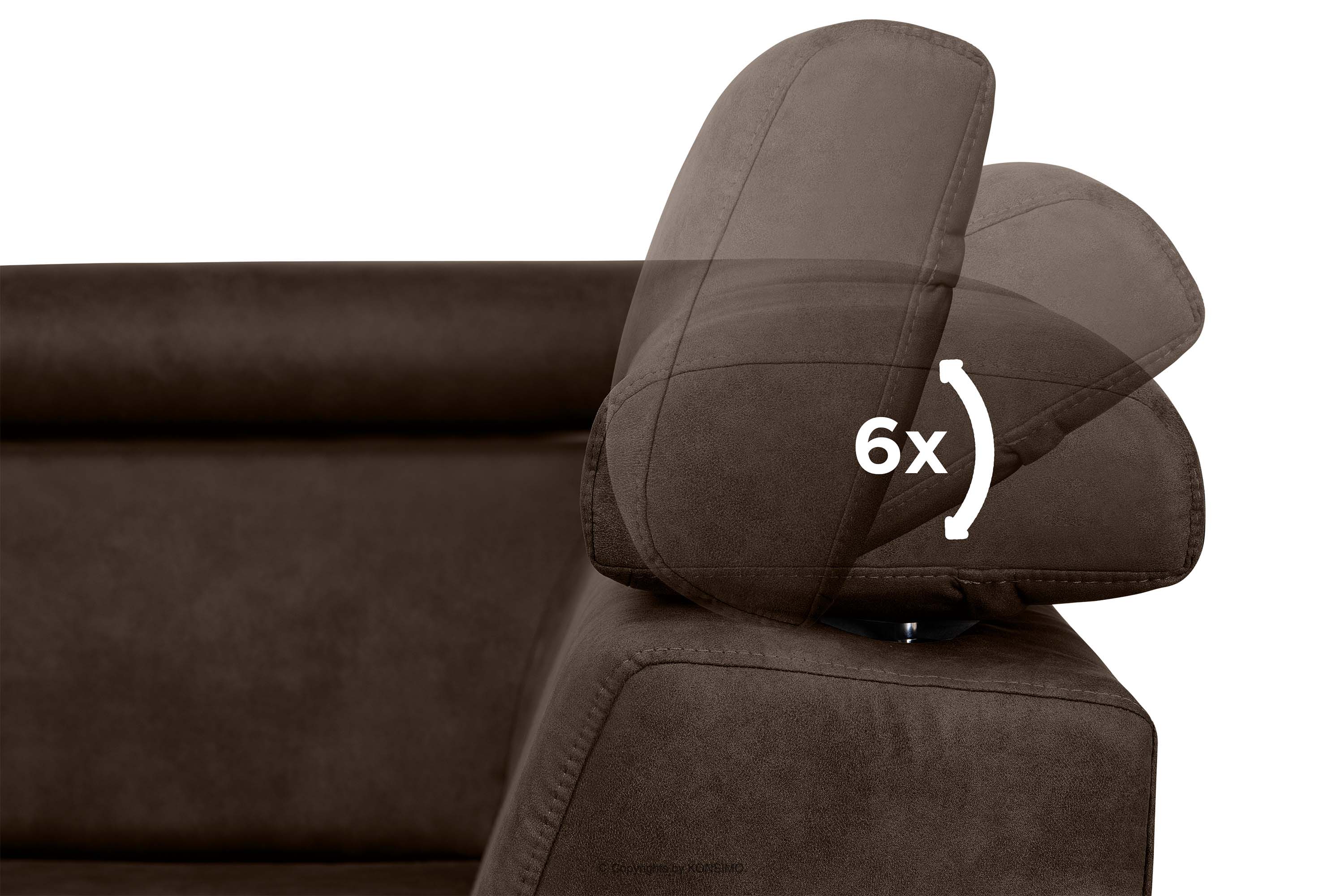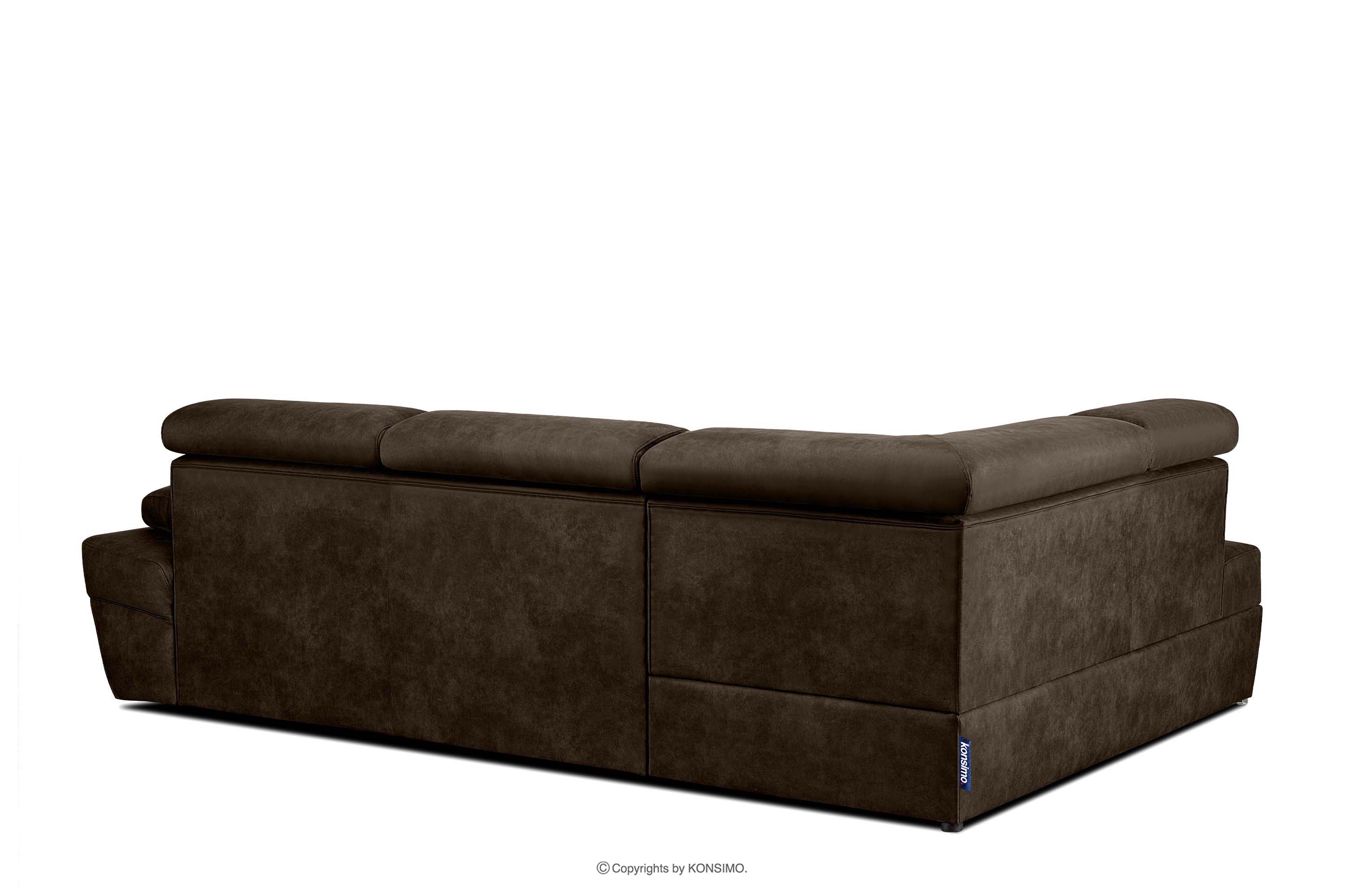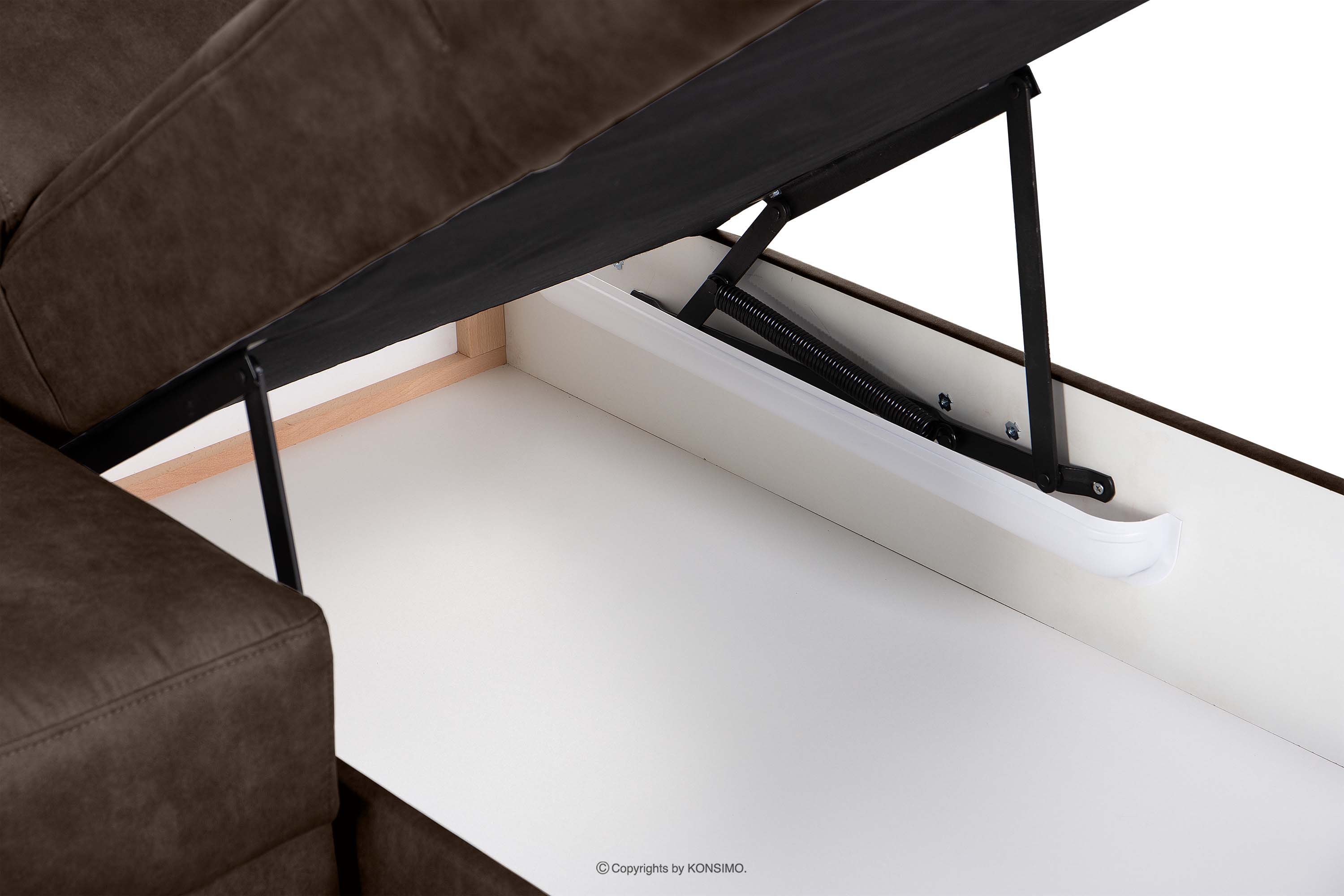 Das Ecksofa mit Schlaffunktion aus lederähnlichem Stoff in Dunkelbraun links aus der modernen Kollektion RATLO ist ein Vorschlag für Anspruchsvolle: langlebig, pflegeleicht, aus robusten und langlebigen Materialien gefertigt. Leicht aufklappbar und mit einer großen Truhe ausgestattet, ist es perfekt für kleine Wohnungen. Der lederähnliche Stoffbezug ist extrem widerstandsfähig gegen Abrieb und Beschädigungen.