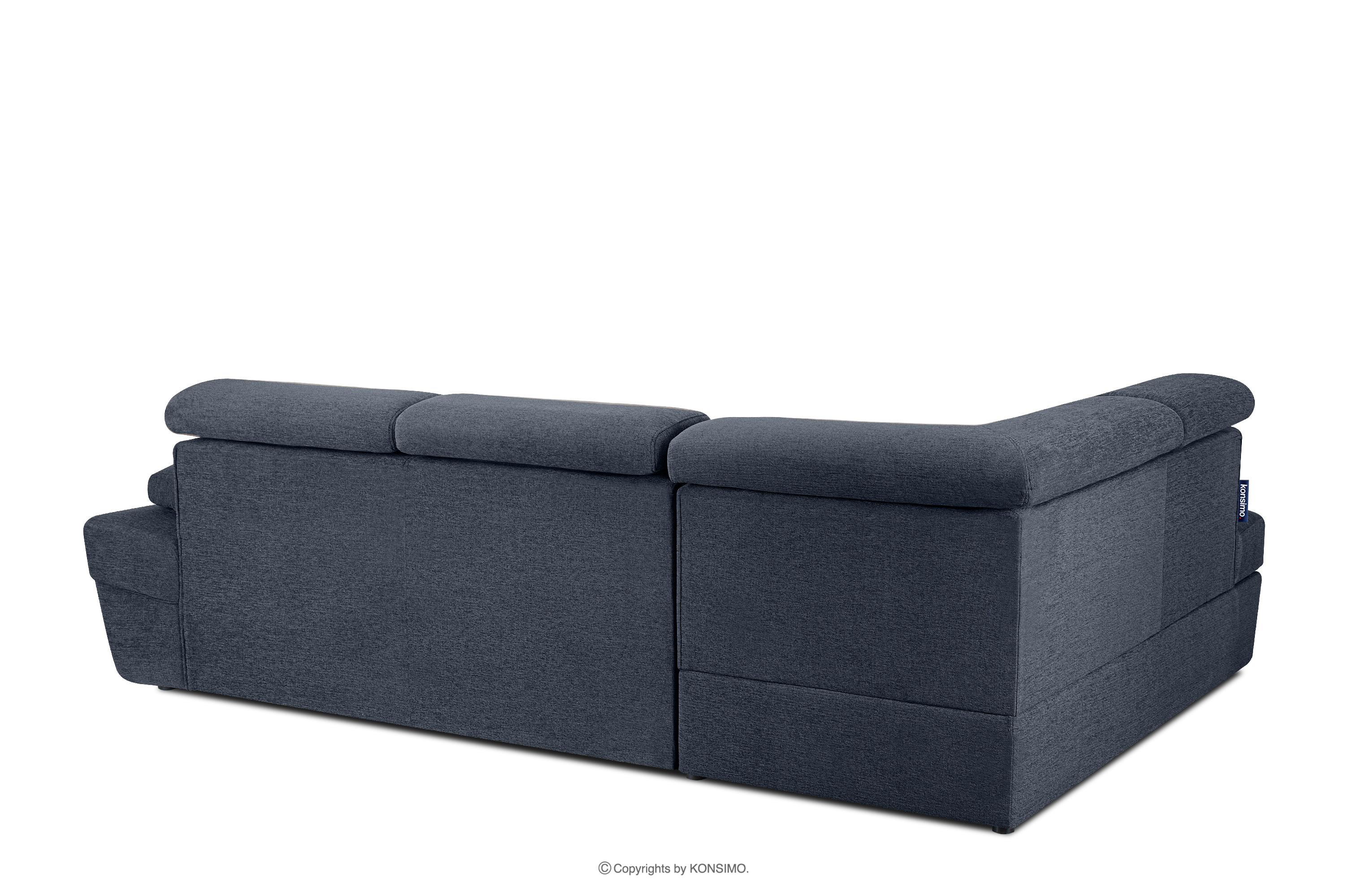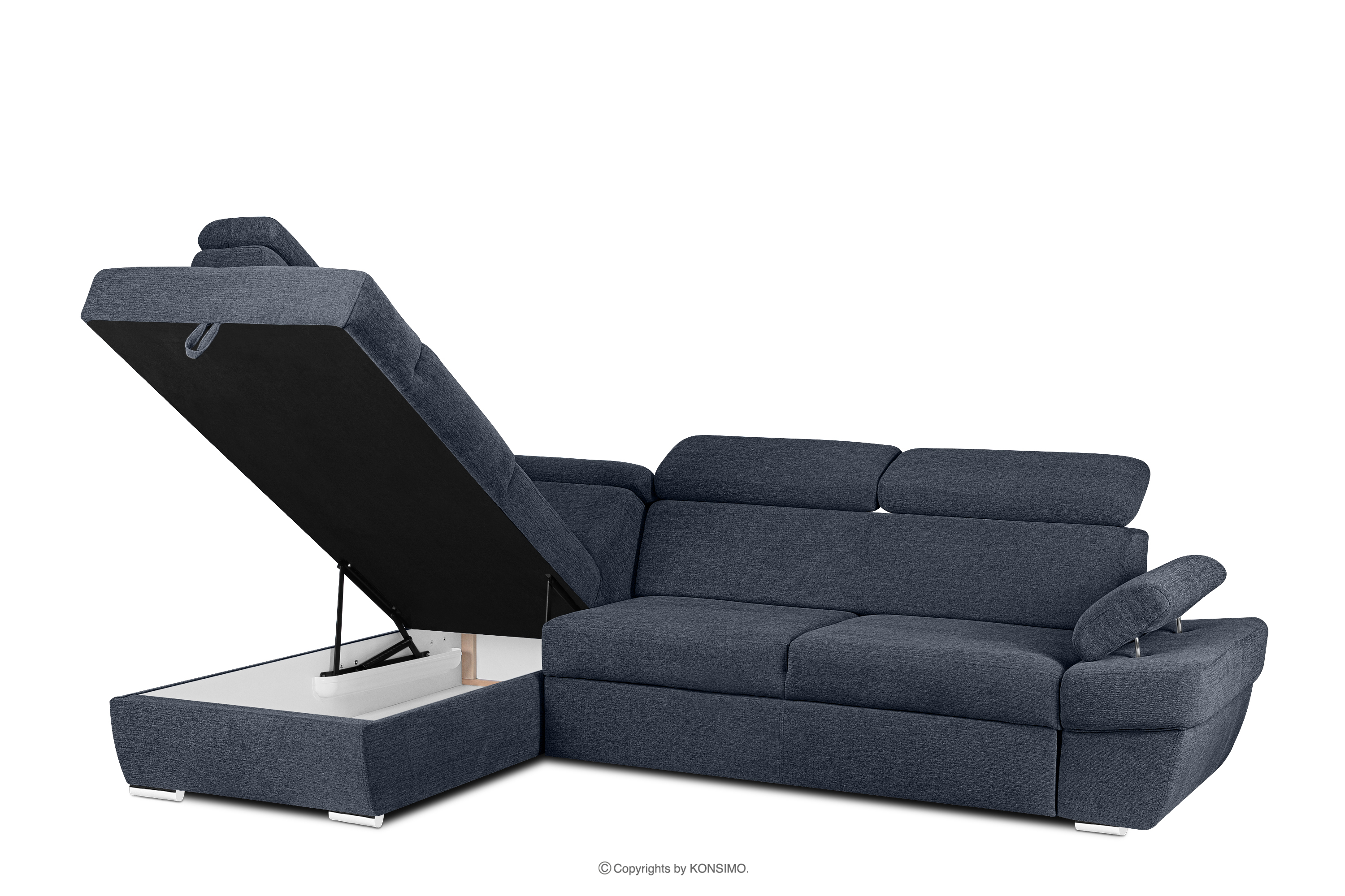 RATLO Ecksofa links mit Schlaffunktion und Bettzeugcontainer in dunkelblau