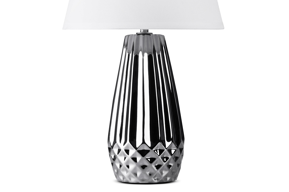 Die ERANA-Kollektion bietet Tischlampen für ein elegantes Interieur, voller Klasse und Glanz. Der dekorative Lampenfuß besteht aus Keramik und hat feine Rillen, die ein einzigartiges Muster erzeugen. Der Lampenschirm hat eine trapezförmige Form und sorgt für eine beidseitige Lichtabgabe. Dadurch beleuchtet die Lampe die nähere Umgebung gleichmäßig und ist eine ausgezeichnete Lösung für Wohnzimmer und Schlafzimmer.