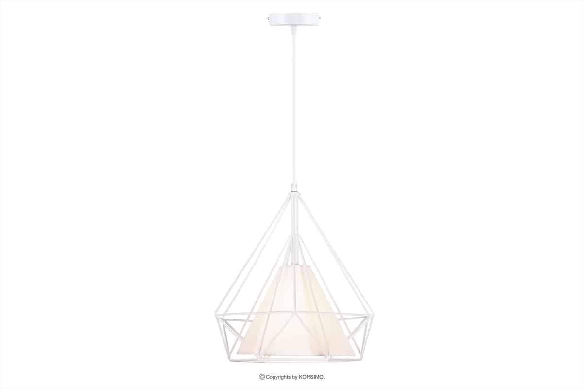 Die Designer der hängenden Lampe aus der ACOS-Kollektion haben auf jedes Detail geachtet und dieses Modell zu einer einzigartigen Innendekoration gemacht. Die metallischen Elemente um den Schirm bilden eine geometrische Form, die an einen Diamanten erinnert, wodurch die Lampe äußerst interessant für das Auge ist. Dieses Design passt am besten zum industriellen Stil, passt aber auch gut zu modernen Innenräumen.