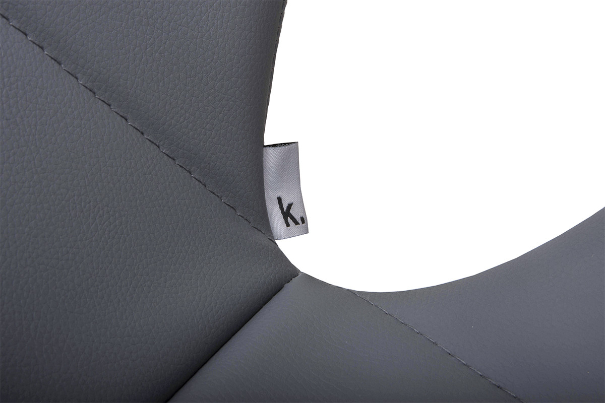 Der Sitz des Stuhls ist aus hochwertigem Kunstleder gefertigt, das für einen interessanten Effekt gesteppt ist. Die Stuhlbeine sind aus Buchenholz gefertigt, was seine Stabilität und Langlebigkeit gewährleistet. Der Stuhl ist in verschiedenen Farbvarianten erhältlich, sodass er zu verschiedenen Einrichtungsstilen passen kann.
