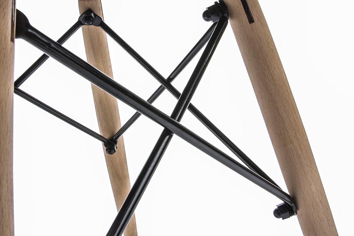 Der Sitz des Stuhls ist aus hochwertigem Kunstleder gefertigt, das für einen interessanten Effekt gesteppt ist. Die Stuhlbeine sind aus Buchenholz gefertigt, was seine Stabilität und Langlebigkeit gewährleistet. Der Stuhl ist in verschiedenen Farbvarianten erhältlich, sodass er zu verschiedenen Einrichtungsstilen passen kann.