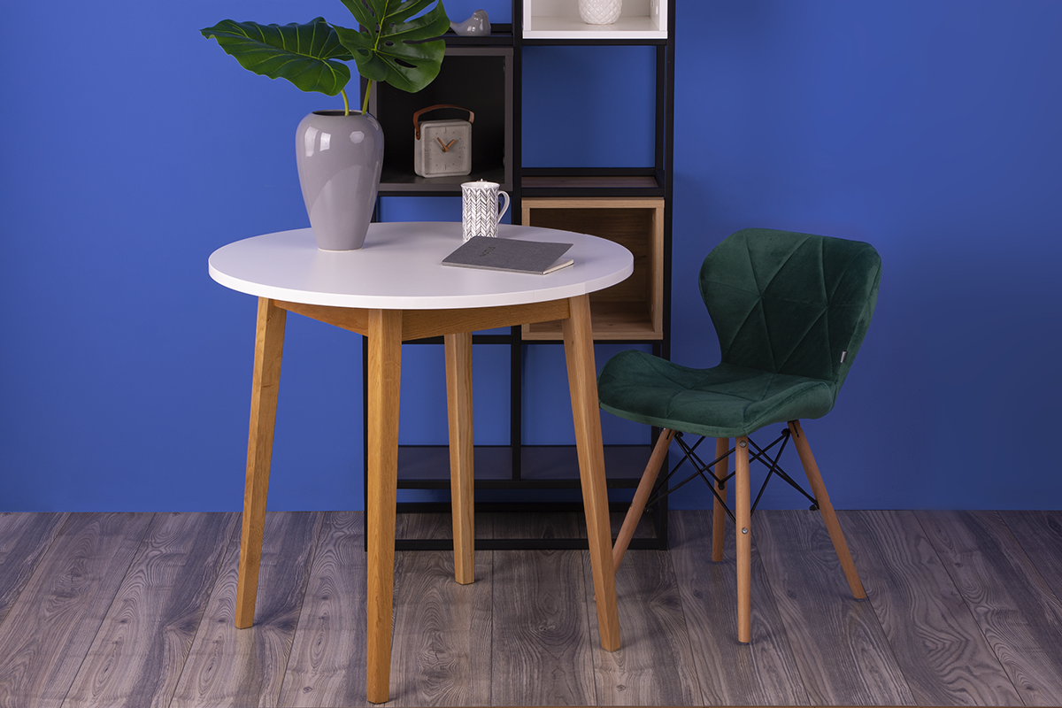 Der elegante Stuhl aus der TRIGO-Kollektion wurde entworfen, um einen hohen Komfort während der Nutzung zu gewährleisten, dank der entsprechenden Profilierung der Sitzfläche. Gleichzeitig ist die Konstruktion schlank und nimmt nicht viel Platz ein, was besonders in Esszimmern, aber auch im Entspannungsbereich oder am Schreibtisch praktisch ist. Außerdem verdient die Verarbeitung aus angenehmem, berührungsempfindlichem Samt besondere Aufmerksamkeit, der nicht knittert, strapazierfähig und langlebig ist.