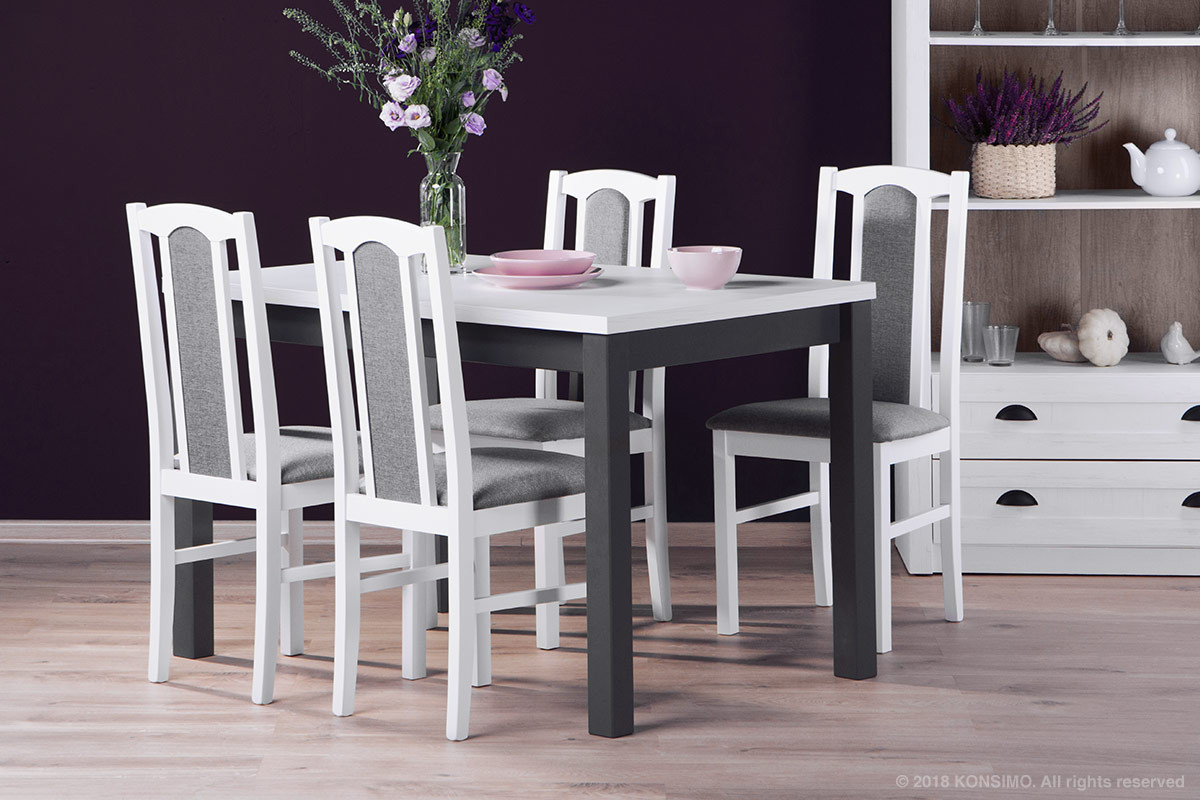 Der moderne, ausziehbare Tisch aus der SILVA-Kollektion ist sowohl für das klassische Wohnzimmer, Esszimmer als auch die Küche eine hervorragende Wahl. Die Beine und der Rahmen sind aus massivem Buchenholz gefertigt, wodurch die gesamte Konstruktion außergewöhnlich stabil und langlebig ist. Die Tischplatte besteht aus einer 32 mm laminierten Spanplatte.