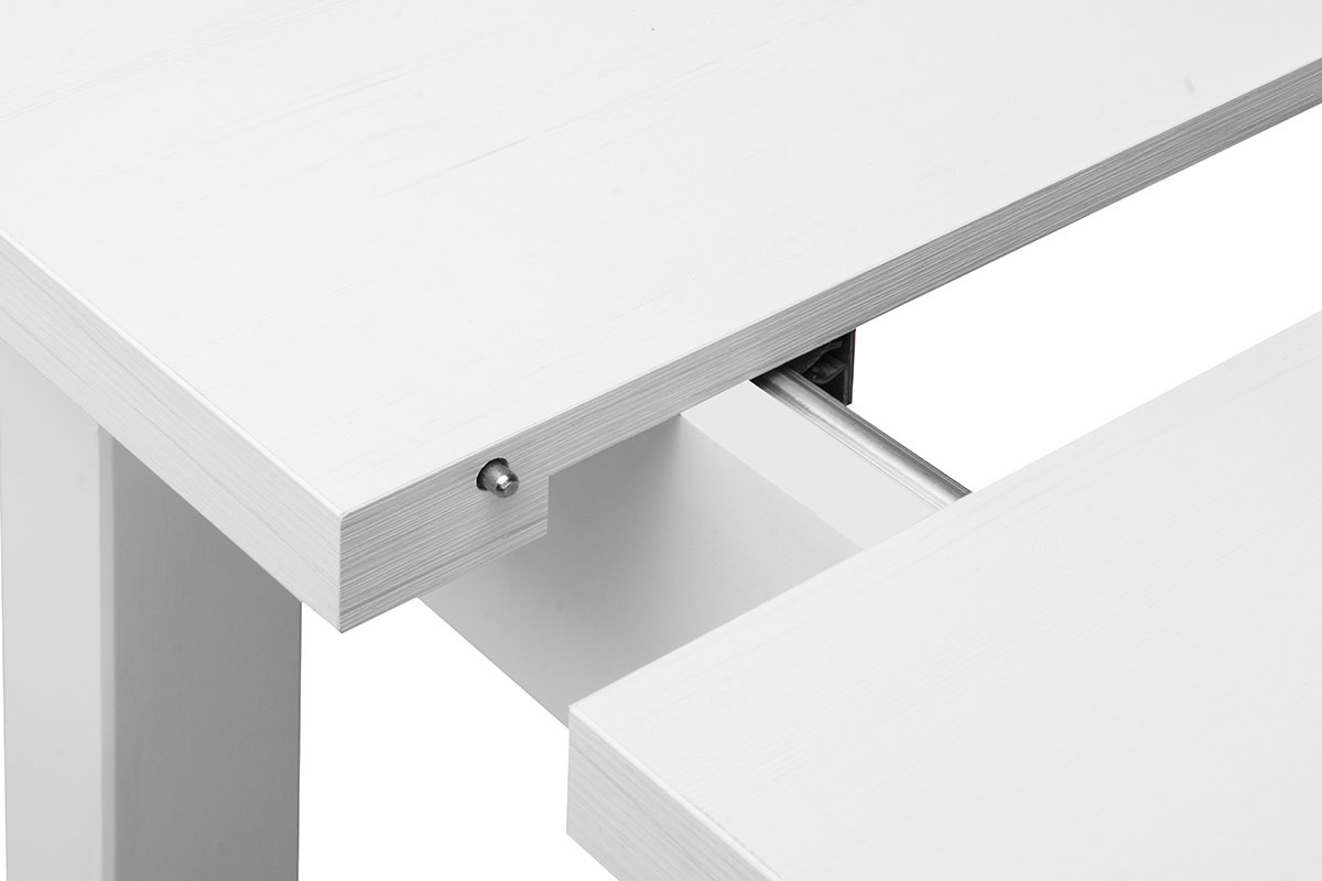 Der moderne ausziehbare Tisch aus der SALUTO-Kollektion ist eine hervorragende Wahl für das Wohnzimmer, das Esszimmer oder die Küche. Die Beine und der Rahmen sind aus massivem Buchenholz gefertigt, wodurch die gesamte Konstruktion besonders stabil und langlebig ist. Die Tischplatte besteht aus einer robusten, 32 mm starken laminierten Spanplatte.