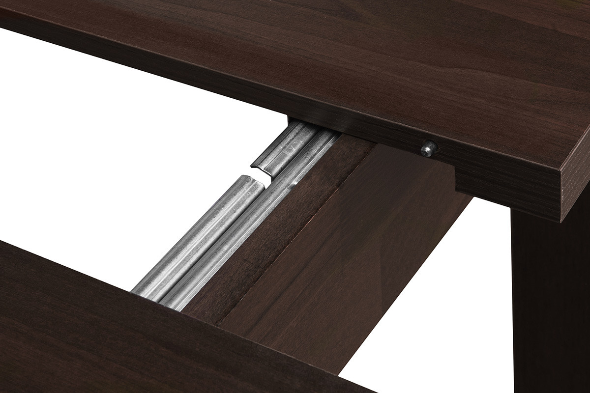 Der moderne, ausziehbare Tisch aus der CENARE-Kollektion ist eine ausgezeichnete Wahl für ein klassisches Wohnzimmer, Esszimmer oder Küche. Die Beine und der Rahmen sind aus massivem Buchenholz gefertigt, was eine außergewöhnlich stabile und langlebige Konstruktion gewährleistet. Die Tischplatte besteht aus einer 32 mm laminierten Spanplatte.