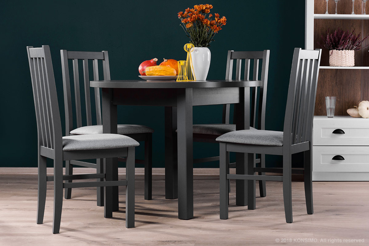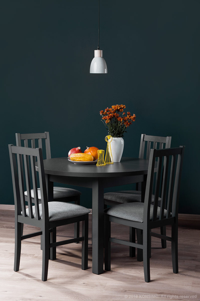 Der klassische, runde Tisch aus der MENZO-Kollektion ist eine ausgezeichnete Wahl für ein klassisches Wohnzimmer, Esszimmer oder Küche. Die Beine und der Rahmen sind aus massivem Buchenholz gefertigt, was die gesamte Konstruktion besonders stabil und langlebig macht. Die Tischplatte besteht aus einer 32 mm laminierten Spanplatte.