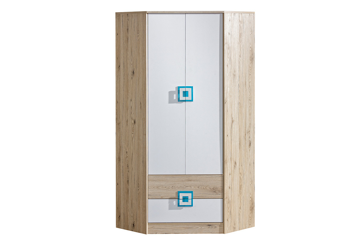 CAMBI Farbiger Eckschrank für Kinderzimmer weiß / Eiche hell / türkis
