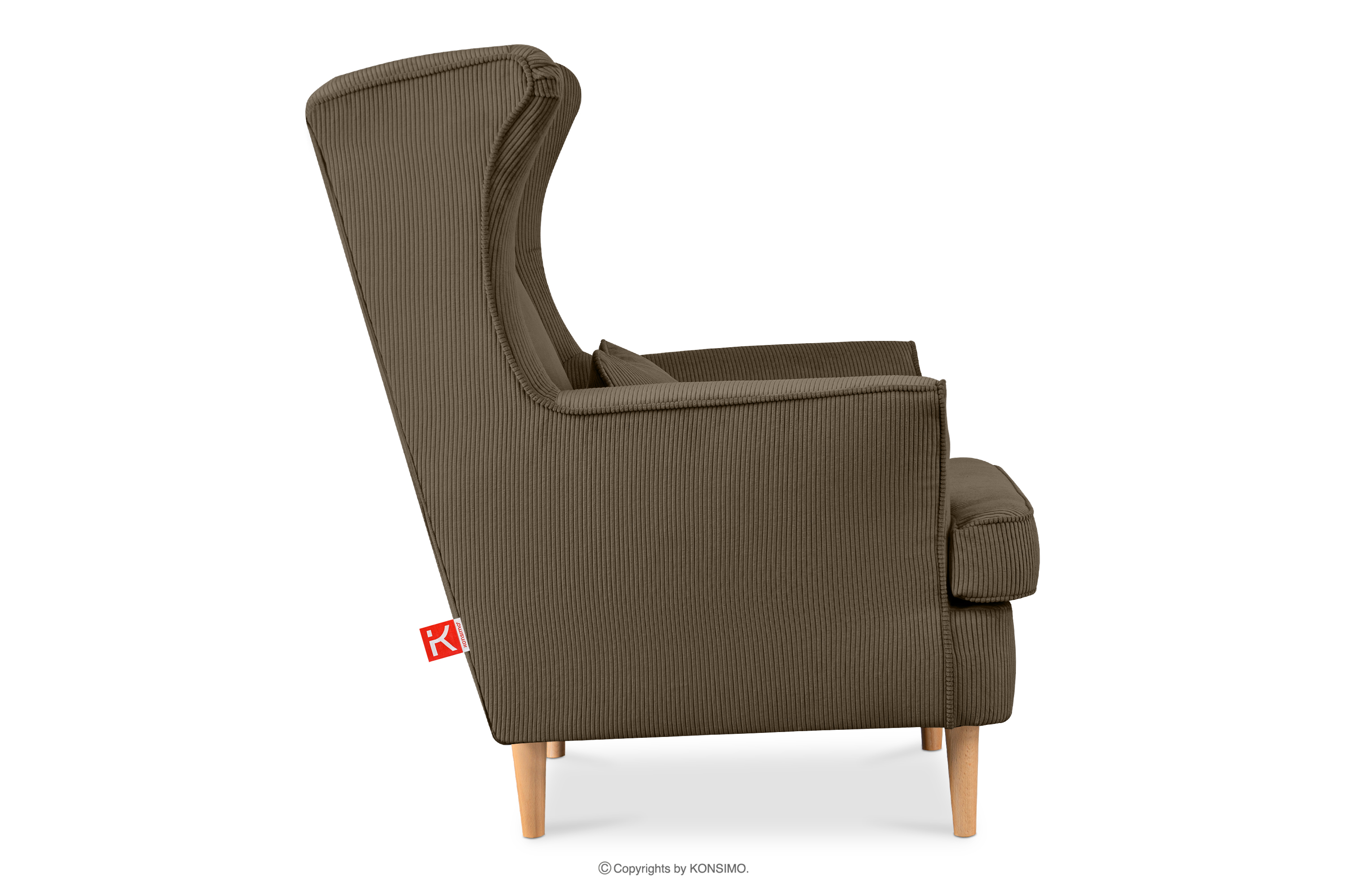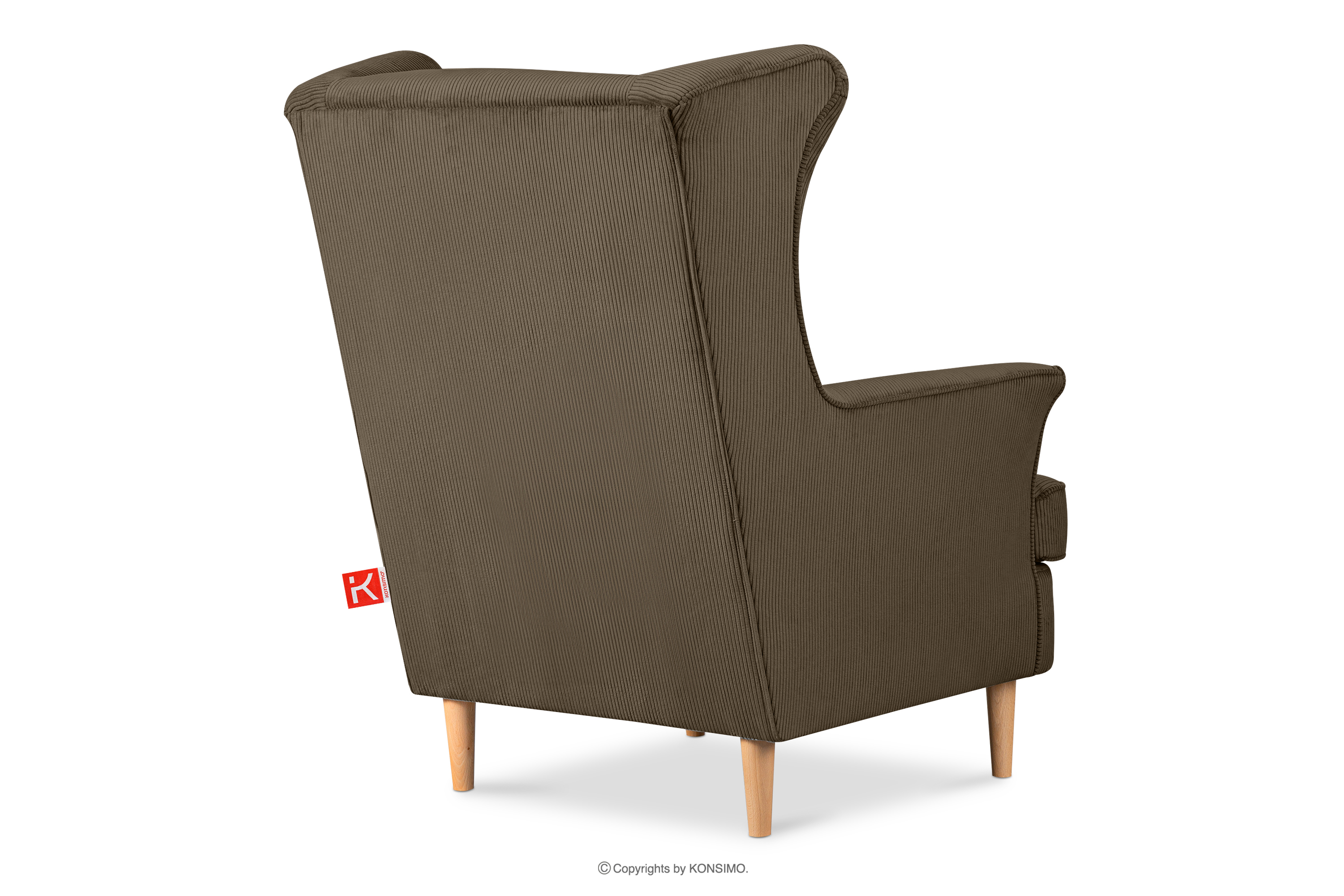 für das Produkt Kordstoff-Sessel auf Holzbeinen in kühlem braun