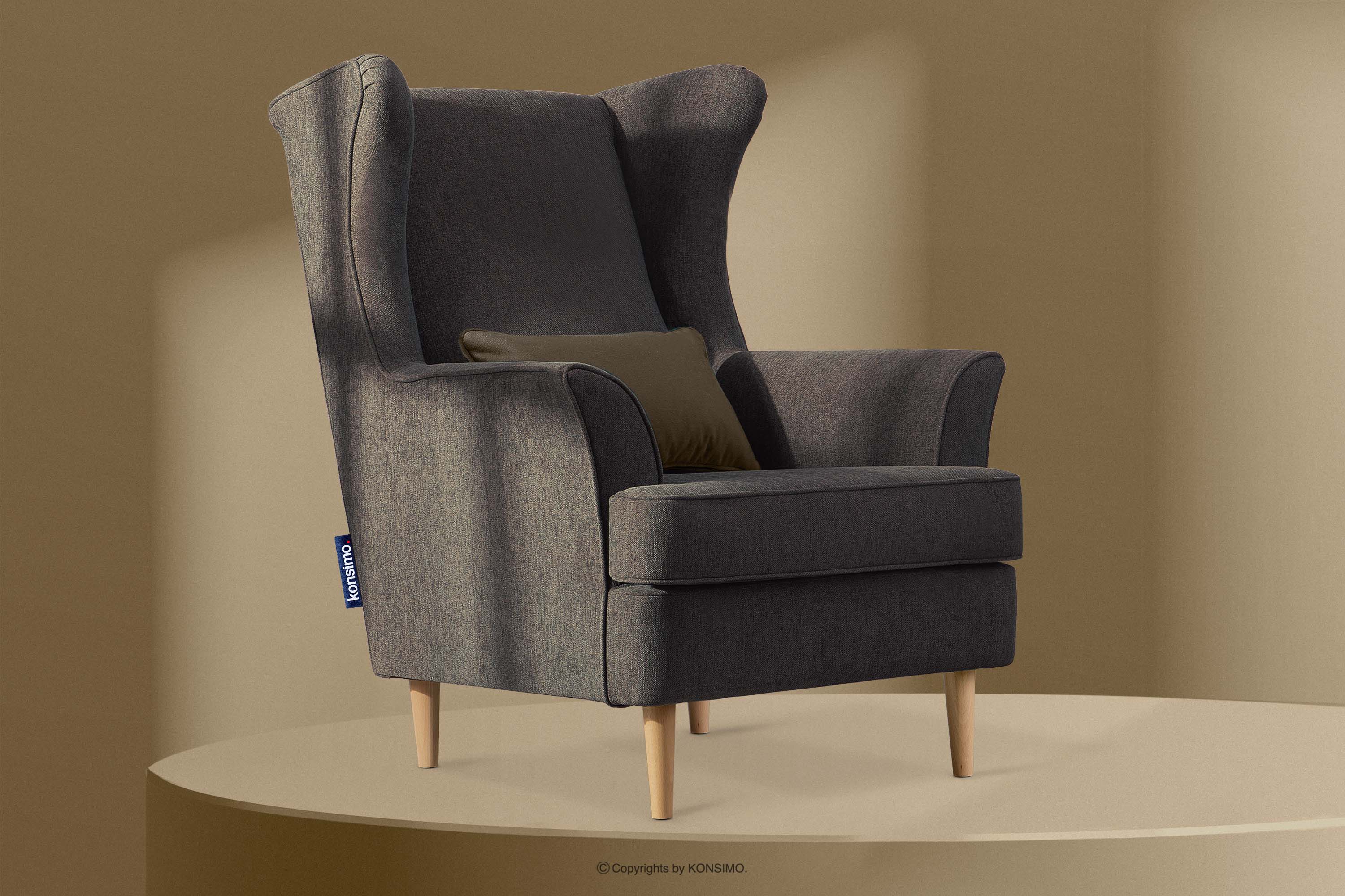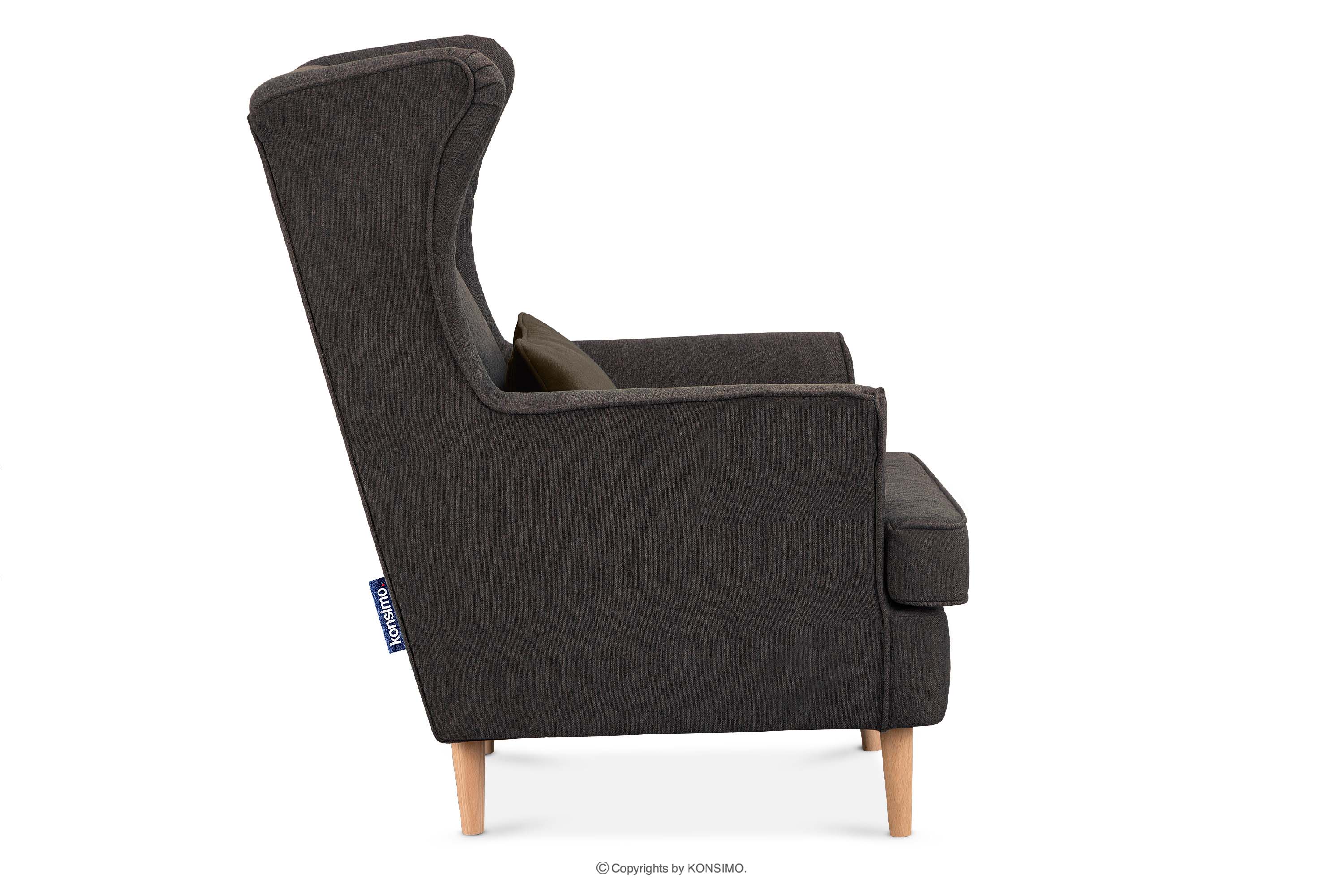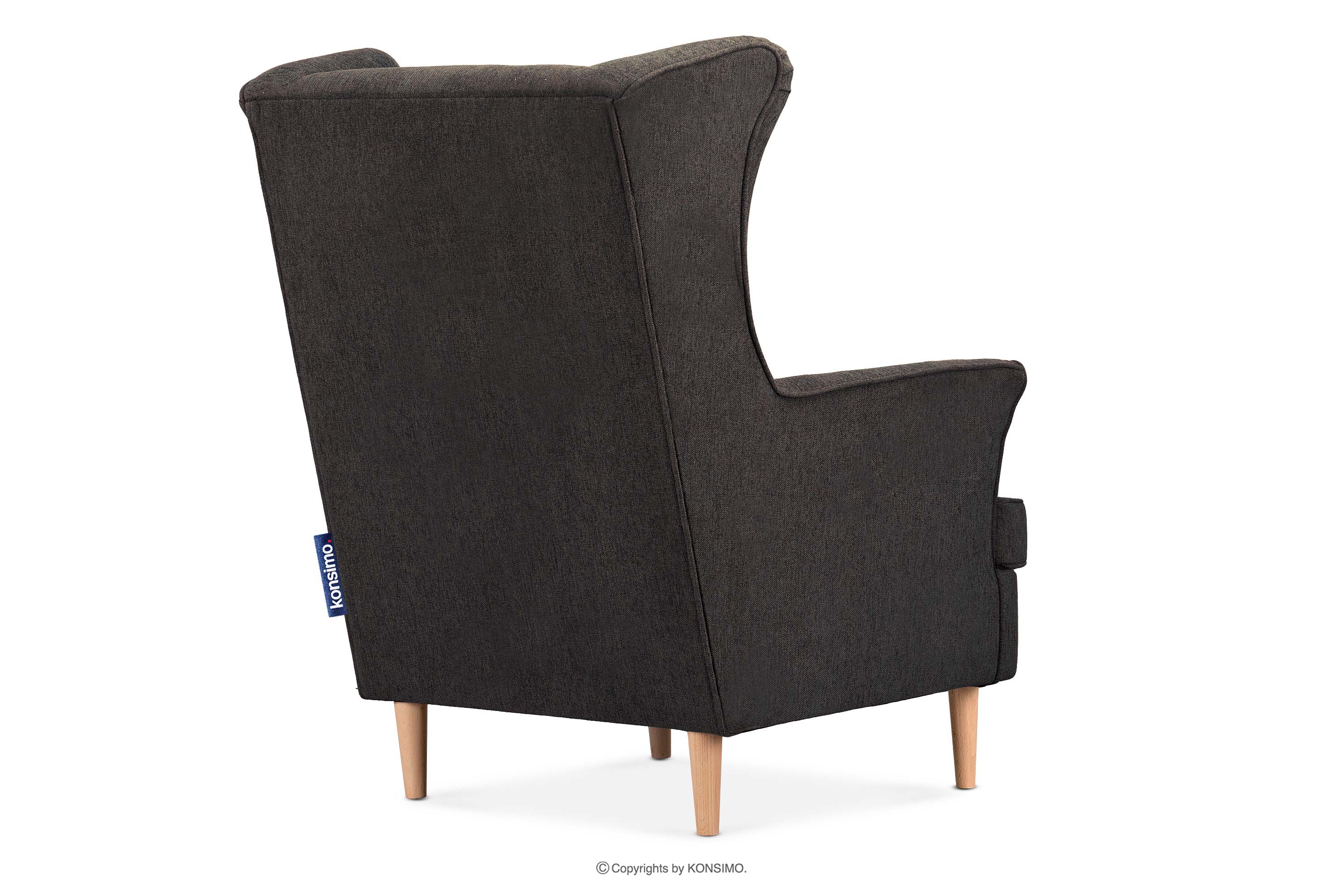 Der außergewöhnlich solide und bequeme Ohrensessel uszak navy blue/brown aus der Kollektion der klassischen STRALIS-Möbel wird sich sowohl in Wohnräumen als auch in Hotels oder Restaurants bewähren. Der Nutzungskomfort wird durch die angenehm zu greifende, hochwertige Polsterung aus strapazierfähigem Webstoff erhöht. Die stabile Konstruktion wird von Massivholzbeinen getragen. Die mittelfeste Sitzfläche und die optimal geformte, weiche Rückenlehne sowie die Seitenteile sind ein Garant für Entspannung und gute Erholung im Alltag.
