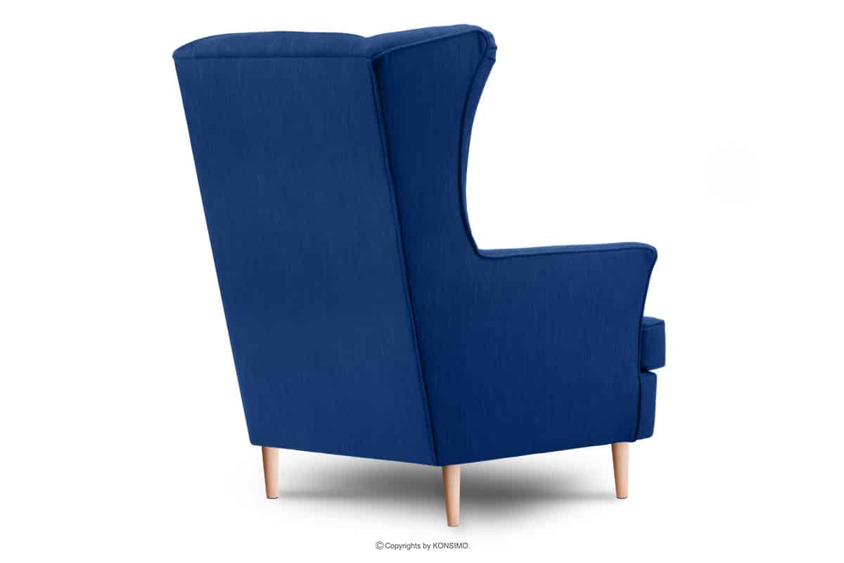 Der skandinavische marineblaue Sessel auf Beinen wird eine besondere Atmosphäre im Wohnzimmer oder Schlafzimmer schaffen. Die außergewöhnliche Farbe, weiche Linien und Elemente aus massivem Holz präsentieren sich perfekt zusammen. Er passt zu klassischen Arrangements sowie skandinavischen Stilen. Er wird sich hervorragend als Mittelpunkt des Wohnzimmers in einer auffälligen Farbe eignen. Darüber hinaus garantieren die mittelharte Sitzfläche und die optimal geformte, weiche Rückenlehne und Seiten entspannende und perfekte Erholung jeden Tag.