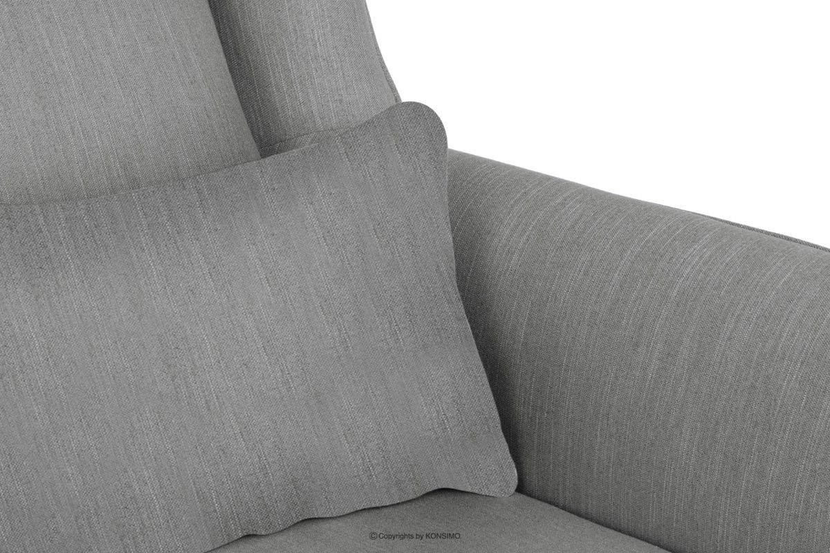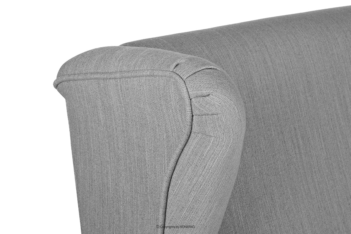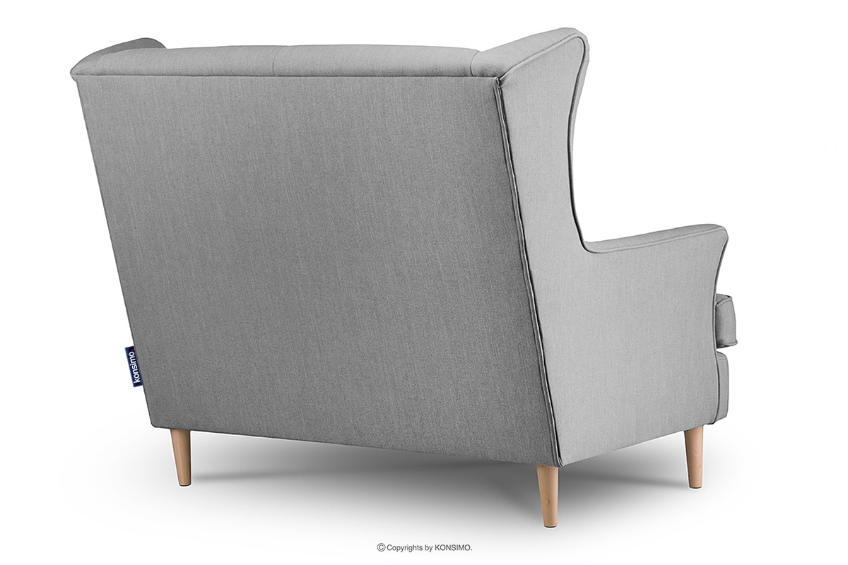 Besonders bequemes, solides zweisitziges Sofa mit grauen Kissen aus der Kollektion klassischer Möbel STRALIS eignet sich sowohl für den Einsatz in privaten Innenräumen als auch in Hotels oder Restaurants. Der Nutzungskomfort wird durch den angenehm berührenden, hochwertigen Bezug aus strapazierfähigem Flechtstoff erhöht. Die stabile Konstruktion wird von soliden Beinen aus massivem Holz unterstützt.