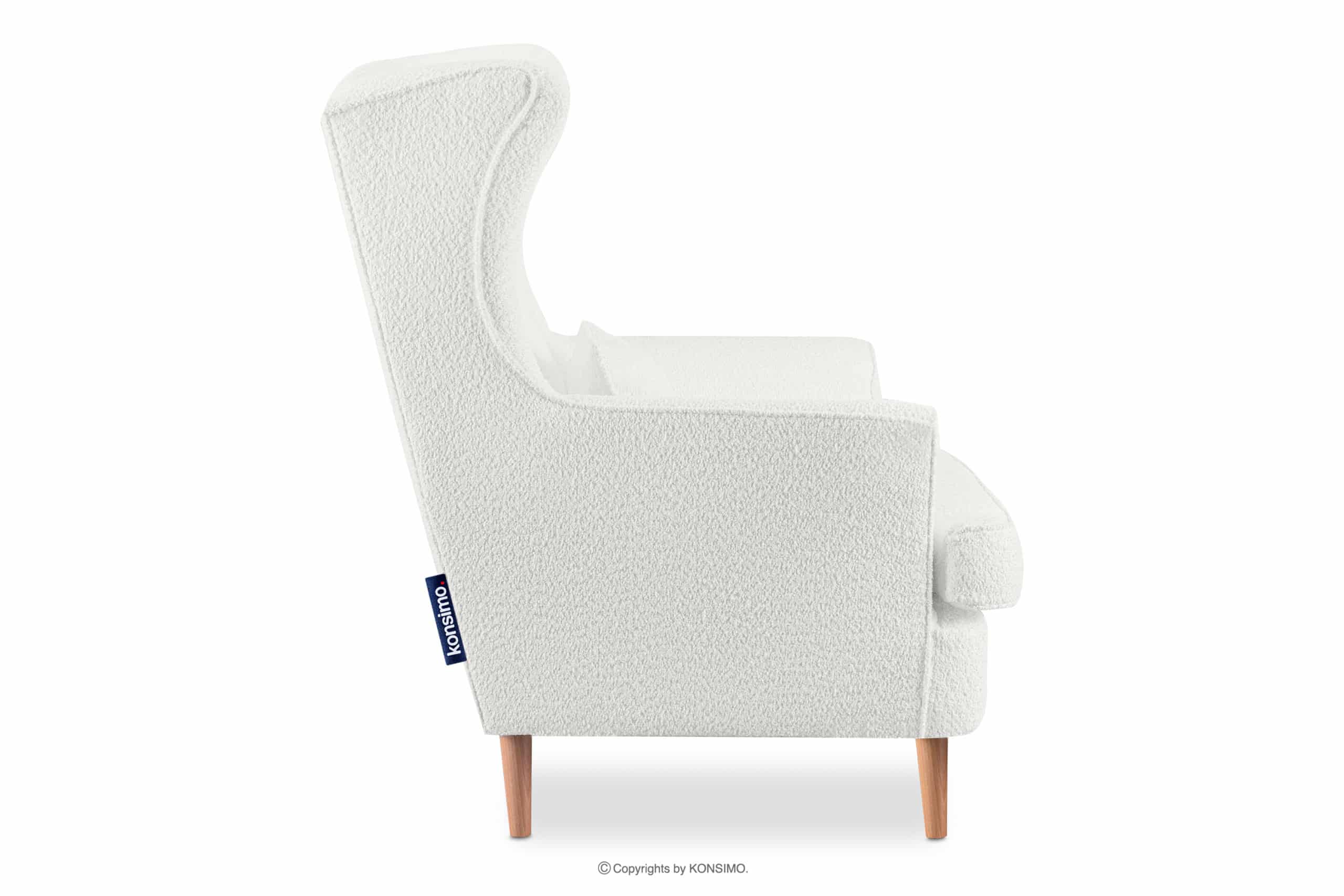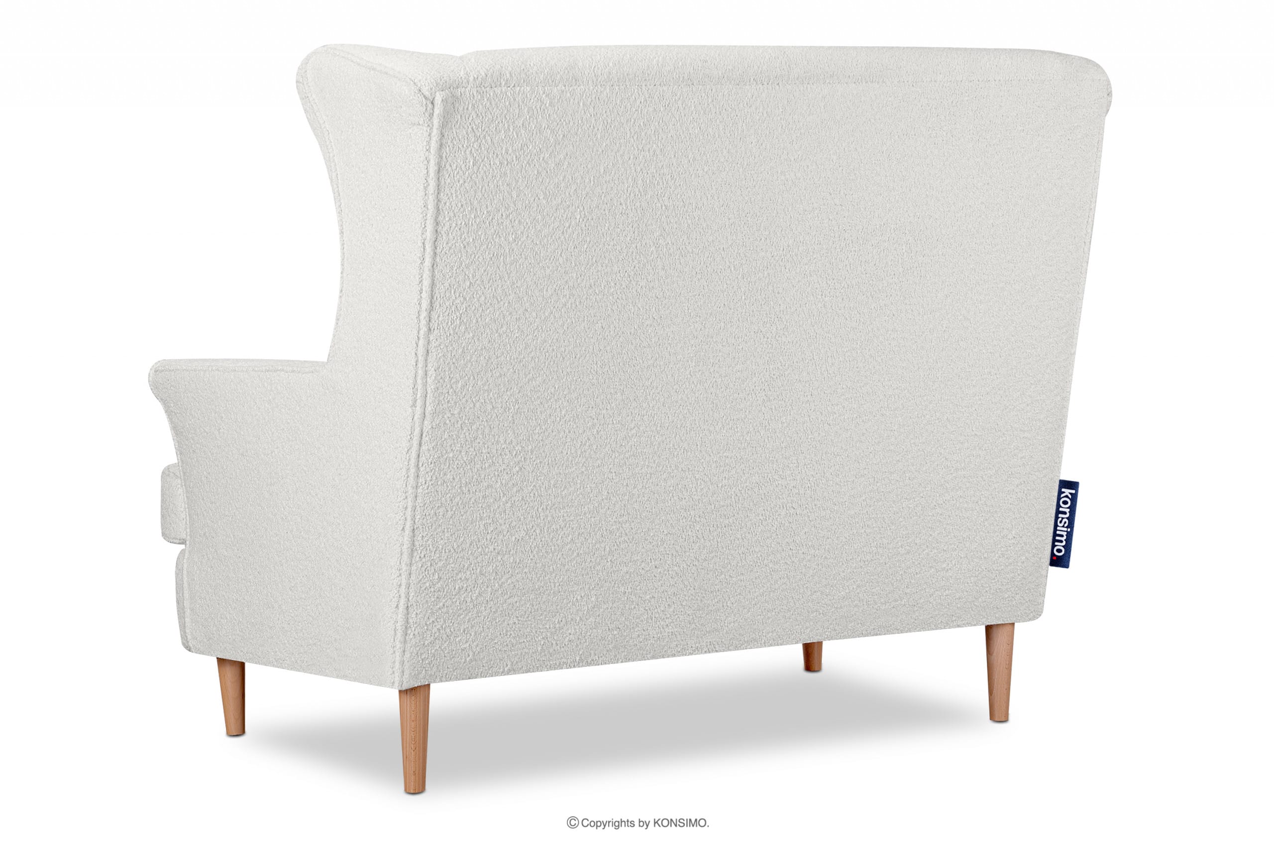Die außergewöhnlich bequeme und solide skandinavische zweisitzige Sofain Weiß Boucle aus der Kollektion der klassischen Möbel STRALIS eignet sich sowohl für Wohnräume als auch für Hotels und Restaurants. Der Nutzungskomfort wird durch den angenehmen Griff des hochwertigen Geflechtstoffbezugs erhöht. Die stabile Konstruktion wird von soliden Beinen aus Massivholz unterstützt. Die mittelharte Sitzfläche und die optimal geformte, weiche Rückenlehne und Seiten garantieren Entspannung und perfekte Erholung jeden Tag.