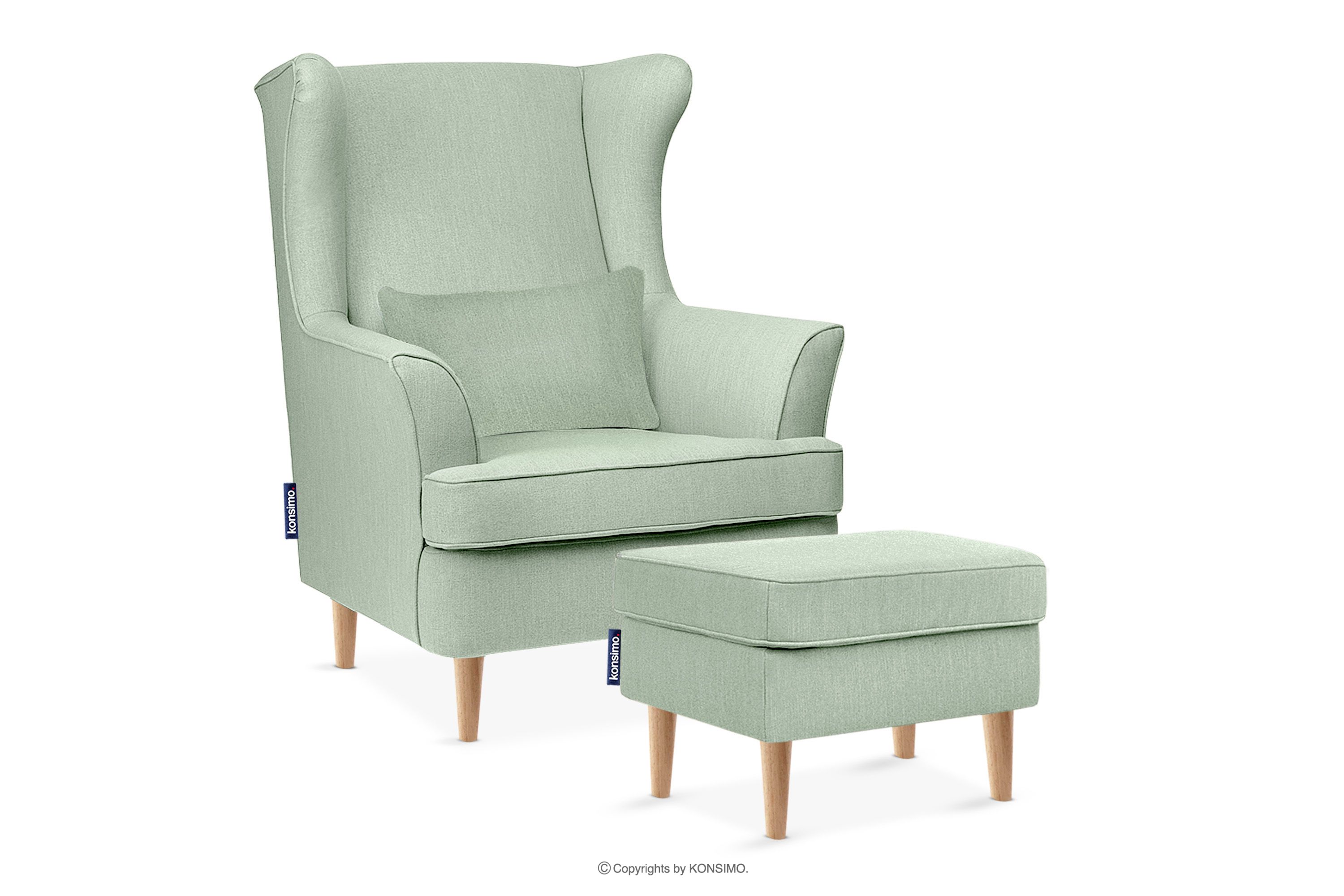 Sessel & Pouf auf Holzbeinen in minzgrün STRALIS - Farbe mint