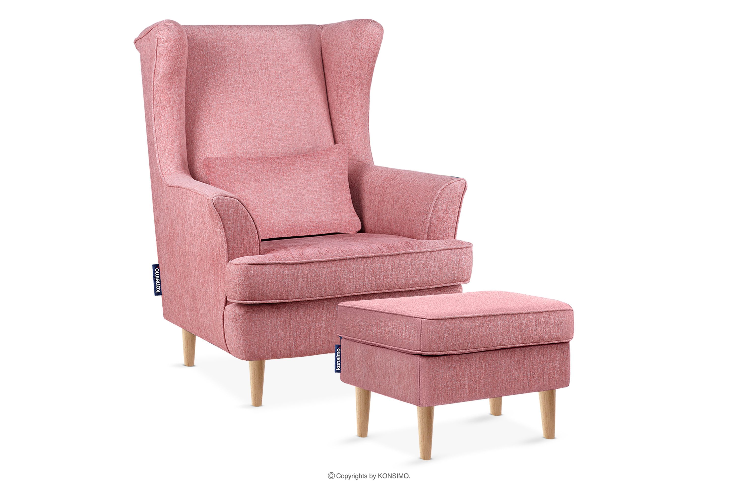 für das Produkt Sessel & Pouf auf Holzbeinen in korallenrot