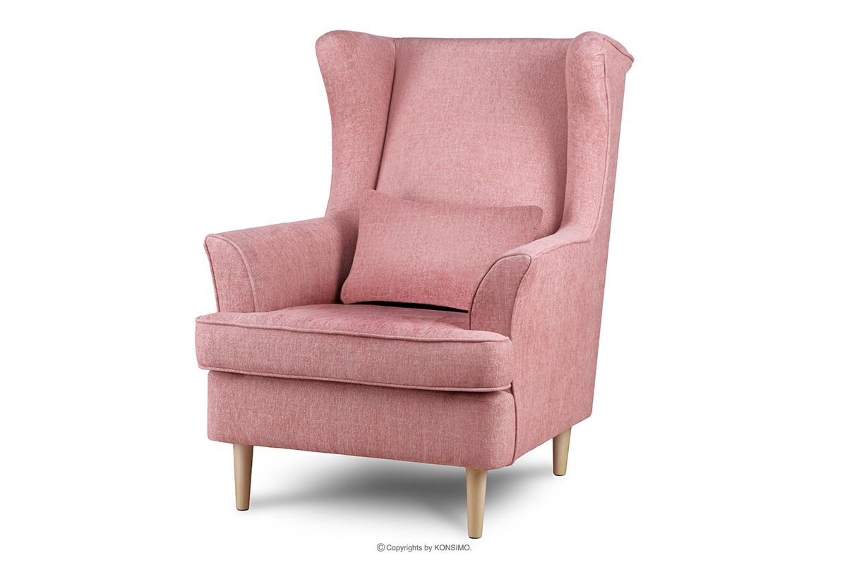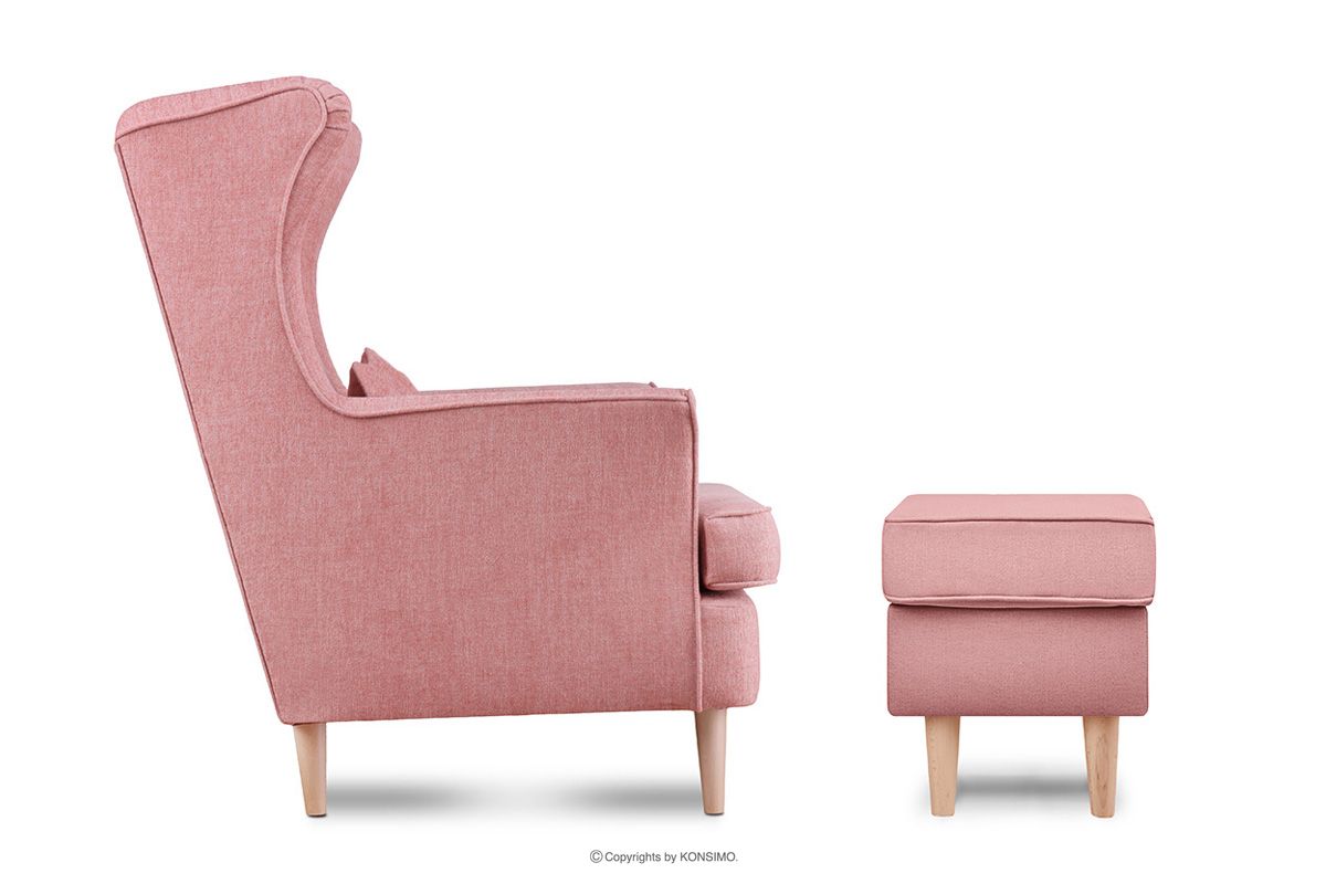Der Sessel und der Sitzhocker auf Holzbeinen in Koralle bringen eine ungewöhnliche Atmosphäre in das Wohn- oder Schlafzimmer. Die einzigartige Farbe, die weichen Linien und die Massivholzelemente passen hervorragend zueinander. Er passt in klassische und skandinavische Einrichtungen. Er eignet sich hervorragend als Mittelpunkt des Wohnzimmers in einer auffälligen Farbe. Außerdem sind sein mittelfester Sitz und die optimal geformte, weiche Rückenlehne und Seiten eine Garantie für Entspannung und perfekte Erholung an jedem Tag.