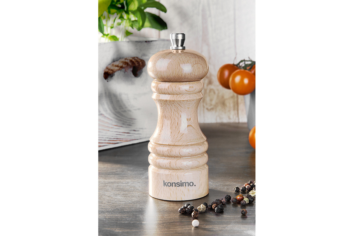 Die MILOS-Mühlen werden vollständig in Polen hergestellt. Der Metallmechanismus ist aus rostfreiem Stahl gefertigt und kann uns über viele Jahre hinweg dienen. Buchenholz eignet sich perfekt zur Aufbewahrung von Gewürzen, bewahrt ihr Aroma und besitzt natürliche antibakterielle Eigenschaften. Darüber hinaus ist das Holz hart, was die Mühlen sehr solide macht. Die Mühle behält ihre Farbe während ihrer gesamten Lebensdauer bei, da das Holz mit Polyurethanlack beschichtet ist, was der Oberfläche Glanz verleiht und gleichzeitig vor Kratzern und chemischen Substanzen schützt.