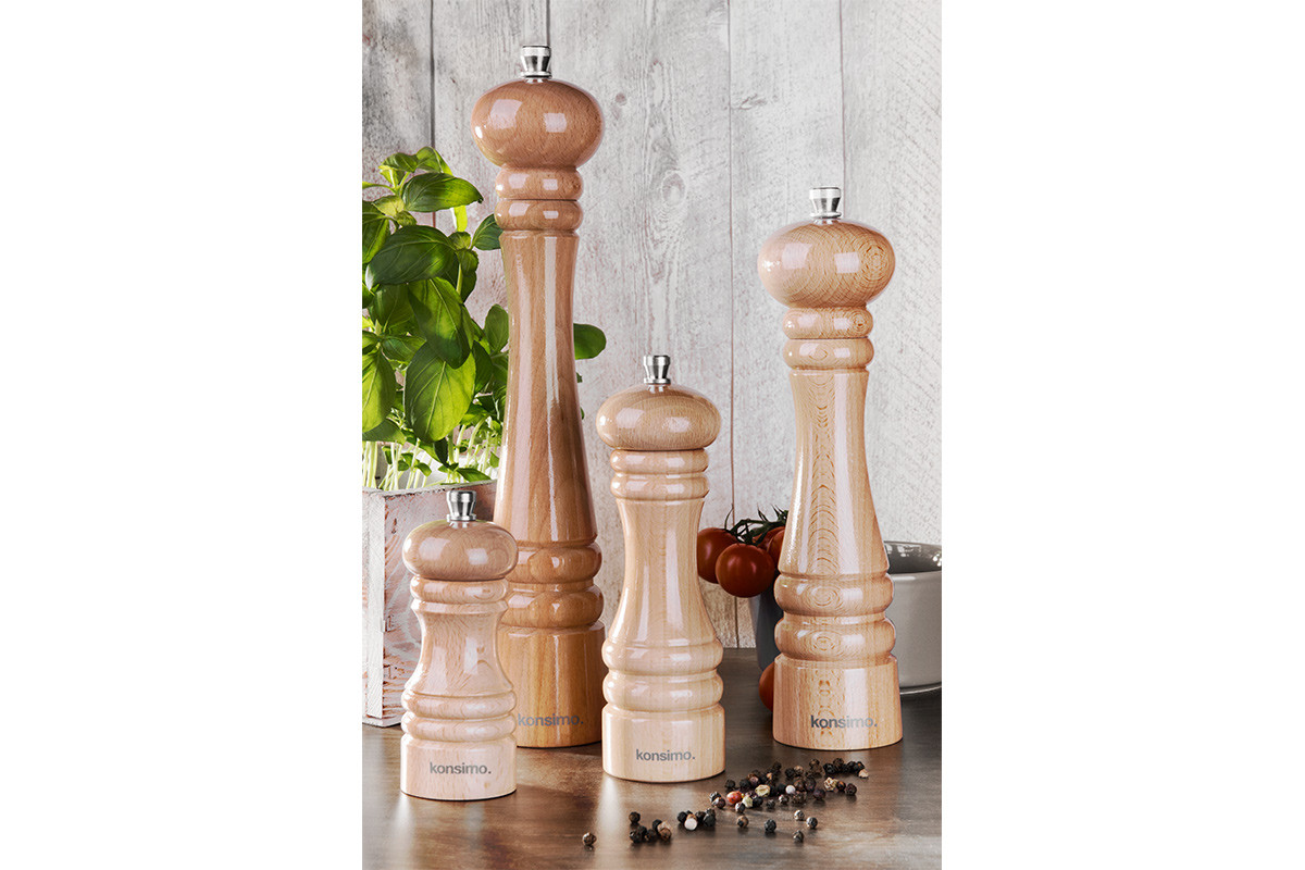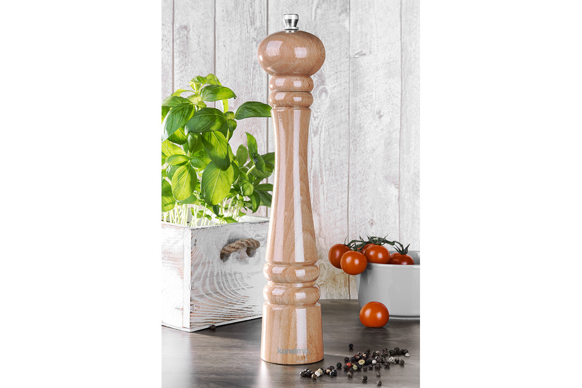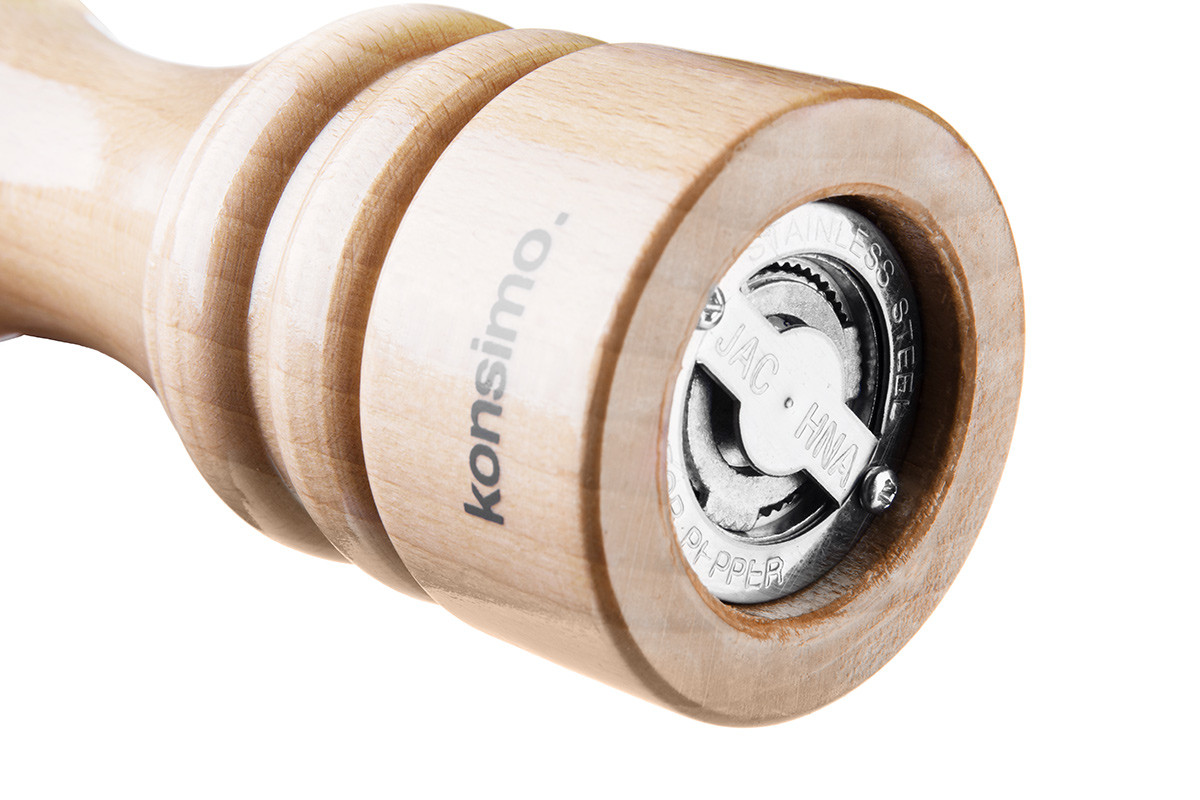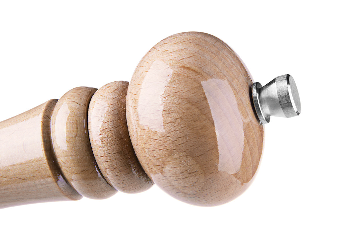 Die MILOS-Mühlen werden vollständig in Polen hergestellt. Der Metallmechanismus ist aus rostfreiem Stahl gefertigt und kann uns über viele Jahre hinweg dienen. Buchenholz eignet sich perfekt zur Aufbewahrung von Gewürzen, bewahrt ihr Aroma und besitzt natürliche antibakterielle Eigenschaften. Darüber hinaus ist das Holz hart, was die Mühlen sehr solide macht. Die Mühle behält ihre Farbe während ihrer gesamten Lebensdauer bei, da das Holz mit Polyurethanlack beschichtet ist, was der Oberfläche Glanz verleiht und gleichzeitig vor Kratzern und chemischen Substanzen schützt.