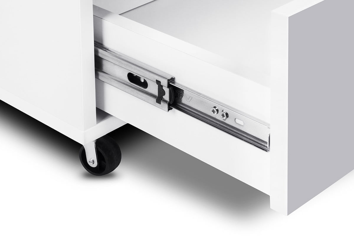 Dank der zwei bequemen Regale hat das Kind alle benötigten Accessoires in Reichweite. Die Möbel für Kinder aus der MIRUM-Kollektion sind aus robusten, dicken Platten gefertigt - der pastellfarbene Rollcontainer kann sogar betreten werden und wird sicher nicht beschädigt. Dies ist alles dank patentierten Plattenverbindungen, italienischen Scharnieren und speziellen Beschlägen. Die weichen Beine sorgen für eine ausgezeichnete Stabilität. Der Rollcontainer für das Kinderzimmer gehört zu der Kollektion sicherer Möbel für Kinder, die für Spiel, Lernen und Erholung entwickelt wurden. Sie eignen sich hervorragend als Möbel für Vorschulkinder und jüngere Schüler.