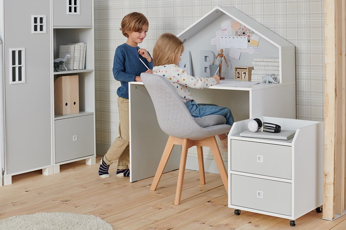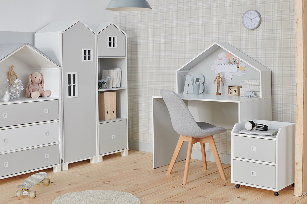 Der bequeme und solide Rollcontainer MIRUM passt perfekt in die märchenhafte Häusergasse. Er passt unter den Schreibtisch mit einem Dach und eignet sich perfekt als Nachttisch oder einfach als kleine Kommode - der Rollcontainer aus der Kollektion magischer Hausmöbel in pastellfarben bietet Platz für Hefte, Bücher, Stifte und alle anderen Schätze eines kleinen Träumers.
