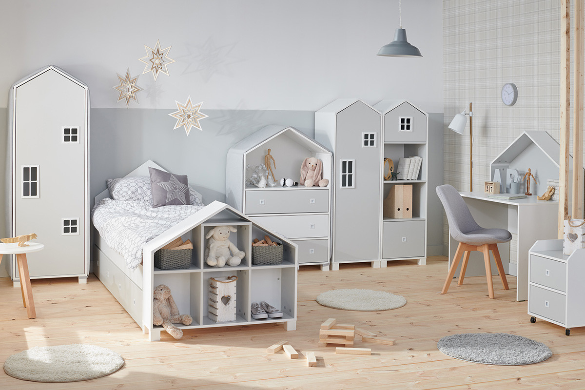 MIRUM Mehr aus der Kollektion Bett "Haus" Grau- Farbe weiß/grau