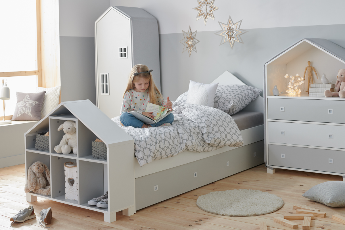 MIRUM Mehr aus der Kollektion Bücherregal mit Schubladen Jungen Häuschen grau- Farbe weiß/grau