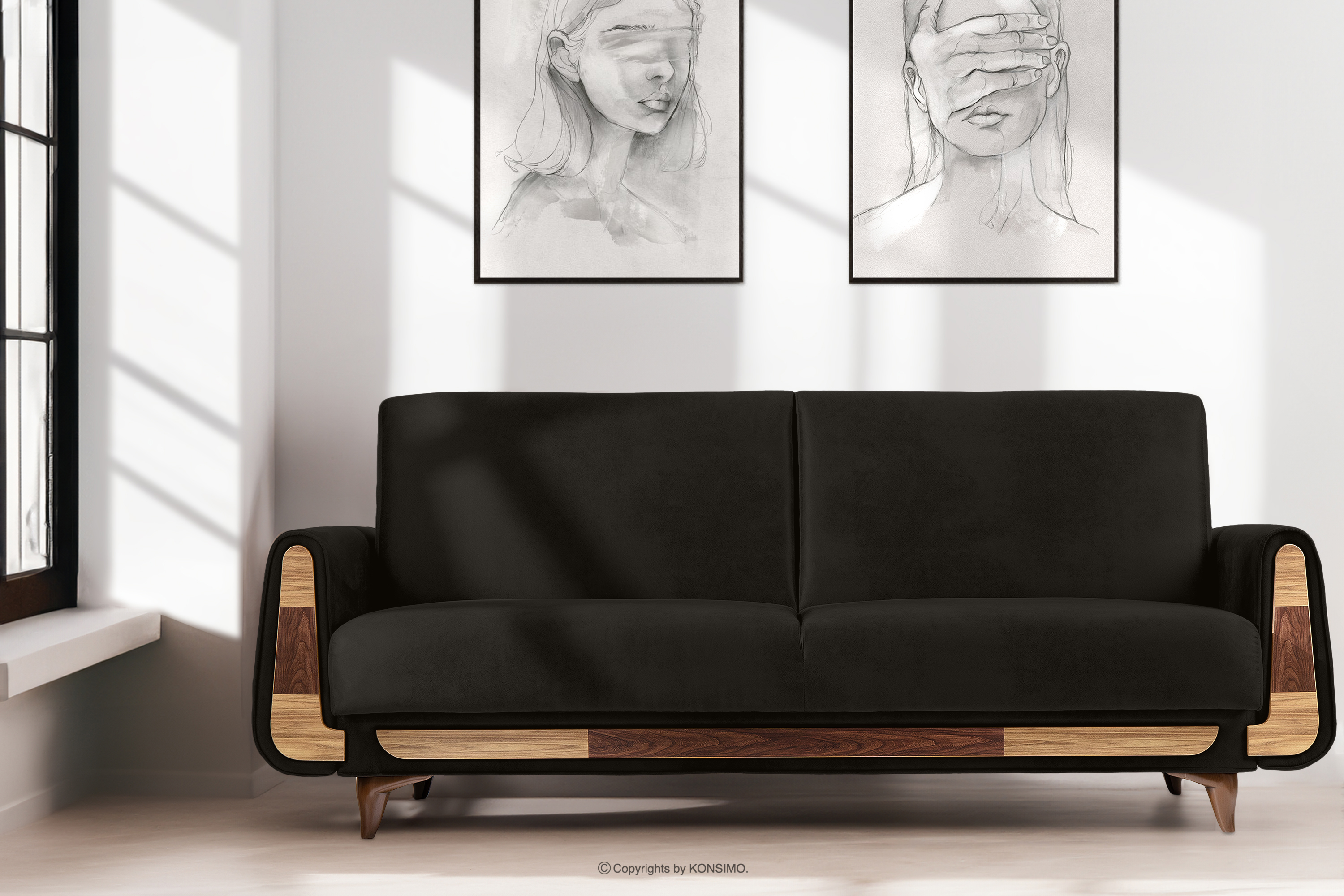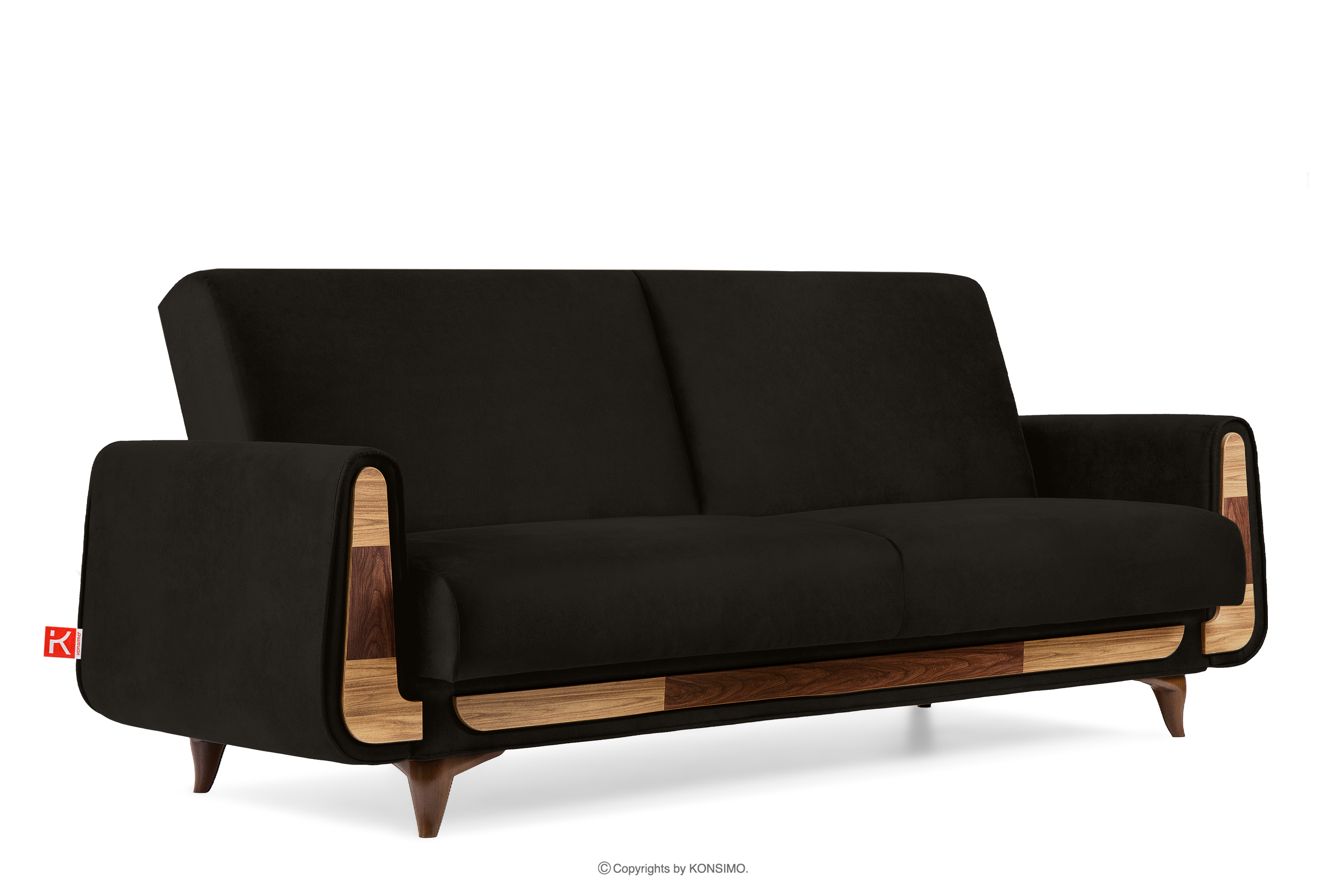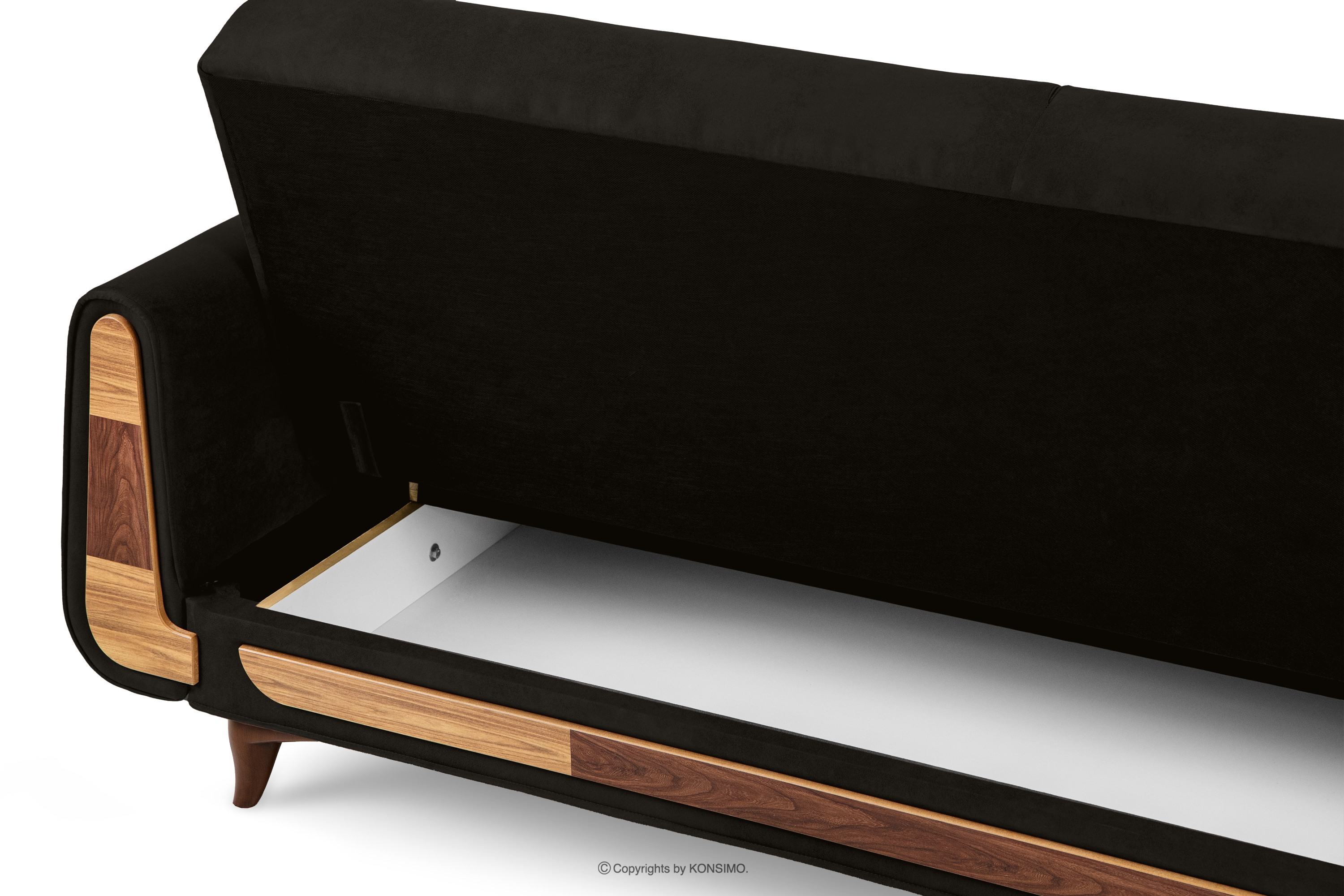 Das dreisitzige ausziehbare Sofa in Wildlederimitat anthrazit ist ein Möbelstück im Vintage-Stil. Es wurde für höchste Ansprüche gefertigt. Es findet auch in eleganten und loftartigen Räumen seinen perfekten Platz. Der Stoff, mit dem das Sofa gepolstert ist, fühlt sich sehr angenehm an und ist leicht zu reinigen. Ein weiterer großer Vorteil ist die Schlaffunktion und ein Behälter für die Aufbewahrung von Bettzeug, was die Ordnung erheblich erleichtert.