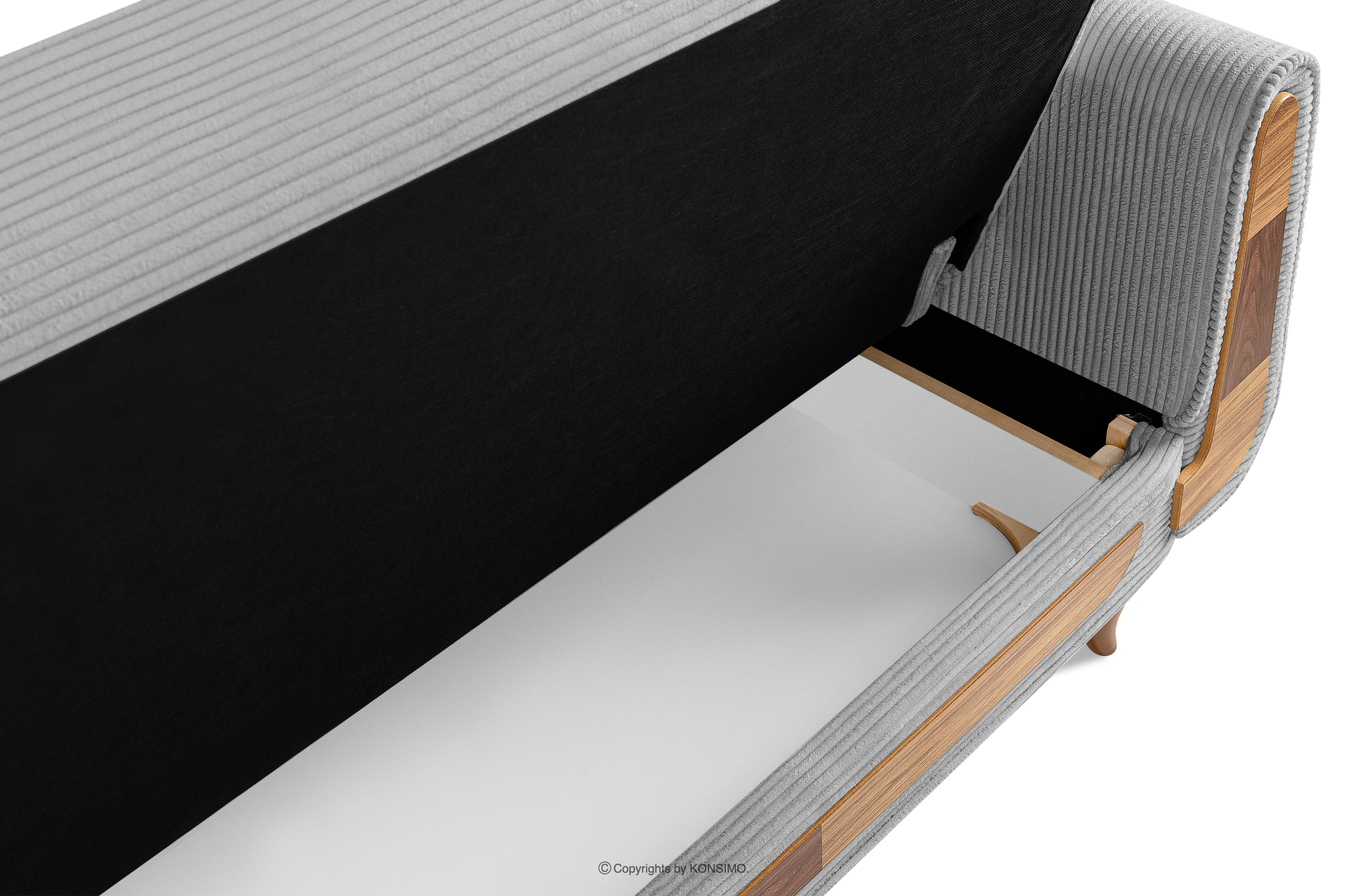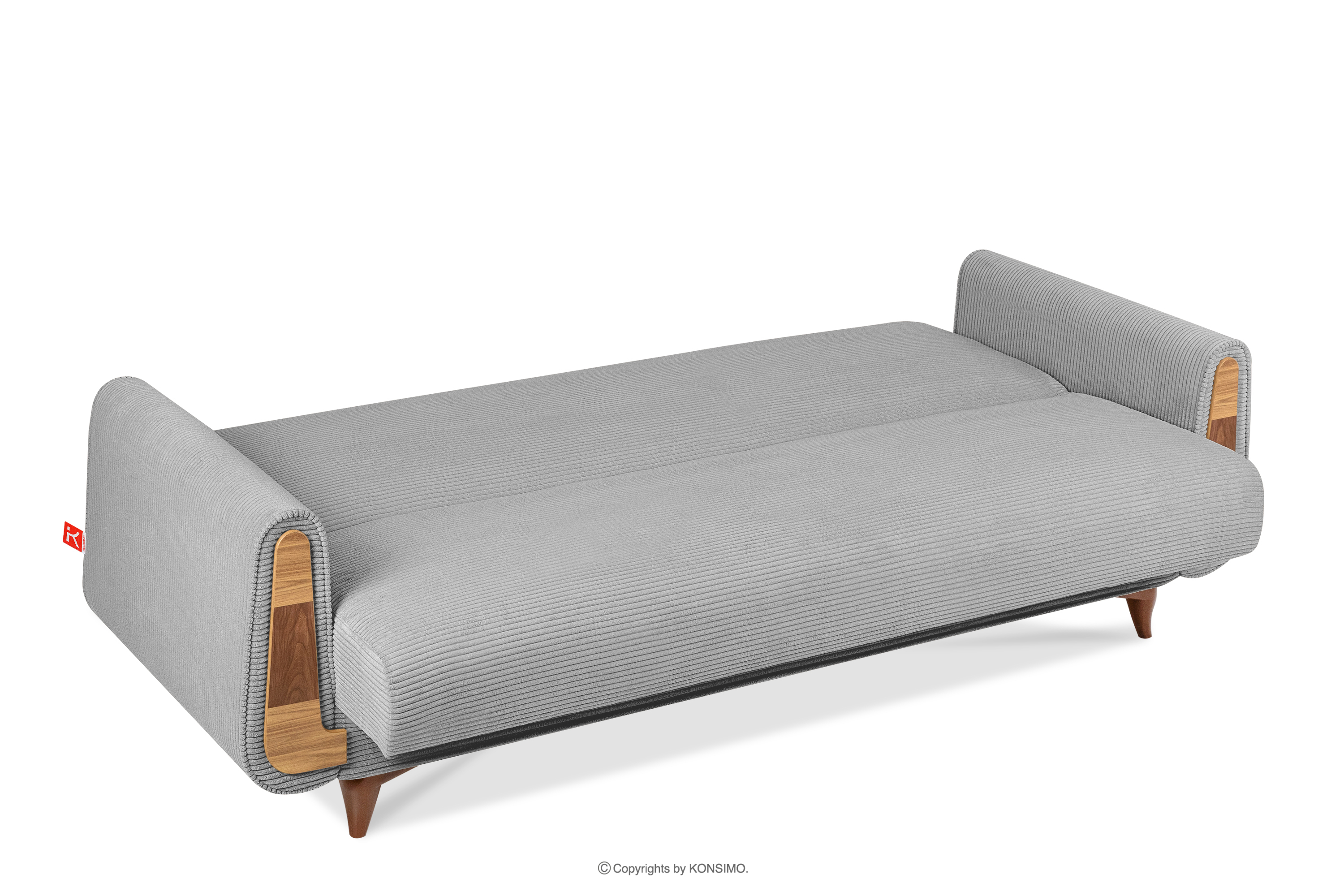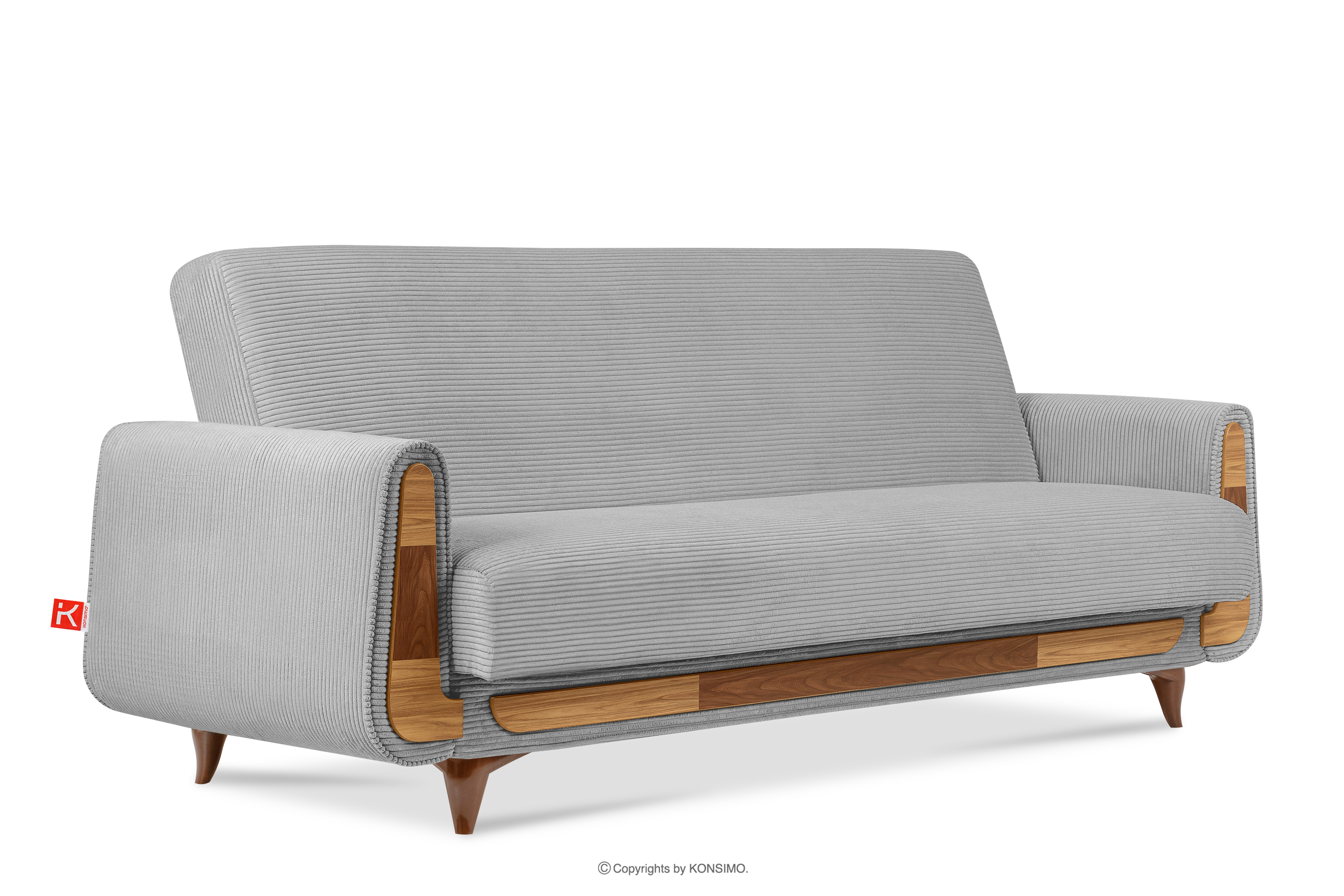 Das dreisitzige ausziehbare Sofa aus Kordstoff in Hellgrau ist ein Möbelstück im Vintage-Stil. Es wurde für höchste Ansprüche gefertigt. Es findet auch in eleganten und loftartigen Räumen seinen perfekten Platz. Der Stoff, mit dem das Sofa gepolstert ist, fühlt sich sehr angenehm an und ist leicht zu reinigen. Ein weiterer großer Vorteil ist die Schlaffunktion und ein Behälter für die Aufbewahrung von Bettzeug, was die Ordnung definitiv erleichtert.