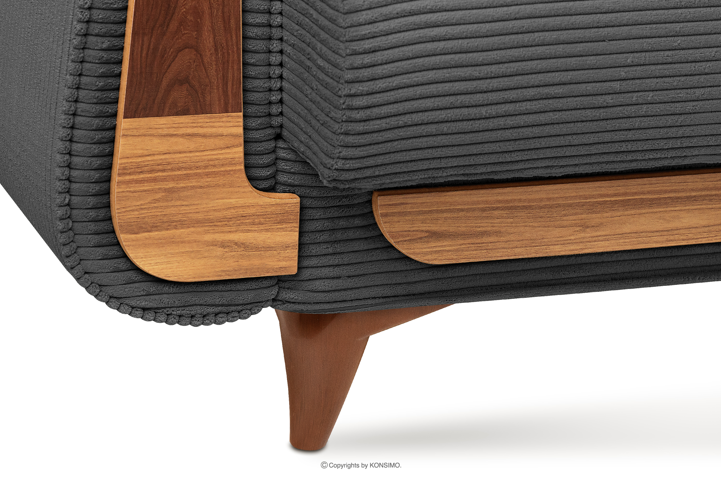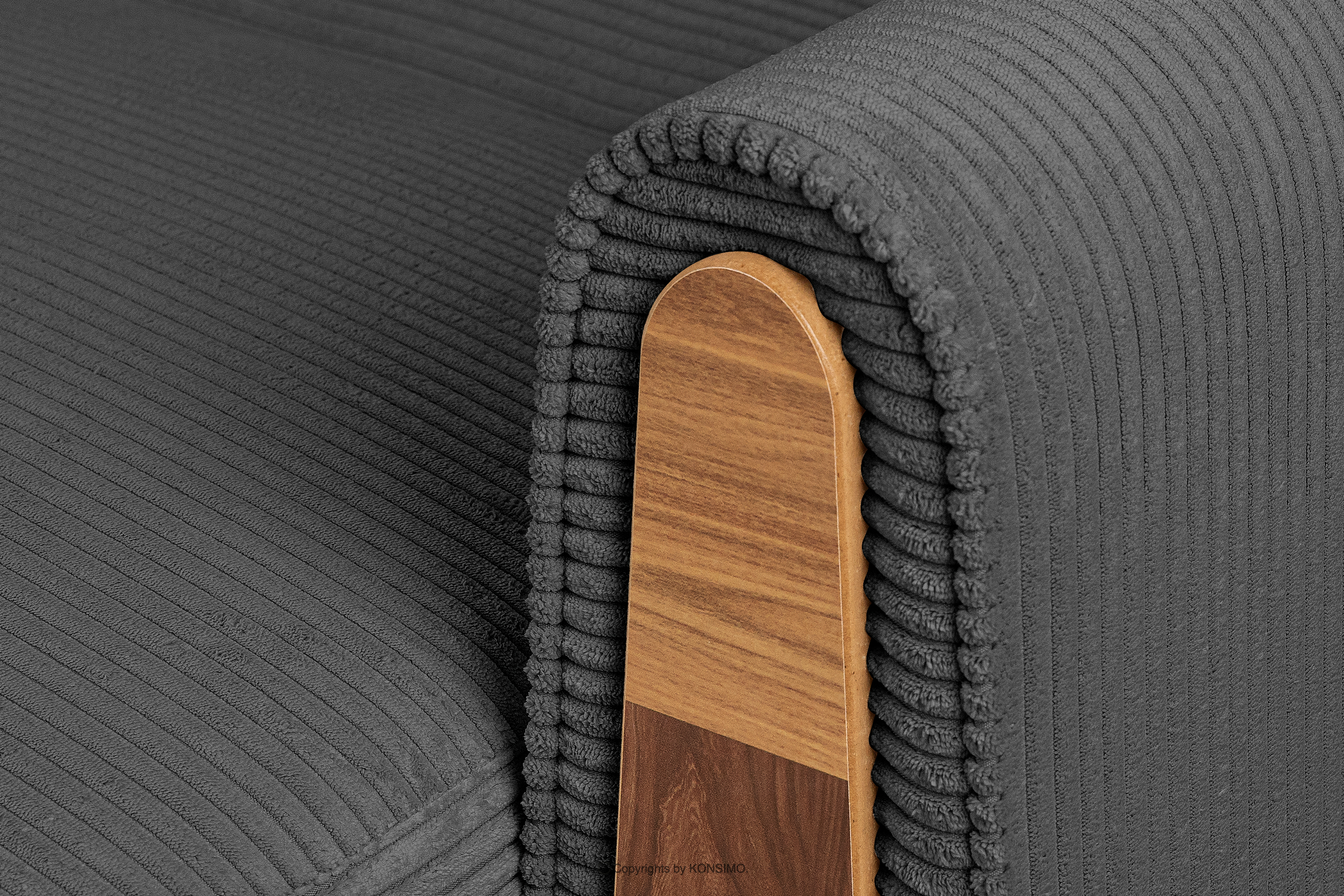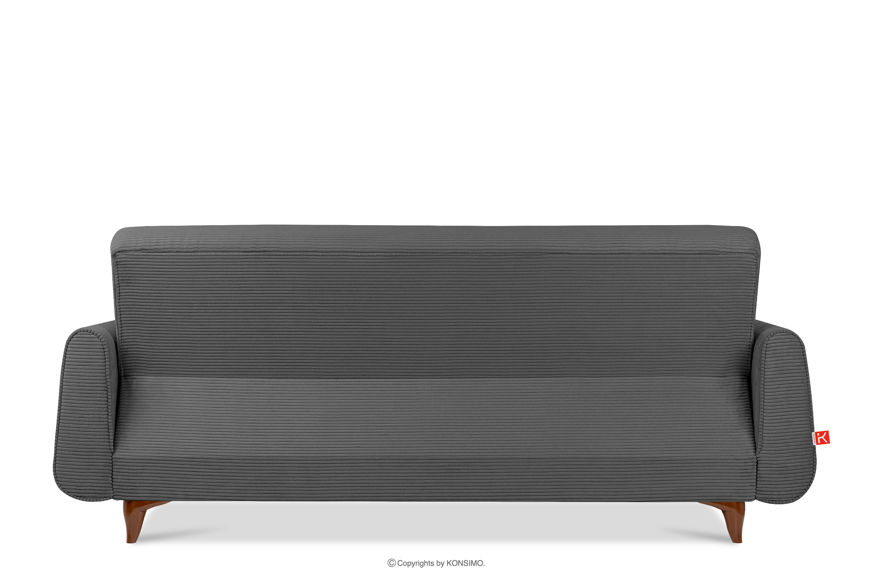 Das dreisitzige ausziehbare Sofa aus Kordstoff in Dunkelgrau ist ein Möbelstück im Vintage-Stil. Es wurde für höchste Ansprüche gefertigt. Es findet auch in eleganten und loftartigen Räumen seinen perfekten Platz. Der Stoff, mit dem das Sofa gepolstert ist, fühlt sich sehr angenehm an und ist leicht zu reinigen. Ein weiterer großer Vorteil ist die Schlaffunktion und ein Behälter für die Aufbewahrung von Bettzeug, was die Ordnung definitiv erleichtert.