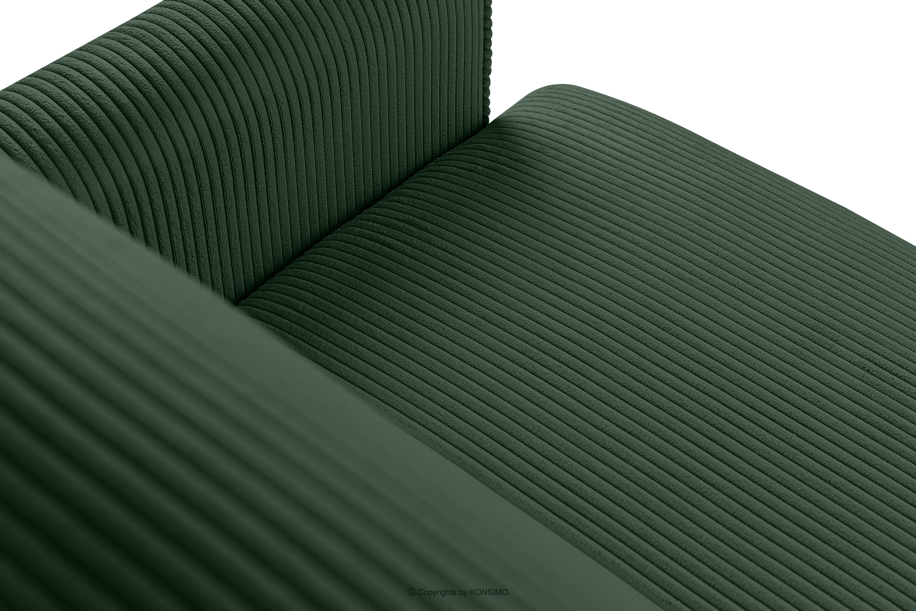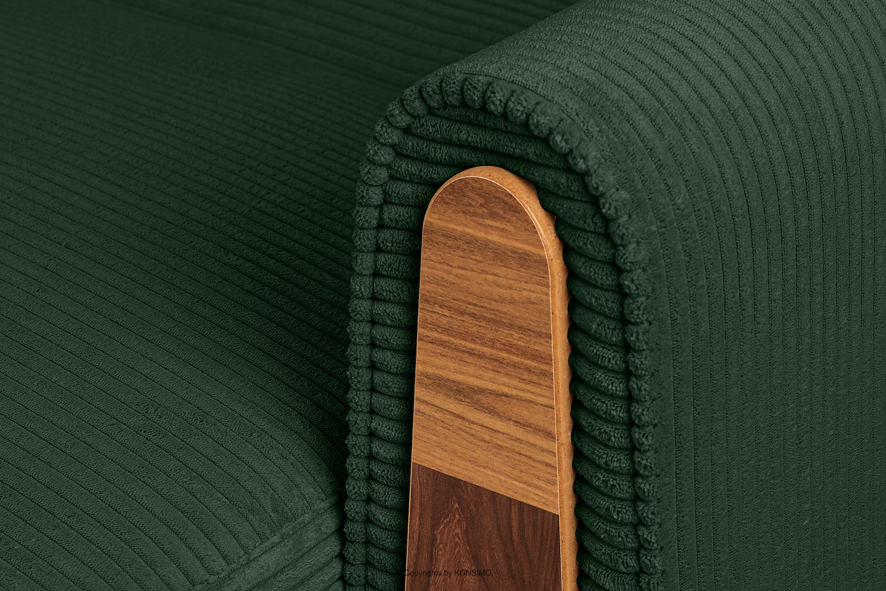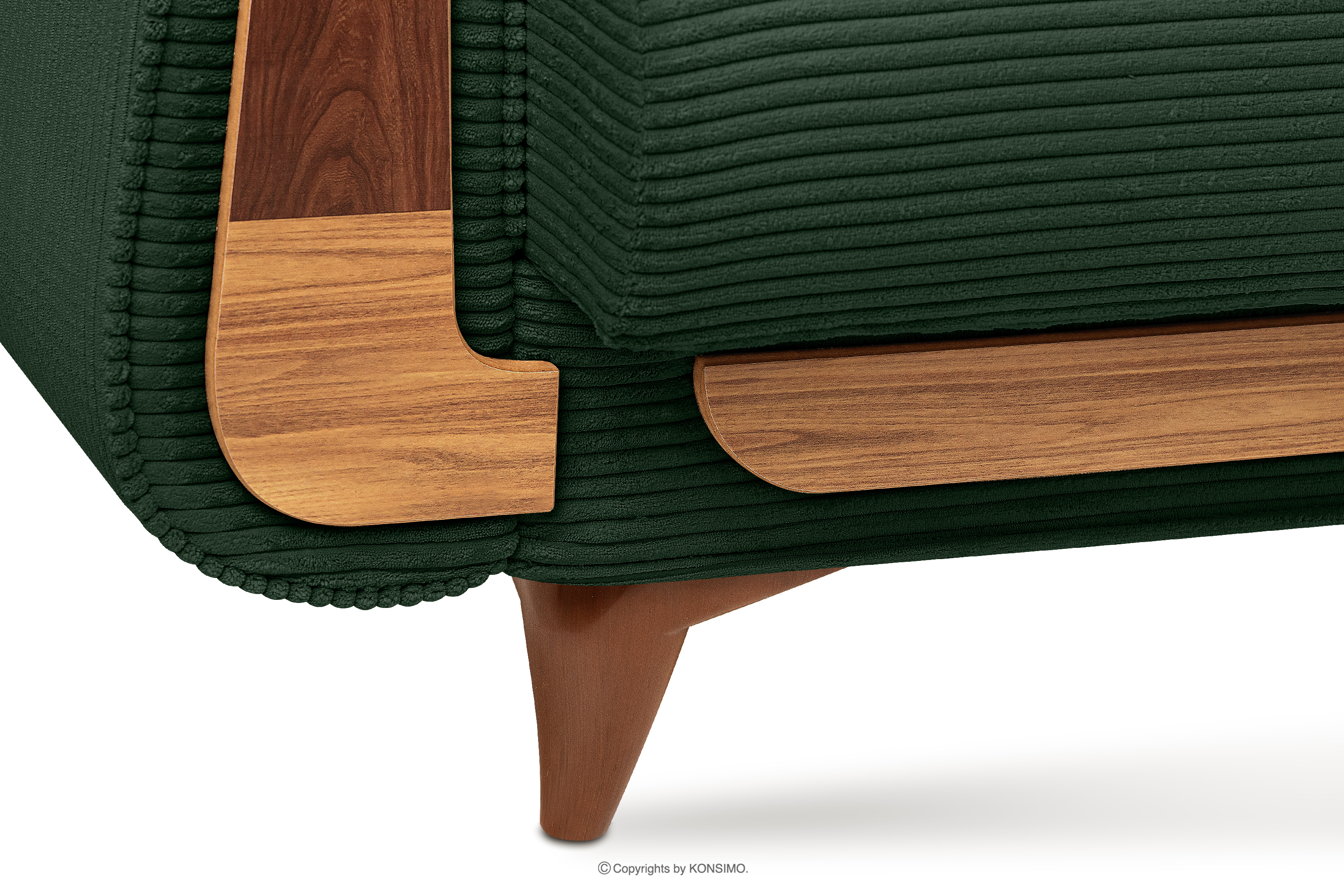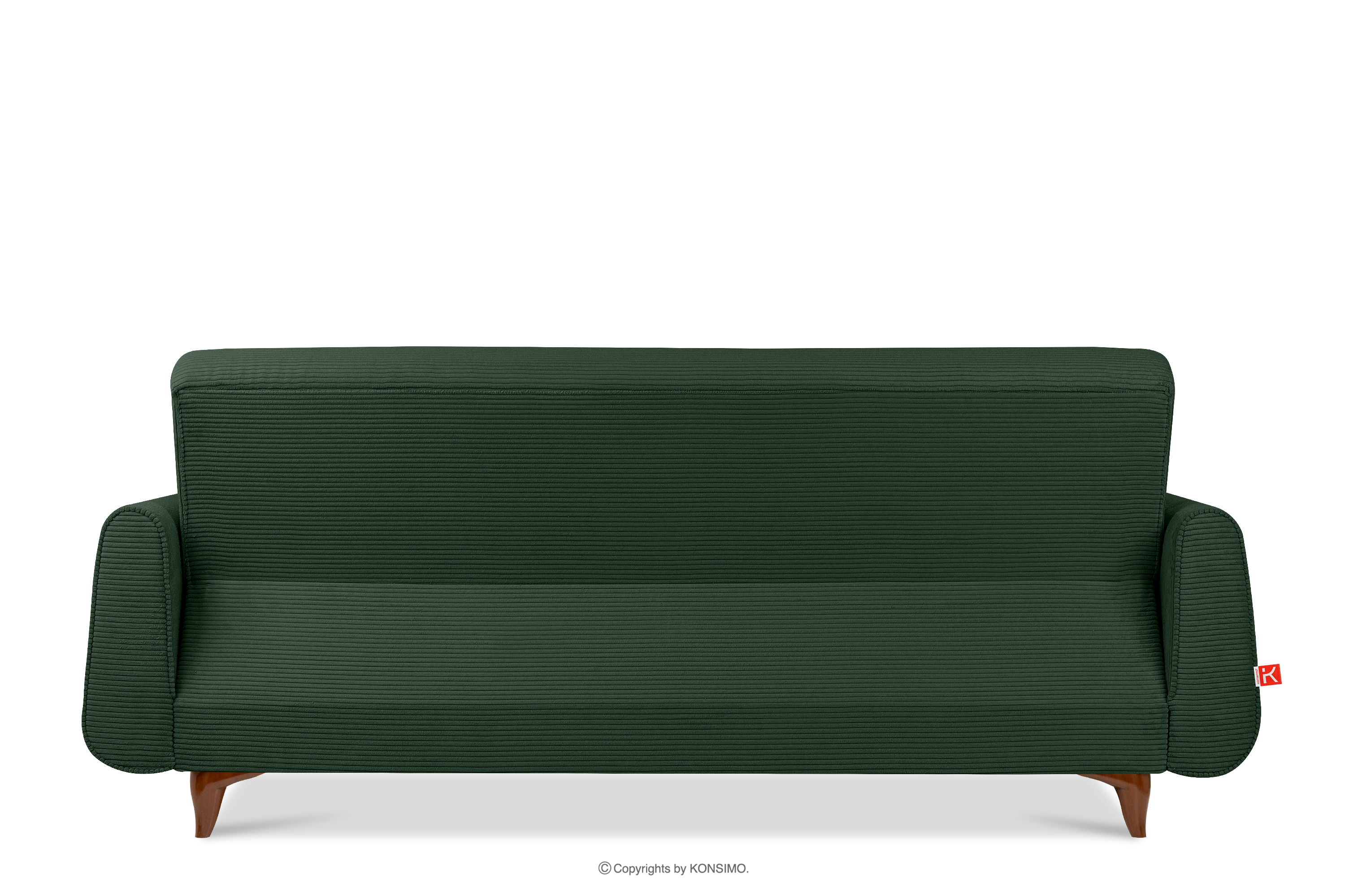 Das dreisitzige ausziehbare Sofa aus dunkelgrünem Kordstoff ist ein Möbelstück im Vintage-Stil. Es wurde für höchste Ansprüche gefertigt. Es findet auch in eleganten und loftartigen Räumen seinen perfekten Platz. Der Stoff, mit dem das Sofa gepolstert ist, fühlt sich sehr angenehm an und ist leicht zu reinigen. Ein weiterer großer Vorteil ist die Schlaffunktion und ein Behälter für die Aufbewahrung von Bettzeug, was die Ordnung definitiv erleichtert.