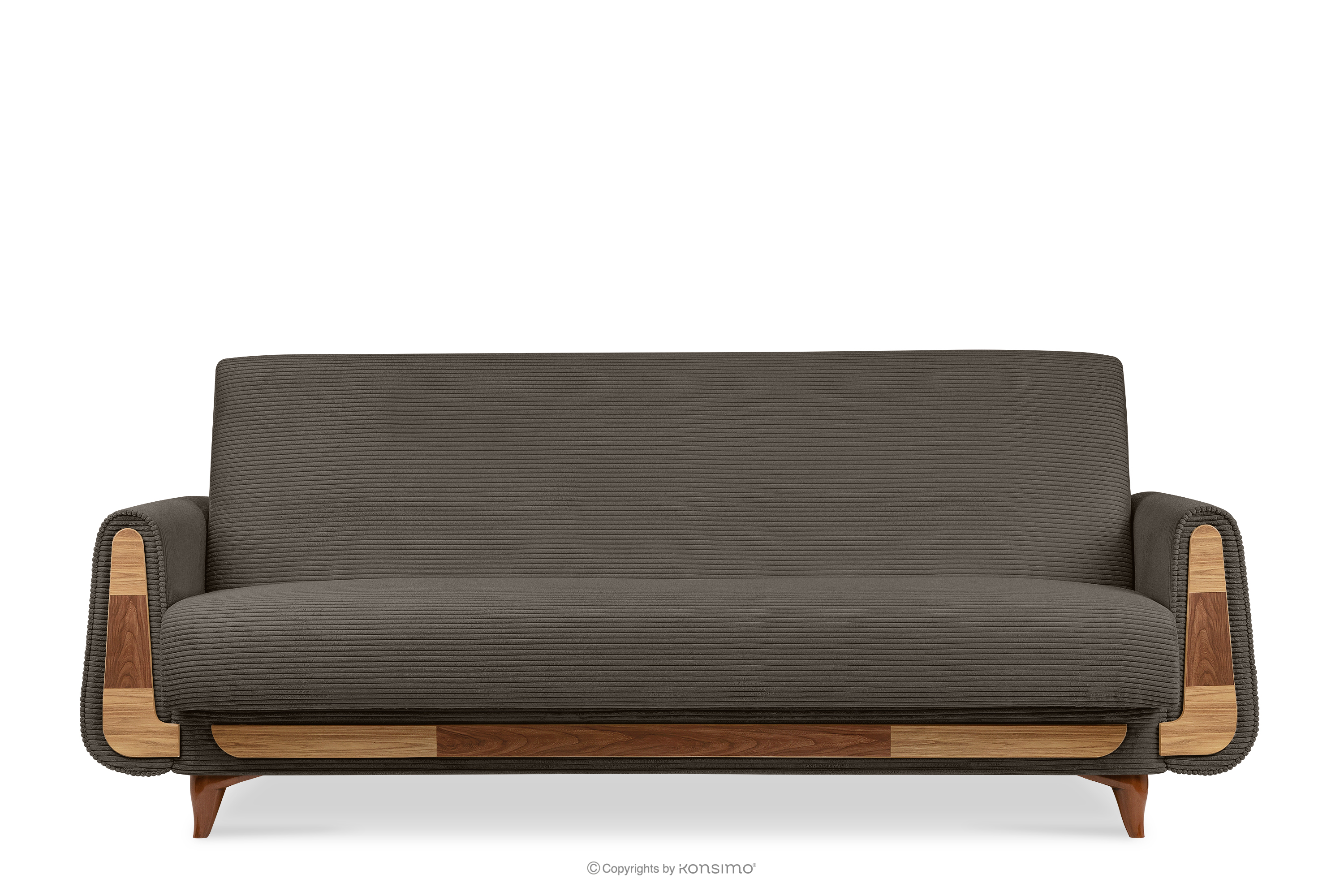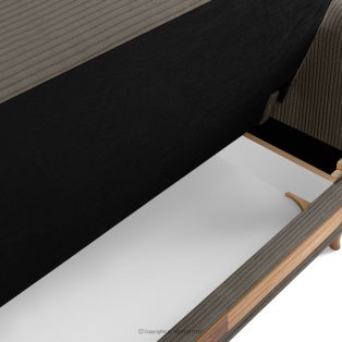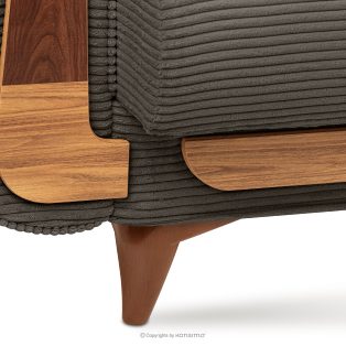 Das dreisitzige ausziehbare Sofa aus graubeige Kordstoff ist ein Möbelstück im Vintage-Stil. Es wurde für höchste Ansprüche gefertigt. Es findet auch in eleganten und loftartigen Räumen seinen perfekten Platz. Der Stoff, mit dem das Sofa gepolstert ist, fühlt sich sehr angenehm an und ist leicht zu reinigen. Ein weiterer großer Vorteil ist die Schlaffunktion und ein Behälter für die Aufbewahrung von Bettzeug, was die Ordnung erheblich erleichtert.