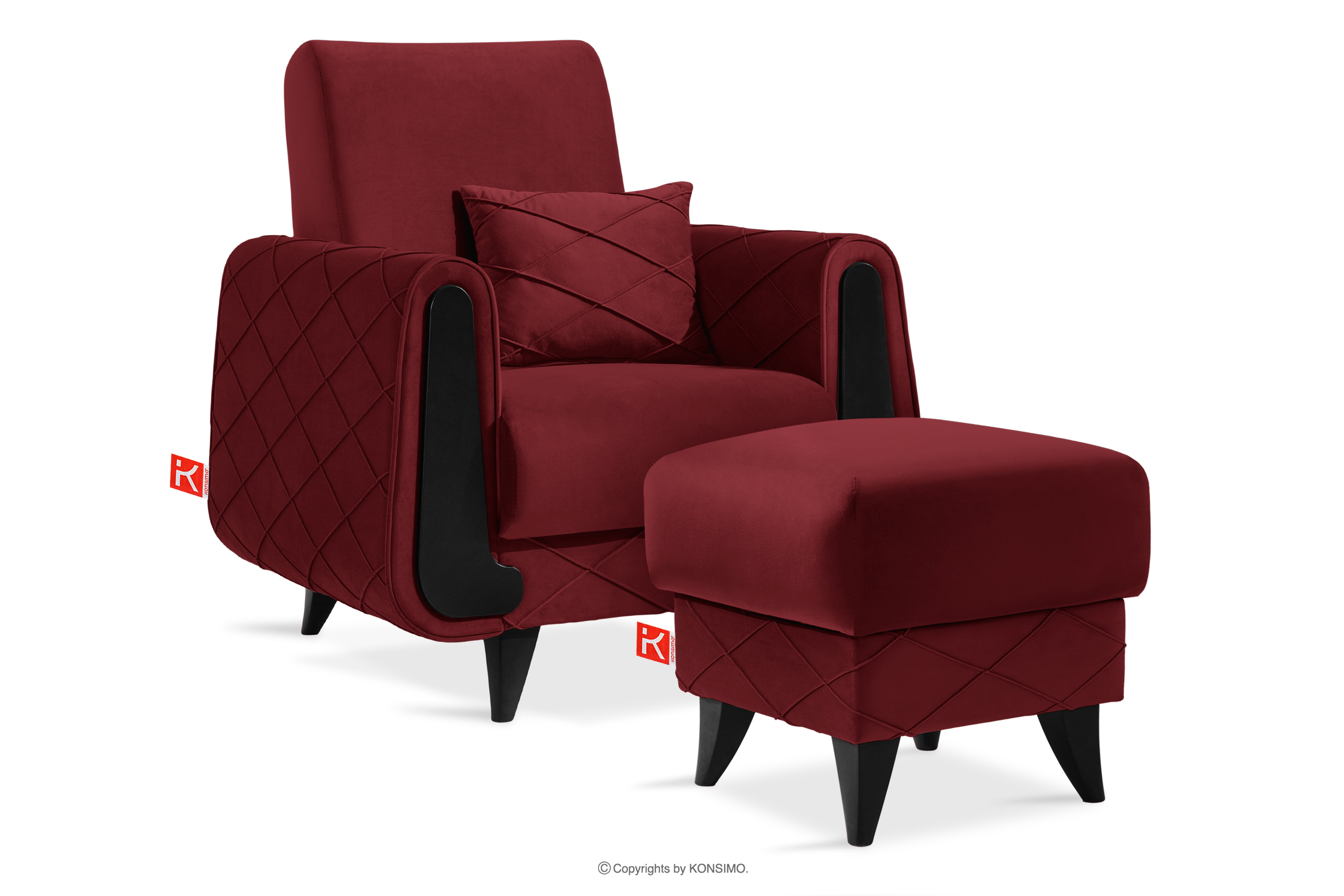 Der Hocker mit Ablagefach aus bordeauxfarbenem Velours ist ein Möbelstück im Vintage-Stil. Er wurde für die höchsten Ansprüche hergestellt. Das Design ist vom Vintage-Stil inspiriert, dank dem er in verschiedenen Arrangements seinen Platz finden wird. Der Sitzhocker ist mit einem Velours-Stoff gepolstert, der sich sehr angenehm anfühlt und leicht zu reinigen ist.