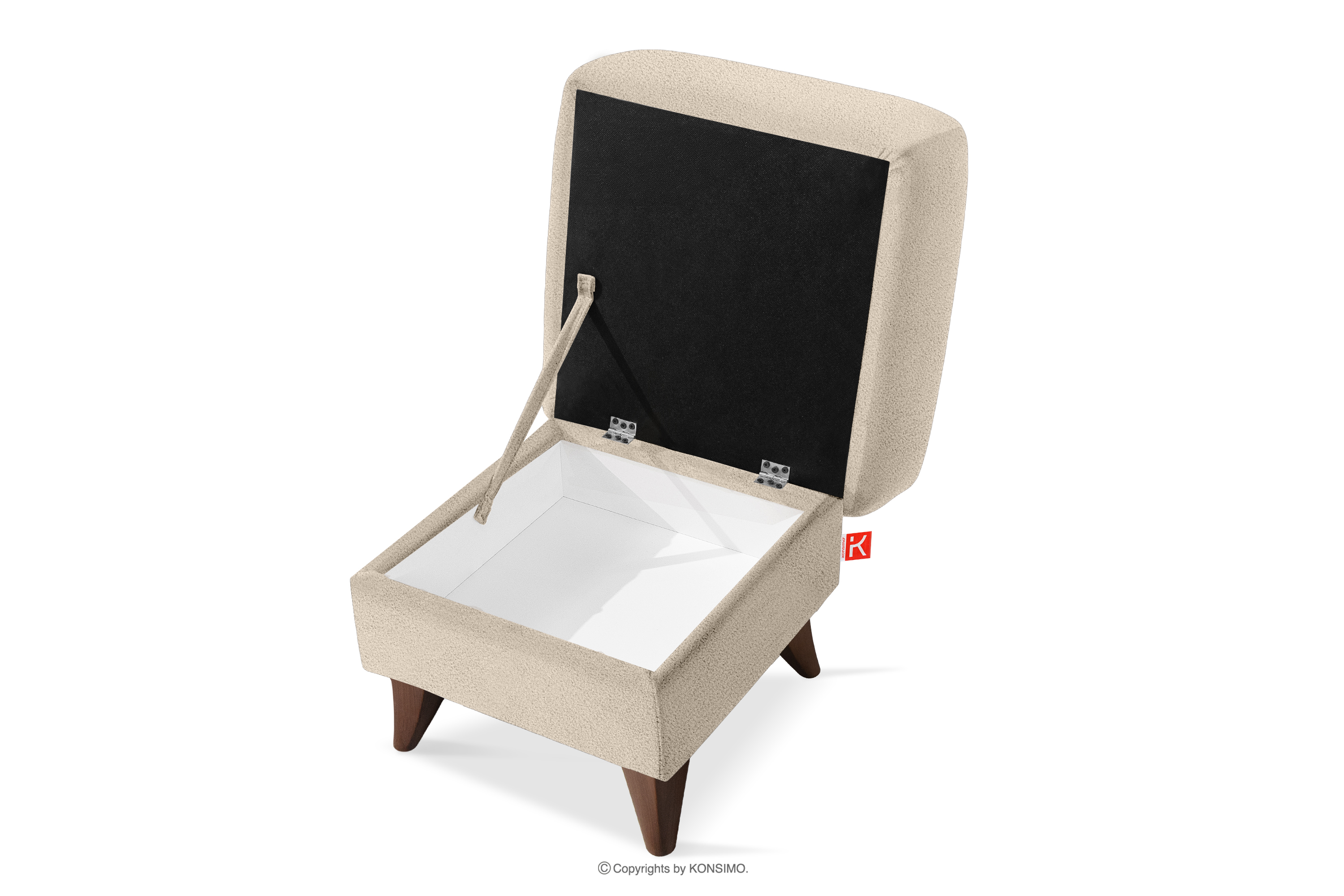 GUSTAVO Fußhocker mit Ablagefach für Wohnzimmer Bouclé-Stoff cremefarben