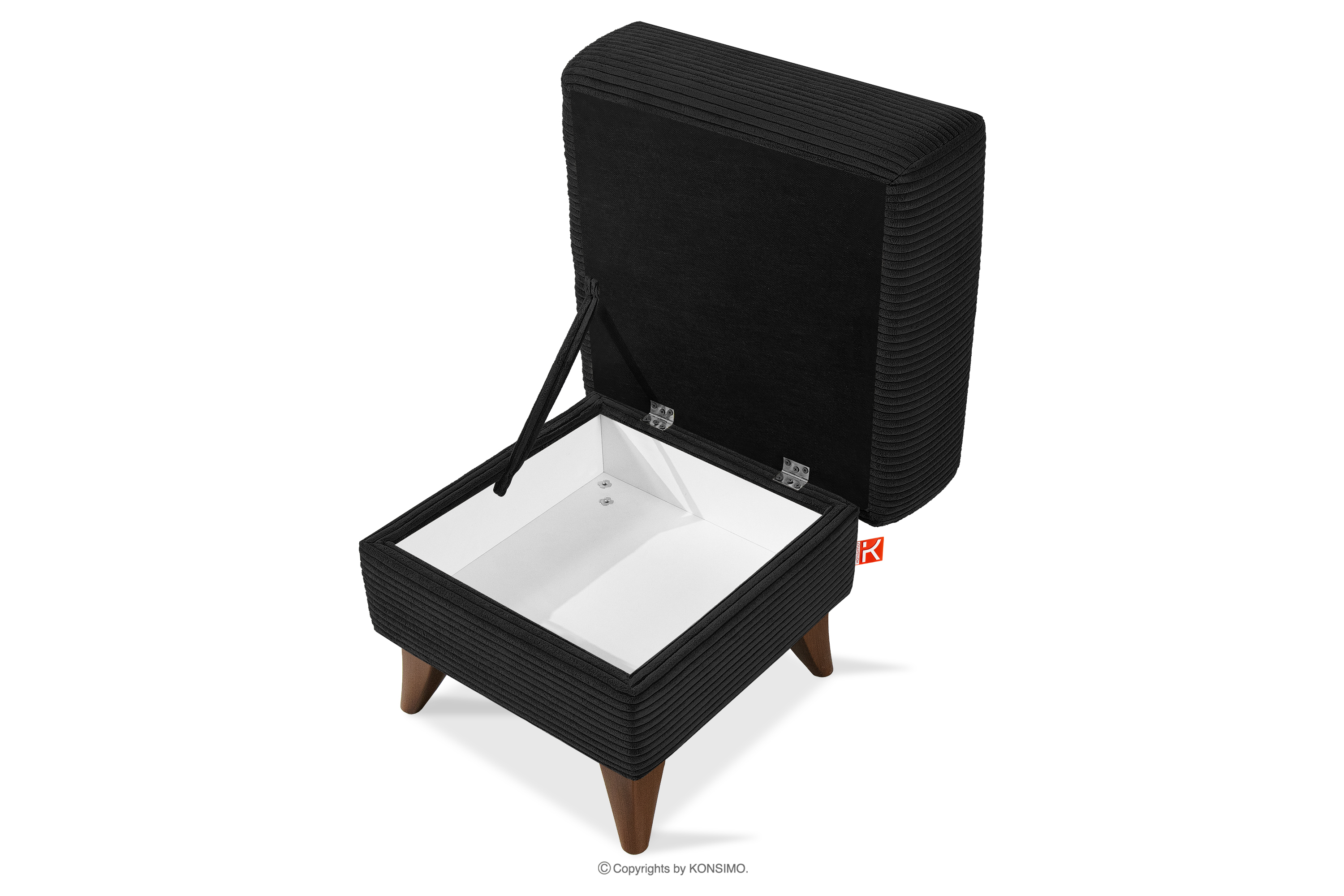GUSTAVO II Fußhocker für das Wohnzimmer mit Stauraum aus Kordstoff schwarz