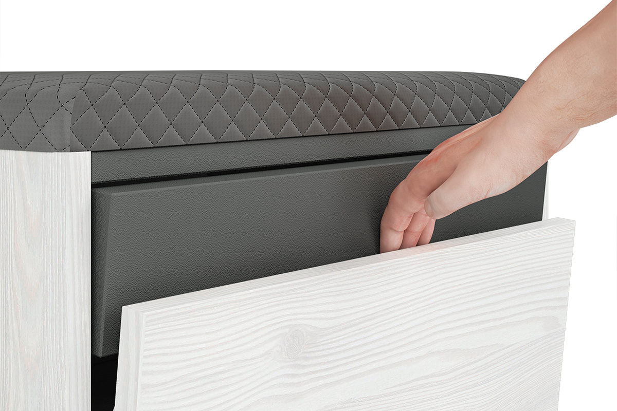 CALLA Mehr aus der Kollektion Schuhschrank 50 cm mit gepolstertem Sitz für den Flur weiß / grau- Farbe weiß/grau