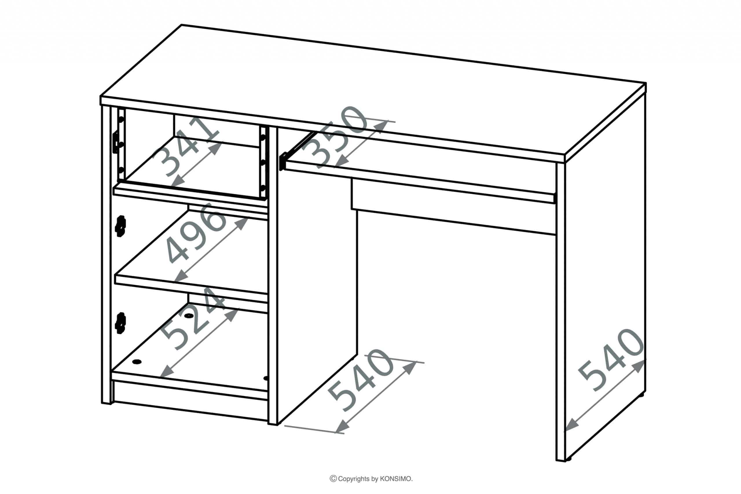 PONGO Weißer / Grauer / Buche Schreibtisch mit Schublade und Regalen für das Kinderzimmer