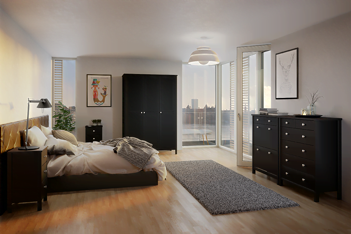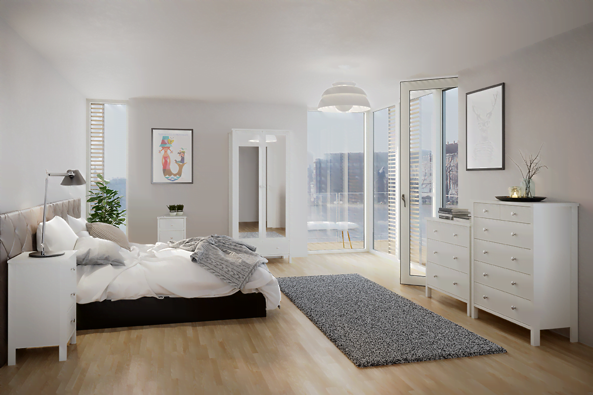 Klassische, hohe Kommode mit quadratischen Beinen und wunderbarem, minimalistischem Design. Diese geräumige Kommode hat insgesamt 6 Schubladen, 4 große unten und 2 kleinere oben, also genug Platz, um einen Teil Ihres Lebens unterzubringen. Die Schubladen laufen auf hochwertigen Führungen, die zuverlässiges Funktionieren garantieren, und sind mit stilvollen Metallgriffen veredelt. Die traditionelle Kommode TROMSÖ ist in 3 klassischen Farben erhältlich, Weiß, Schwarz und Grau.