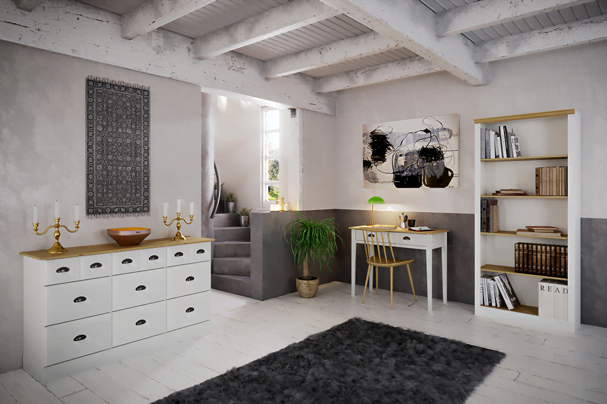 NOLA Mehr aus der Kollektion Schmale Kommode im provenzalischen Stil in Weiß- Farbe weiß/kiefer