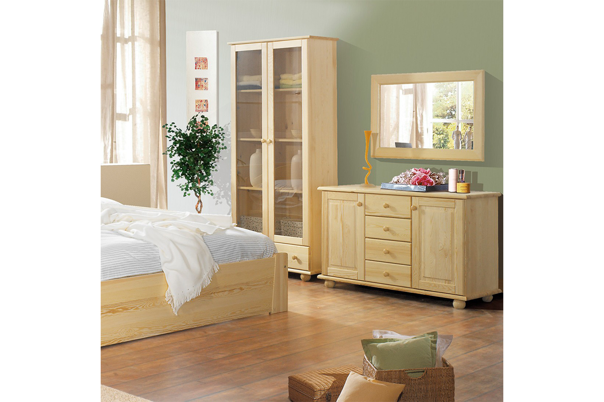 TARDA Mehr aus der Kollektion Holzvitrine schmal mit Schublade- Farbe natürliches pinienholz